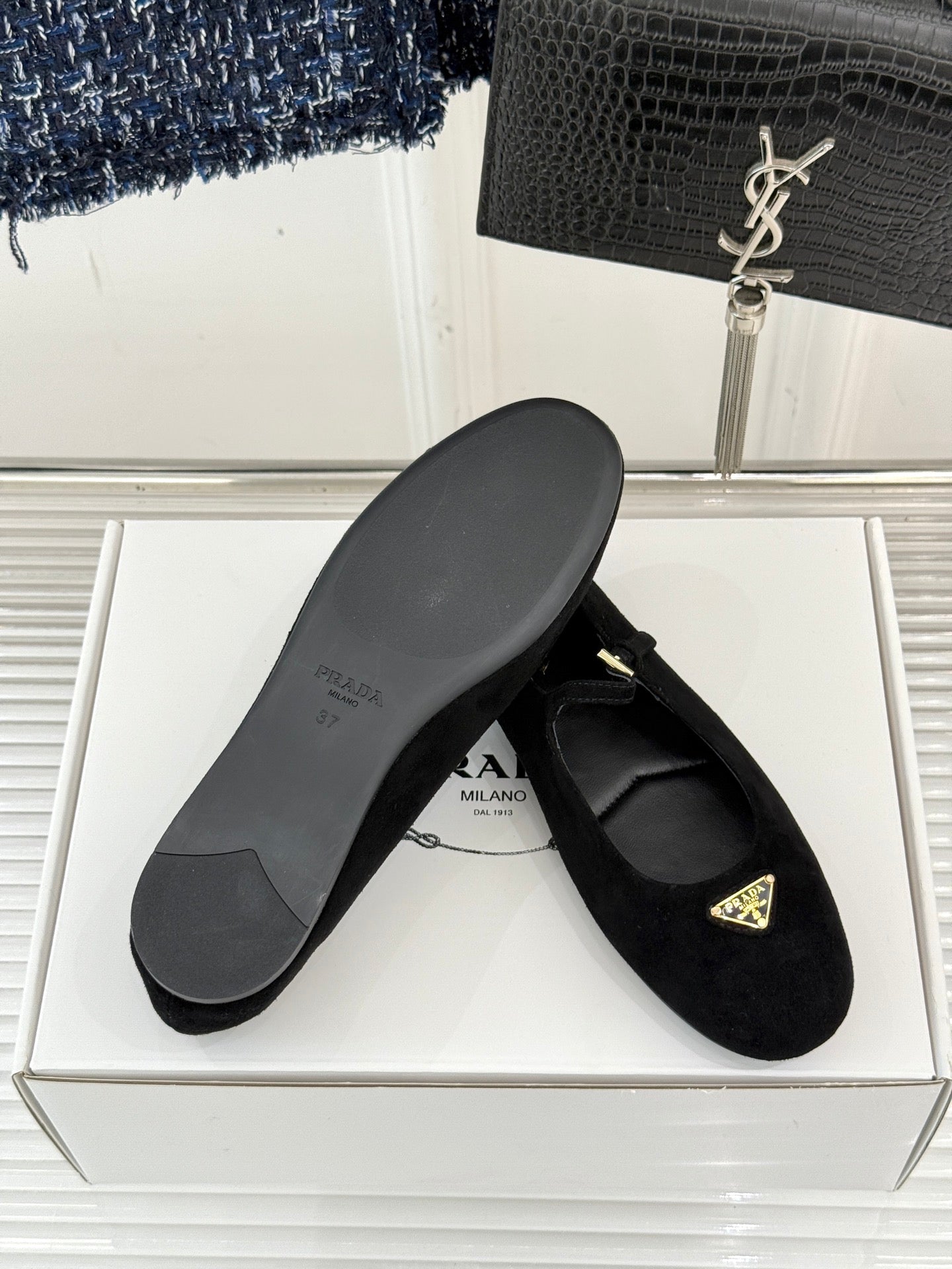 PRADA 25S SOFT PADDED BALLERINAS IN BLACK SUEDE