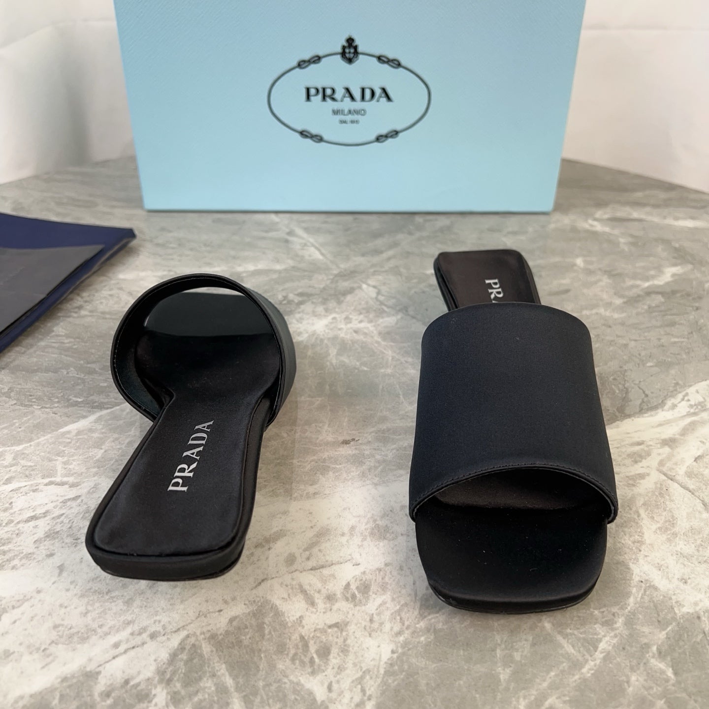 PRADA 25S TRIANGLE HEEL SANDALS 35MM IN BLACK SATIN