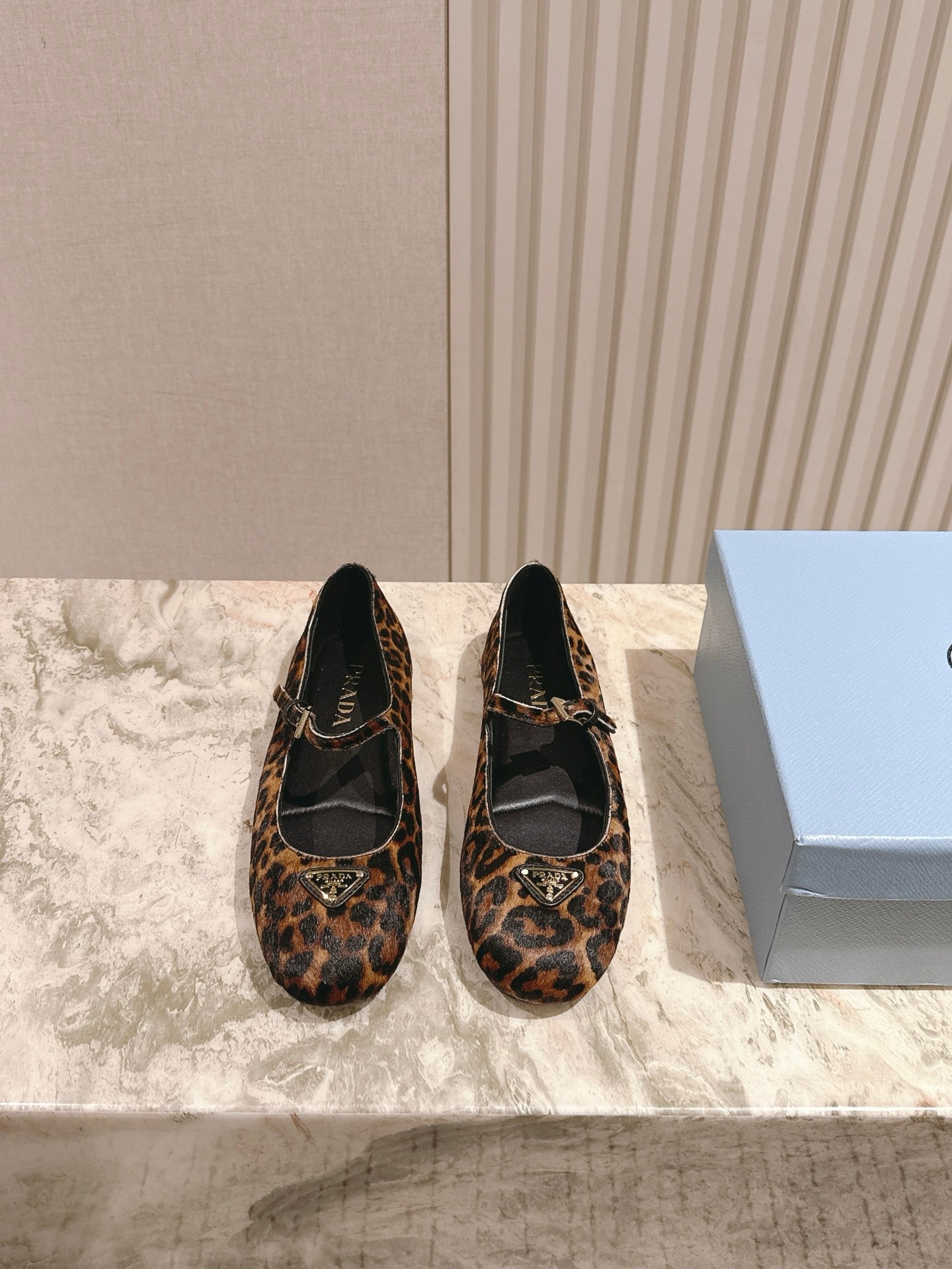 PRADA BALLERINA FLATS IN LEOPARD PRINT LAMBSKIN