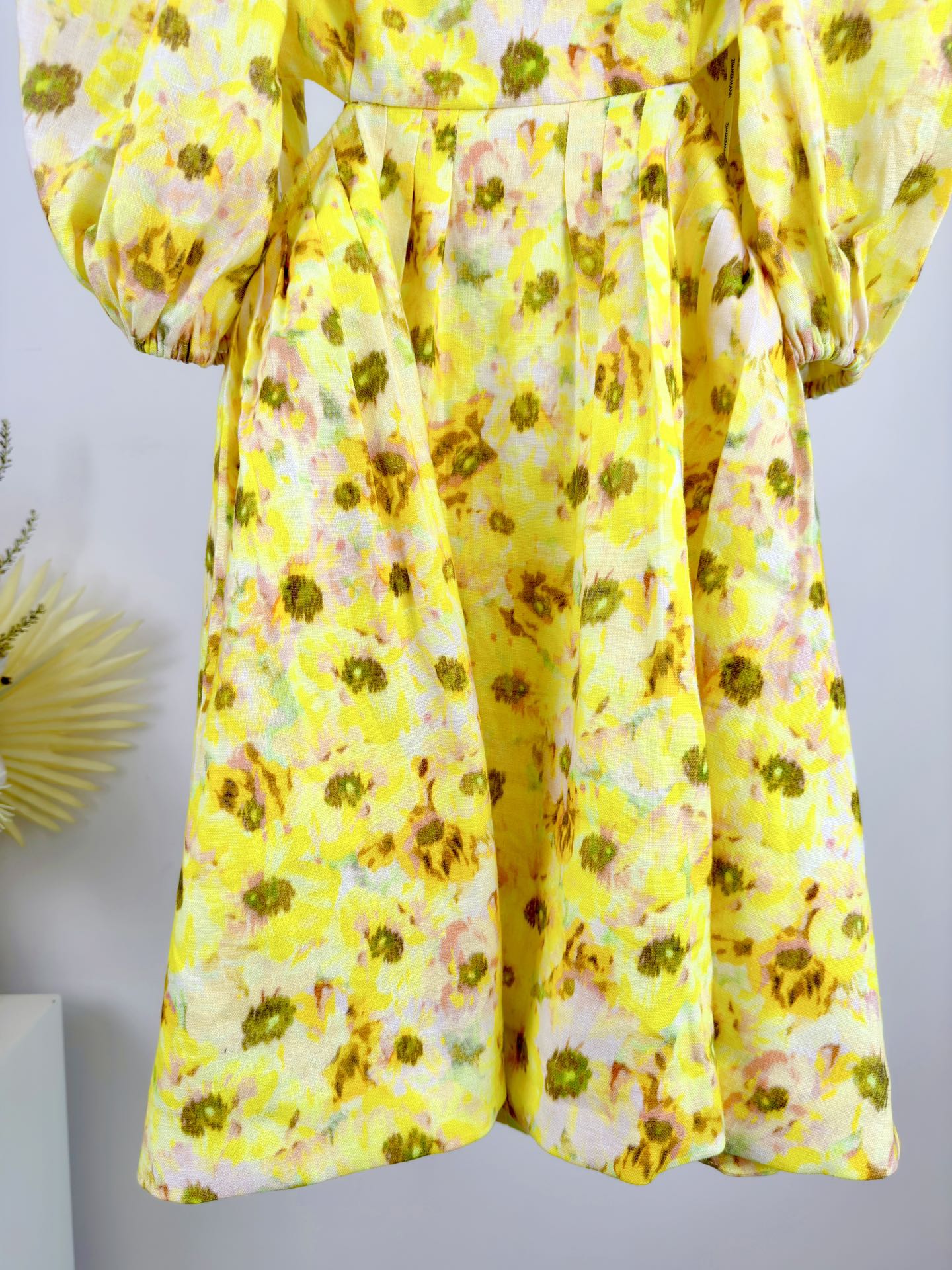 PUFF SLEEVE MINI DRESS 25S IN LINEN 266364