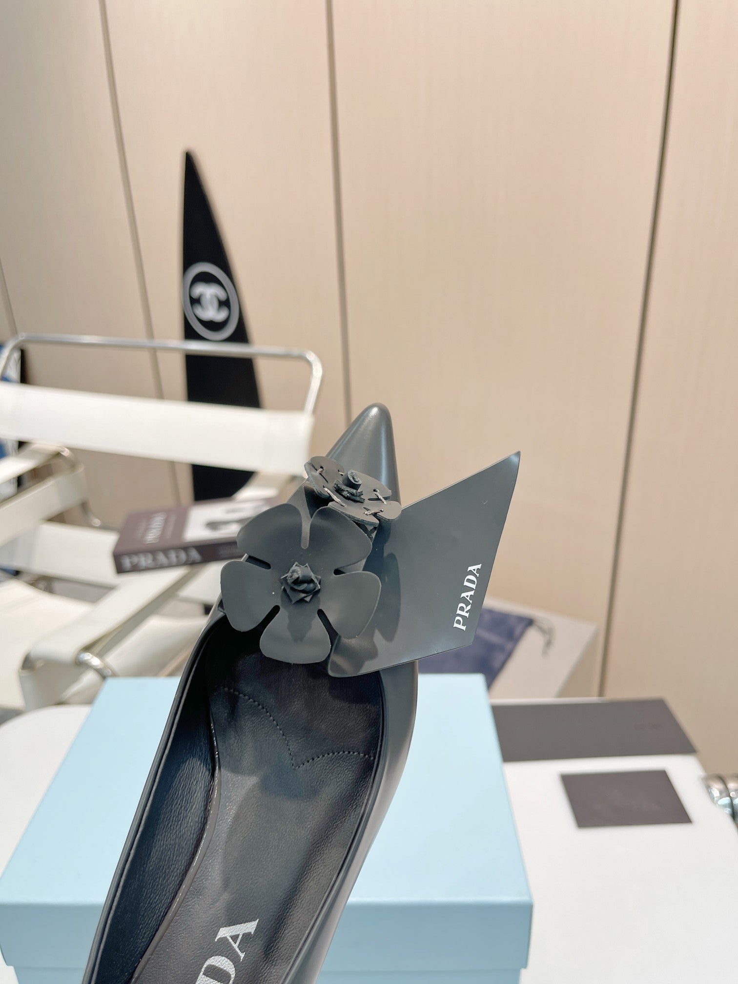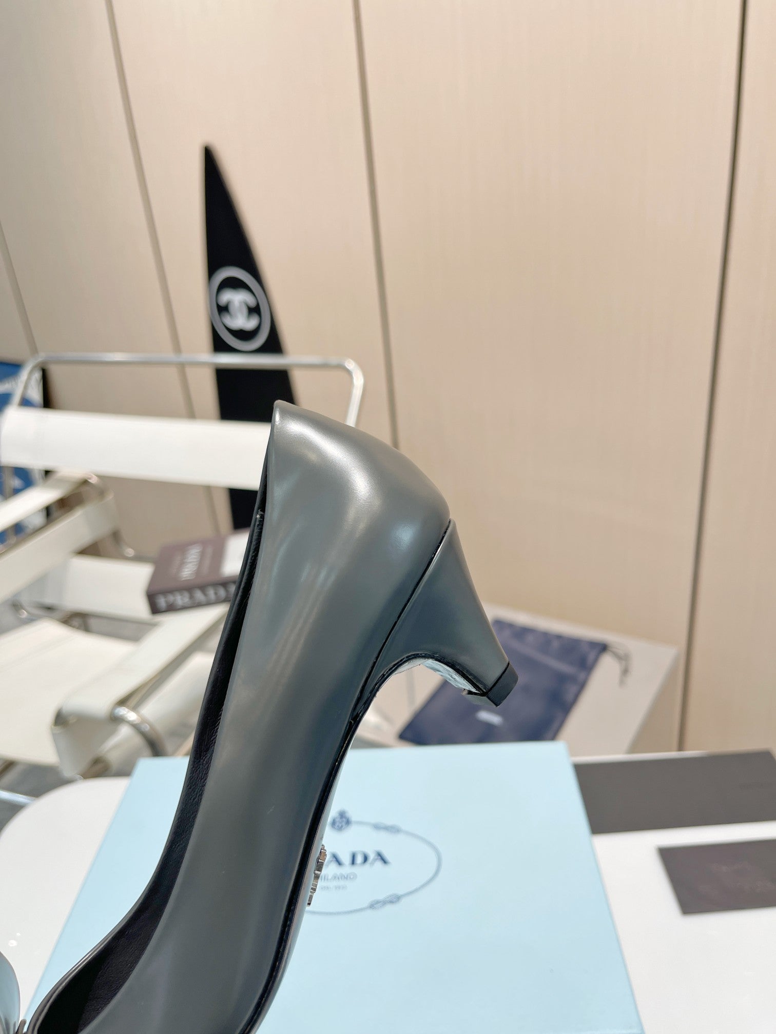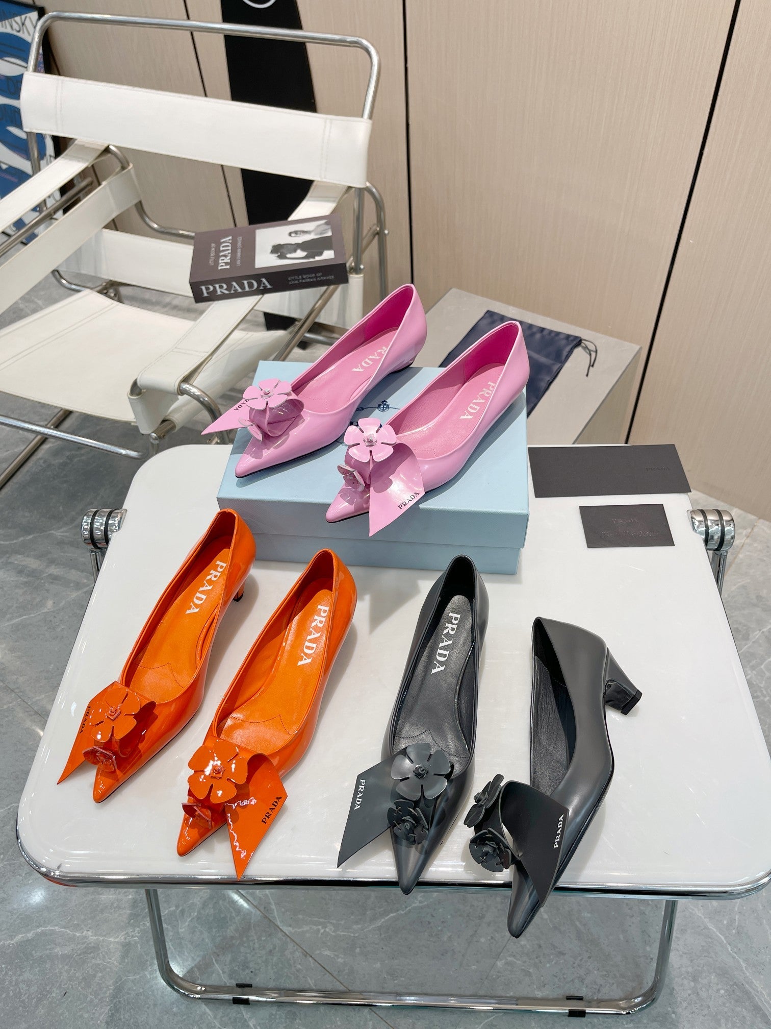 PUMPS KITTEN HEEL IN GRAY SHINY CALFSKIN ATTACHED FLOWERS