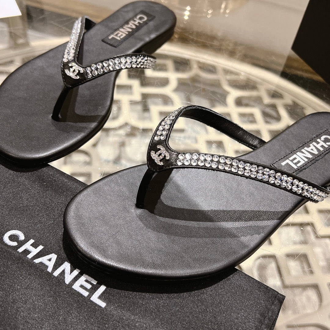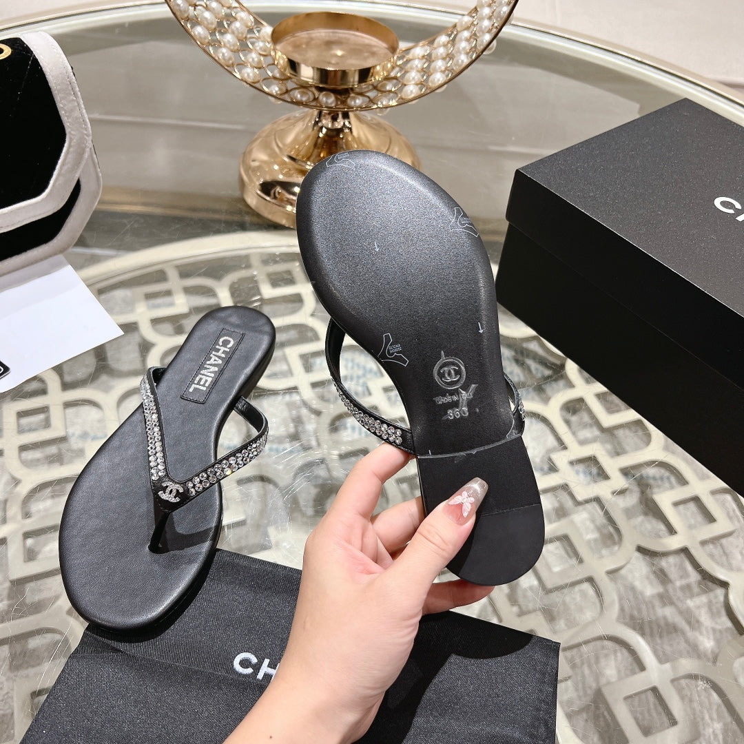 RHINESTONES THONG SANDAL IN BLACK LAMBSKIN
