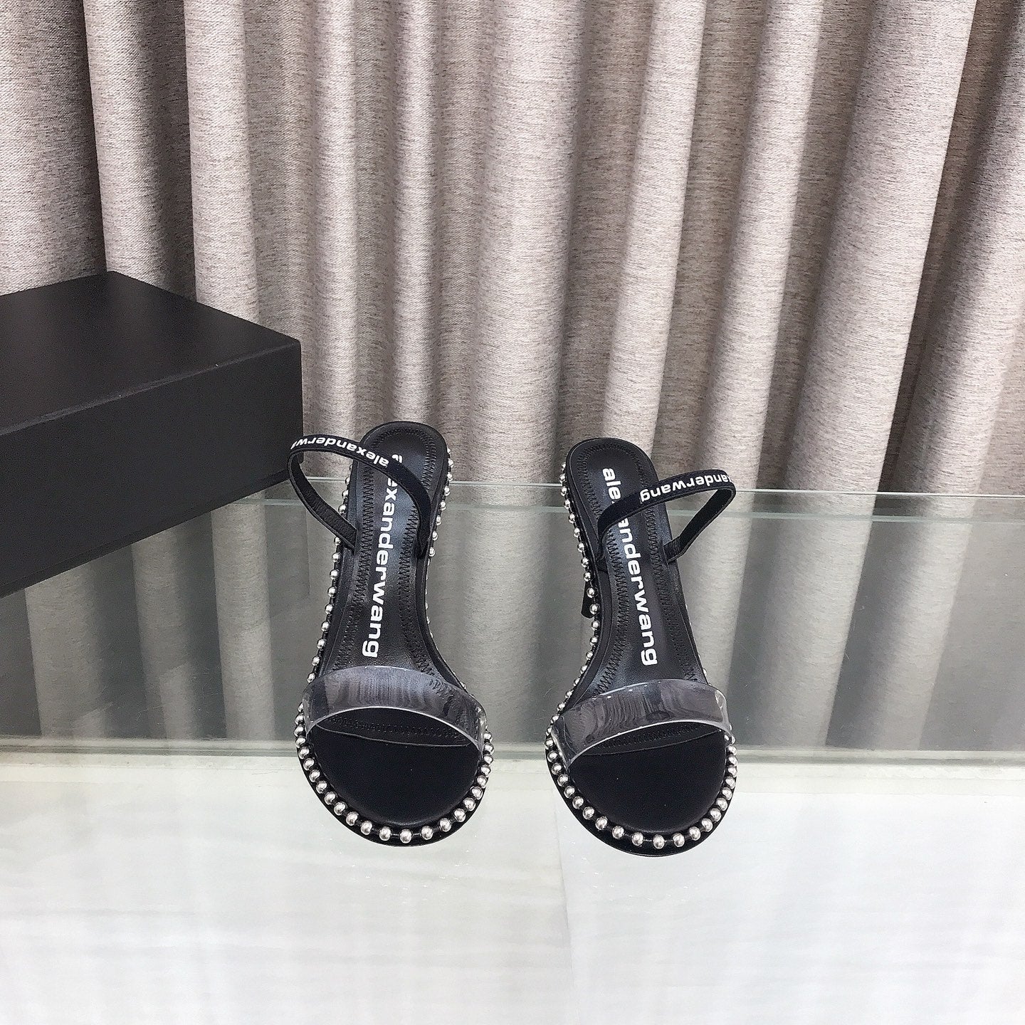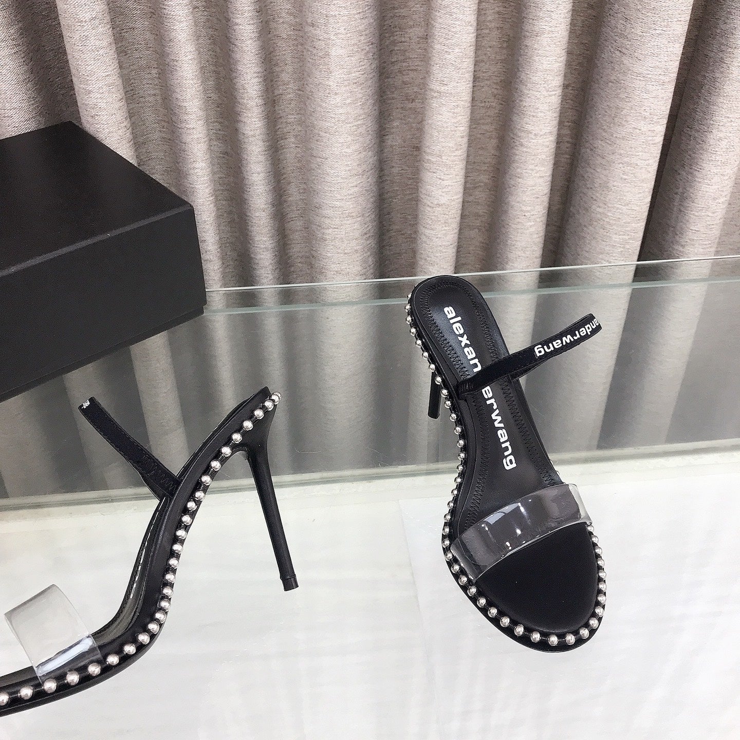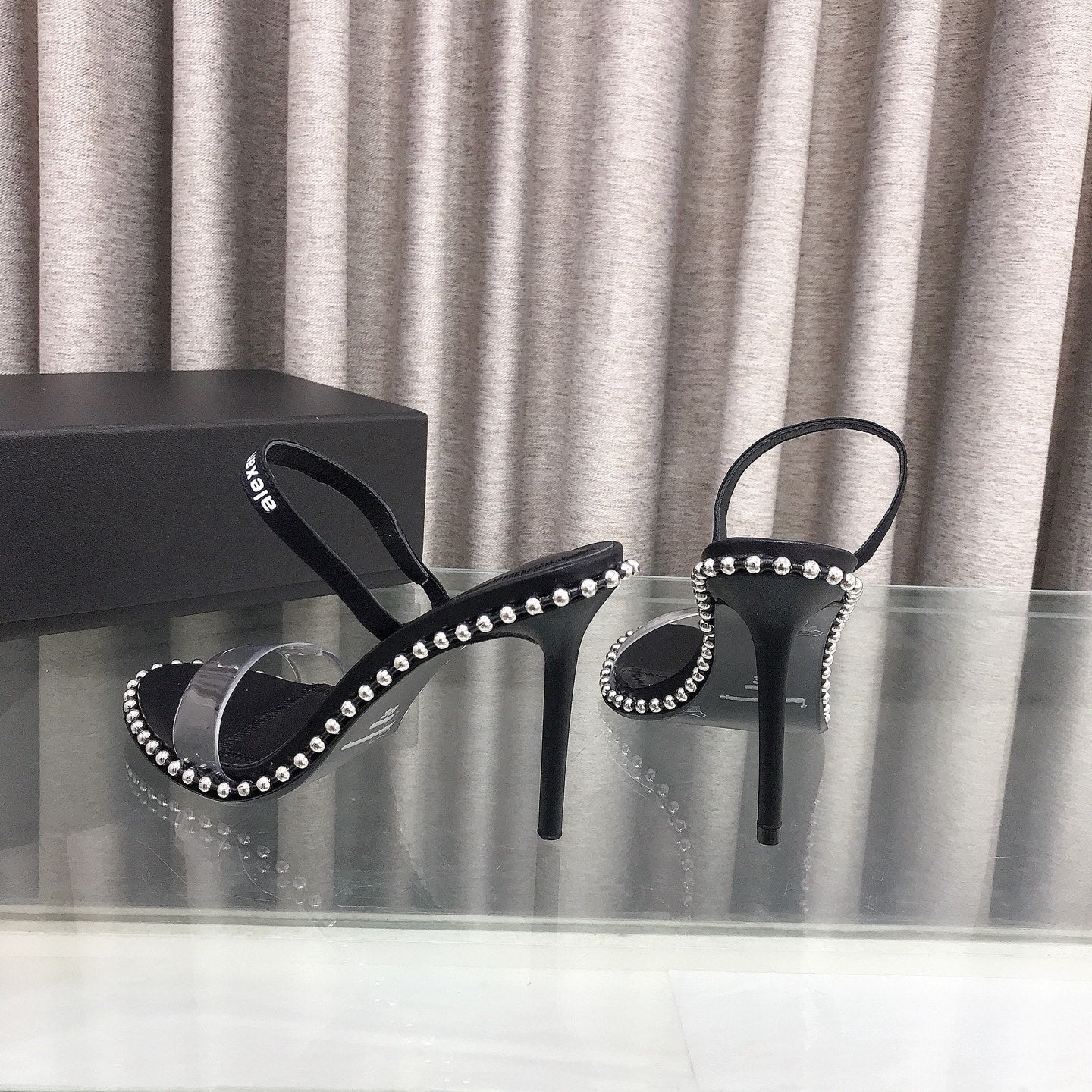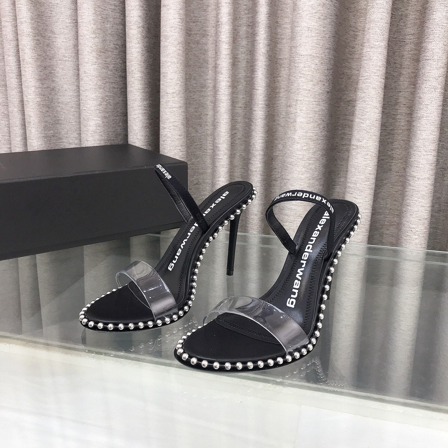 RHODES NOVA HIGH HEELS IN PVC STRAP AND BLACK CALFSKIN