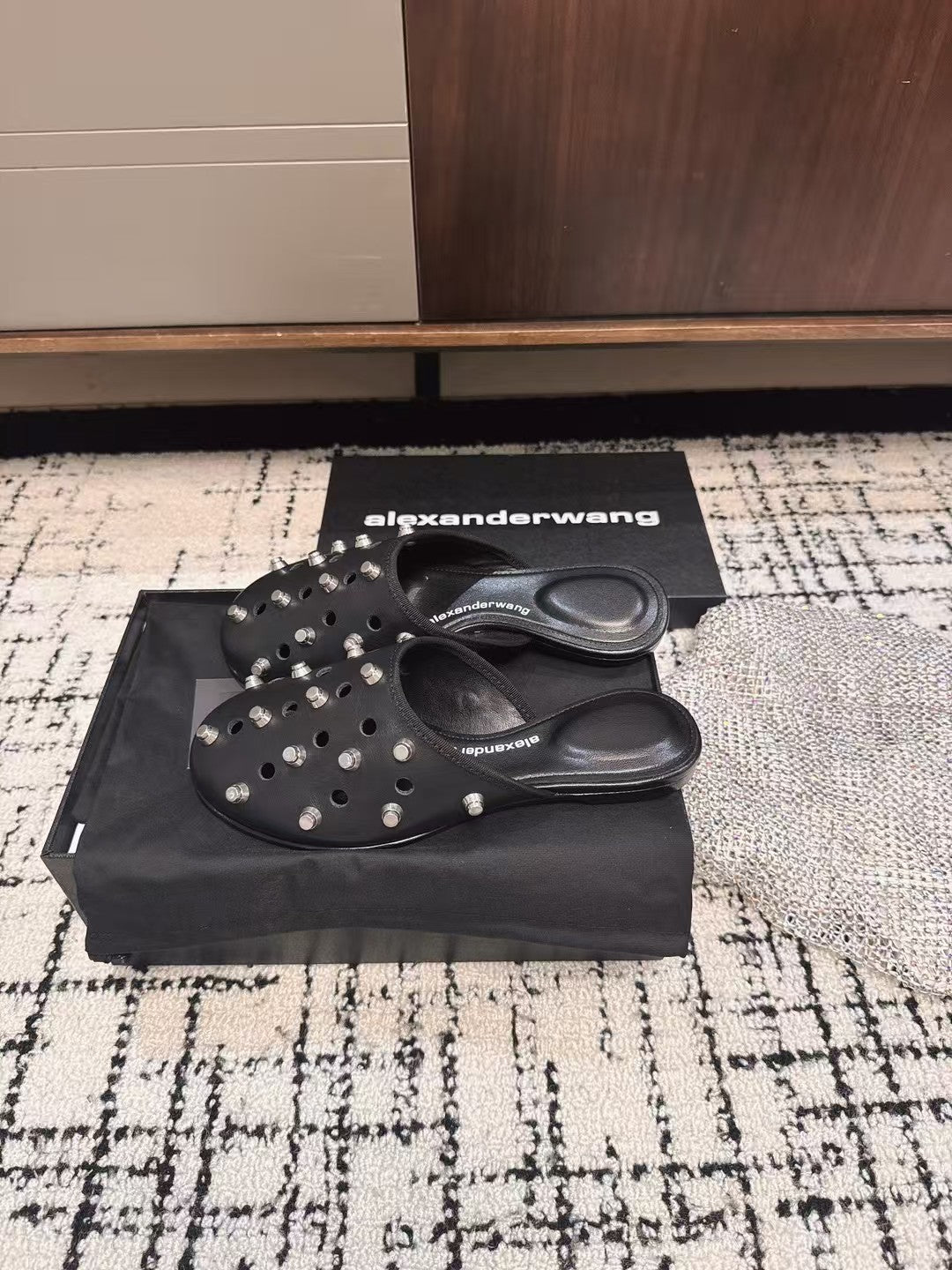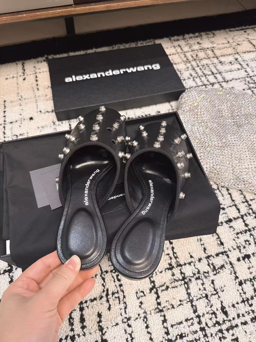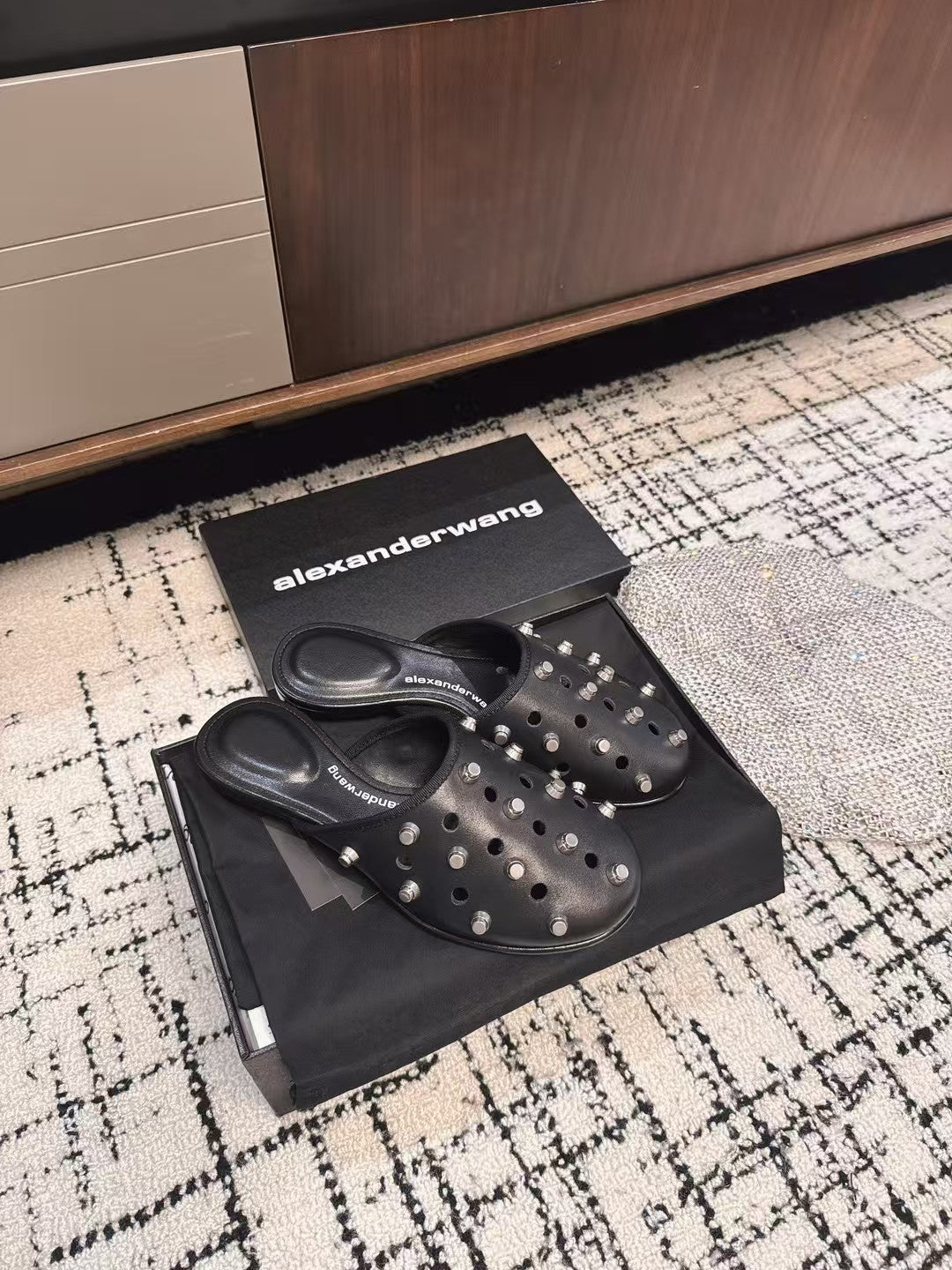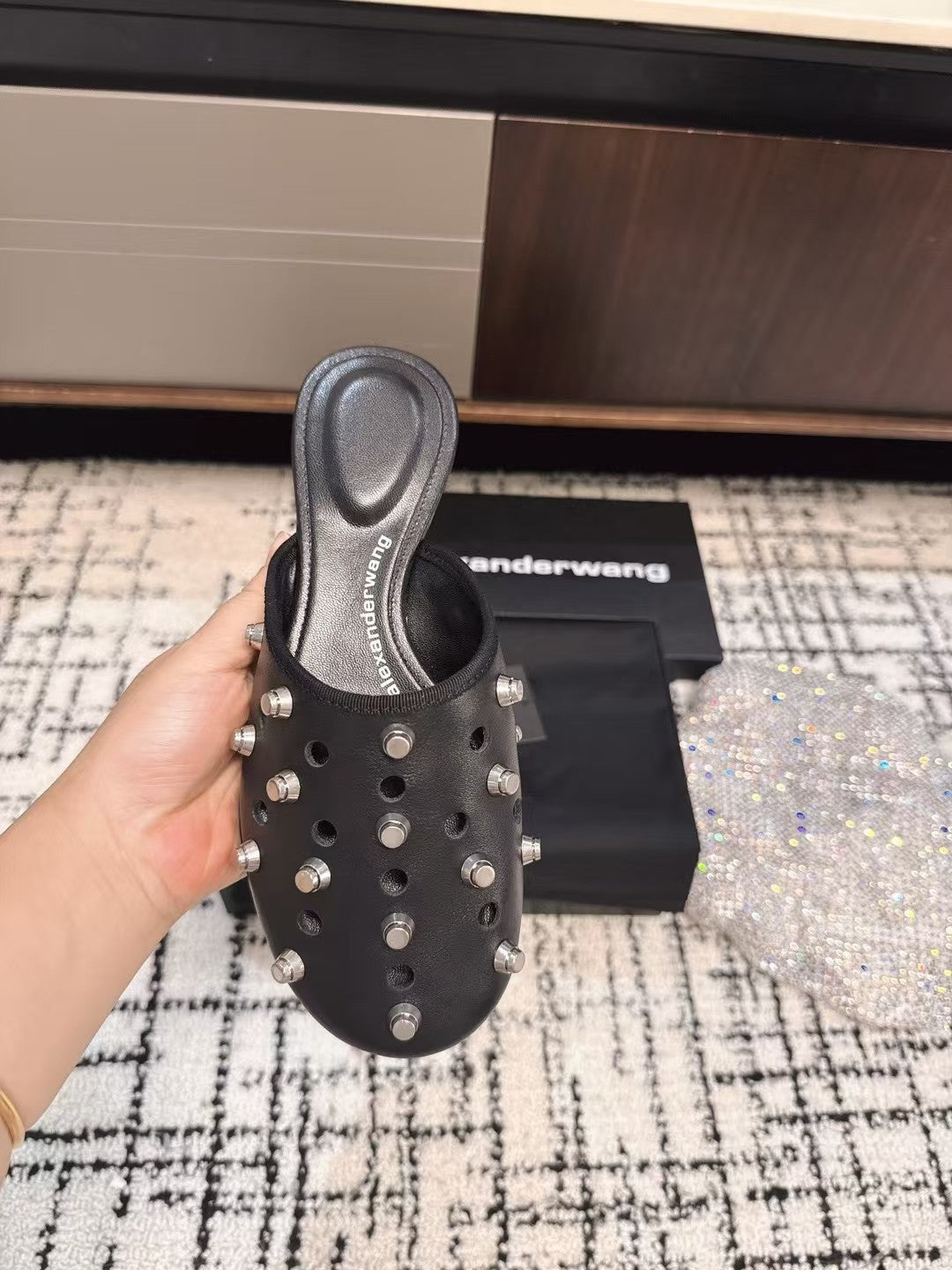 RHODES STUDDED FLAT MULE IN BLACK CALFSKIN