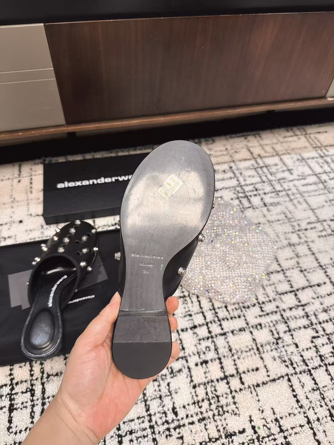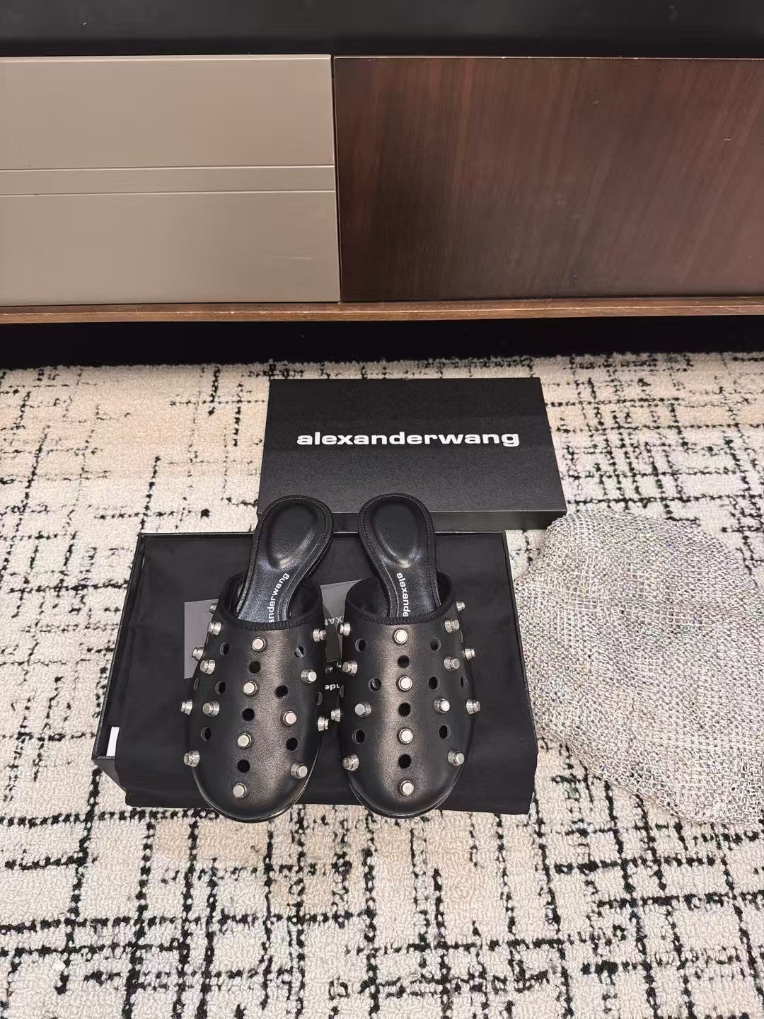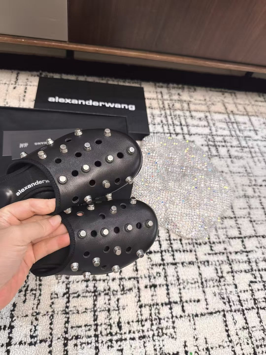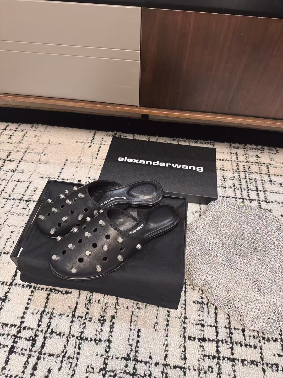 RHODES STUDDED FLAT MULE IN BLACK CALFSKIN