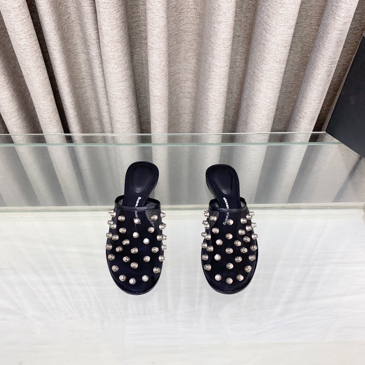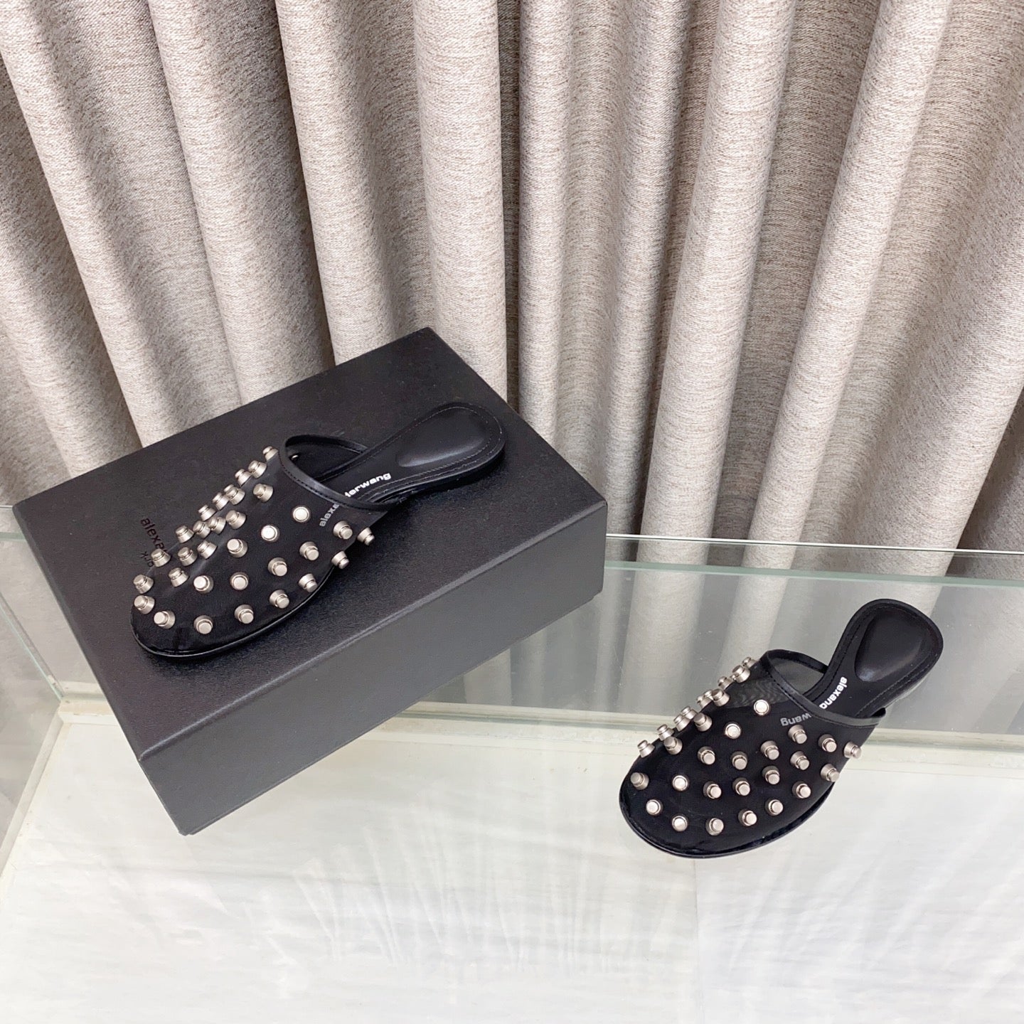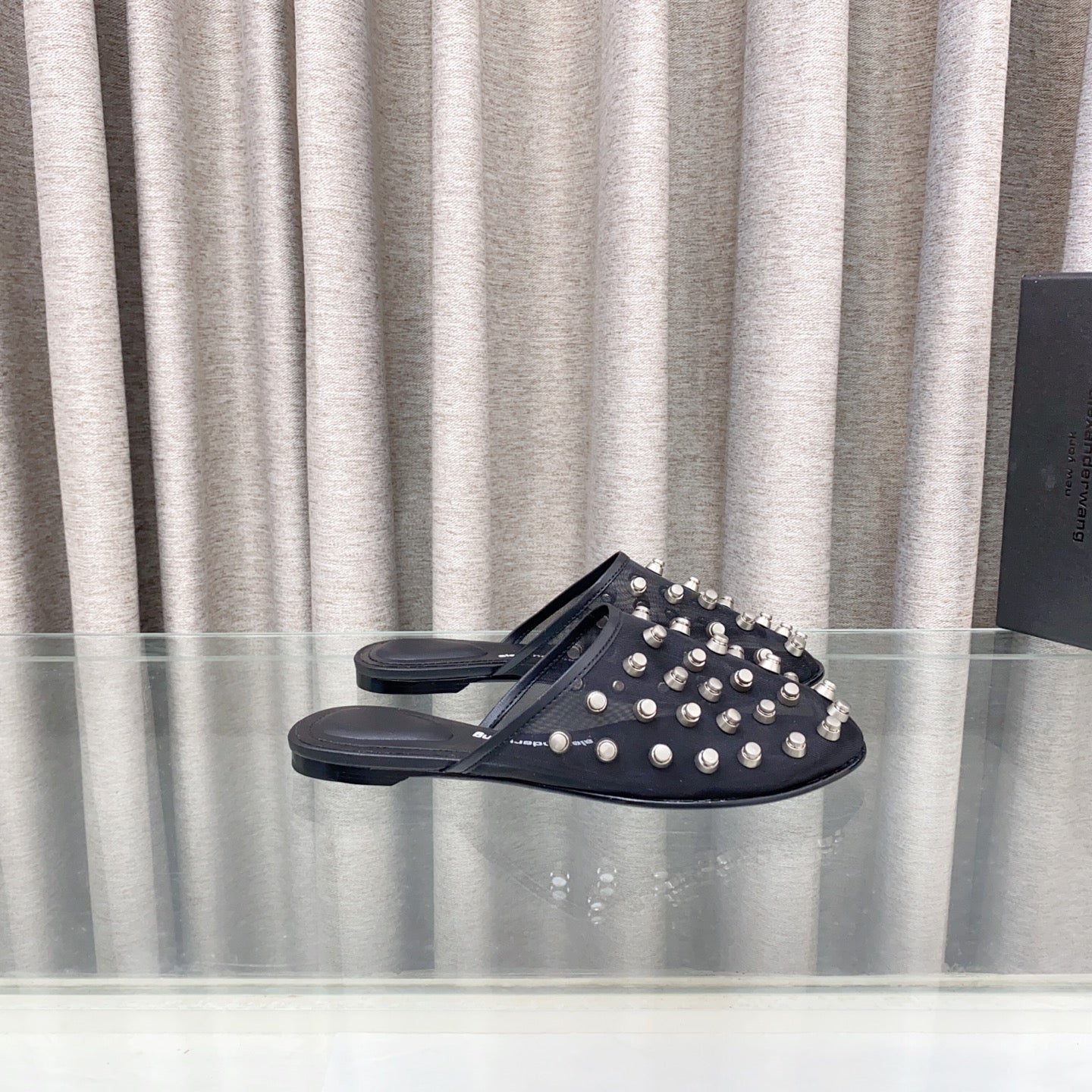 RHODES STUDDED FLAT MULE IN BLACK MESH UPPER