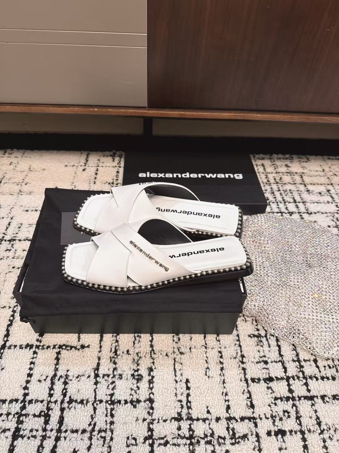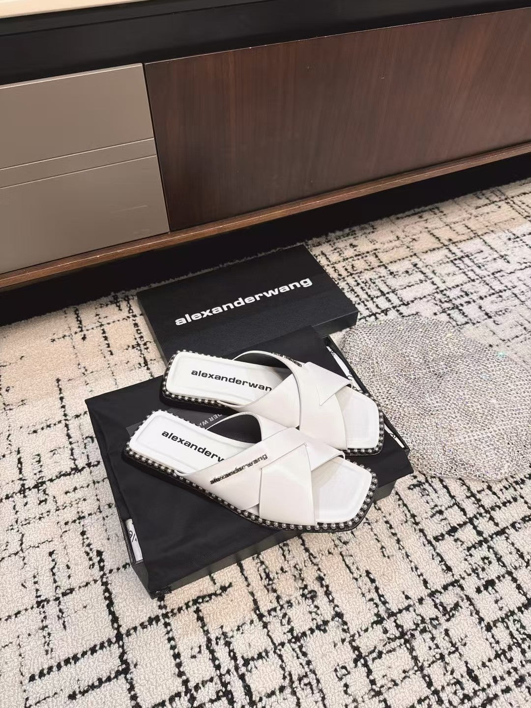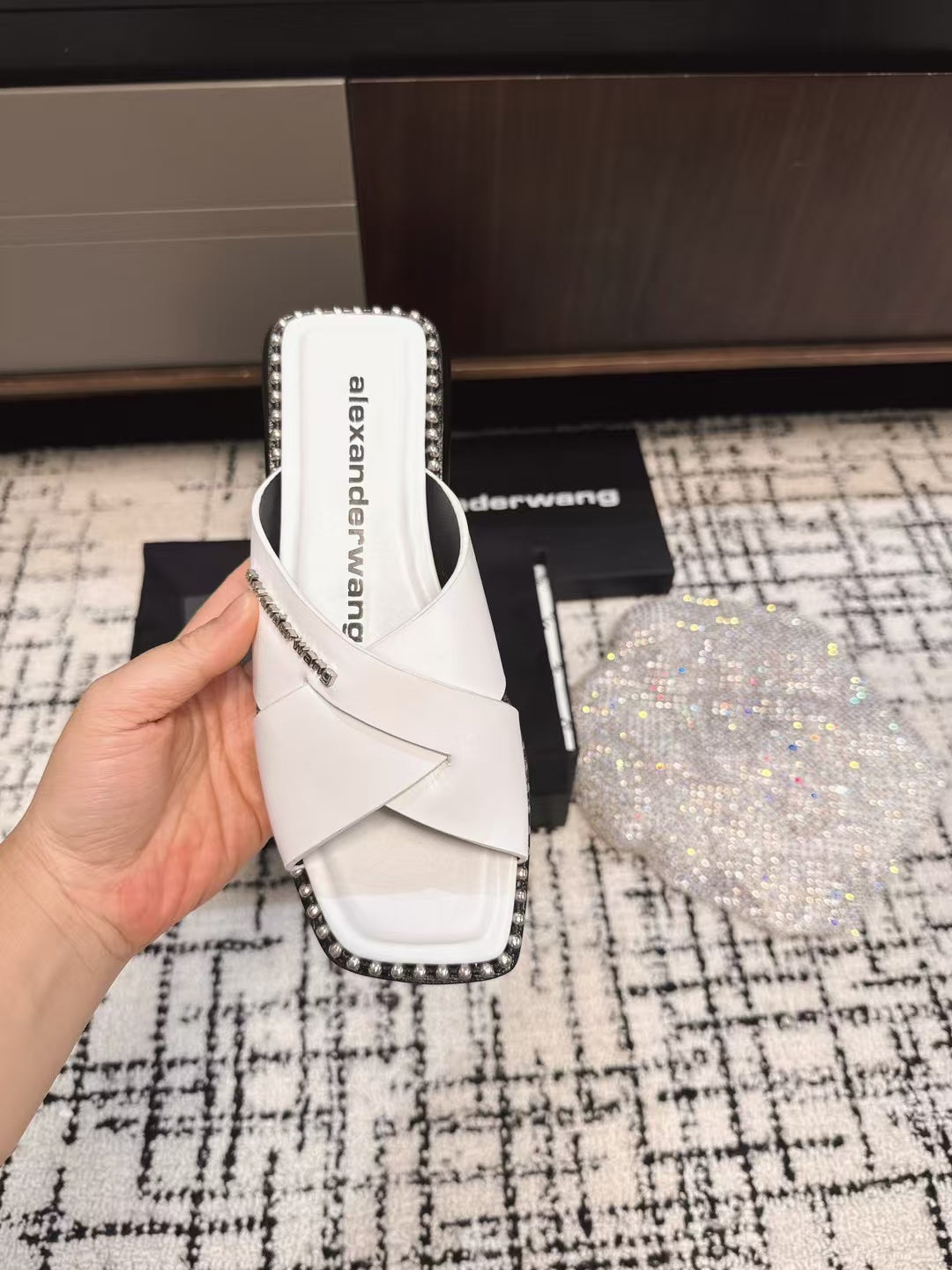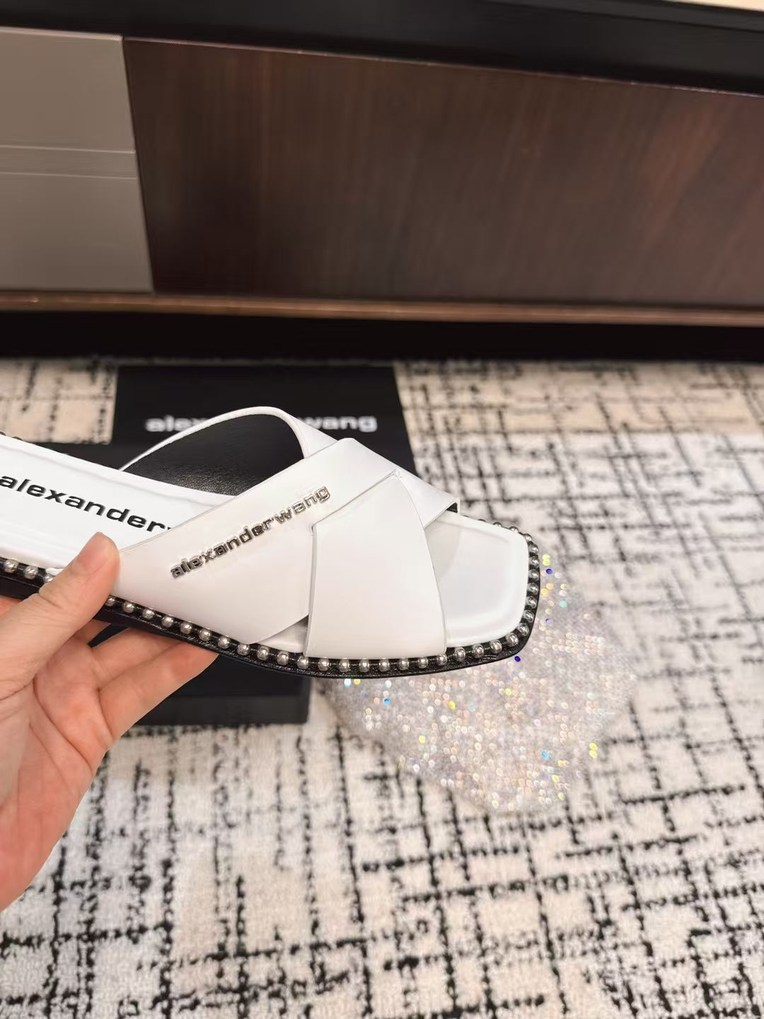 RHODES STUDDED SLIDE SANDAL IN WHITE CALFSKIN