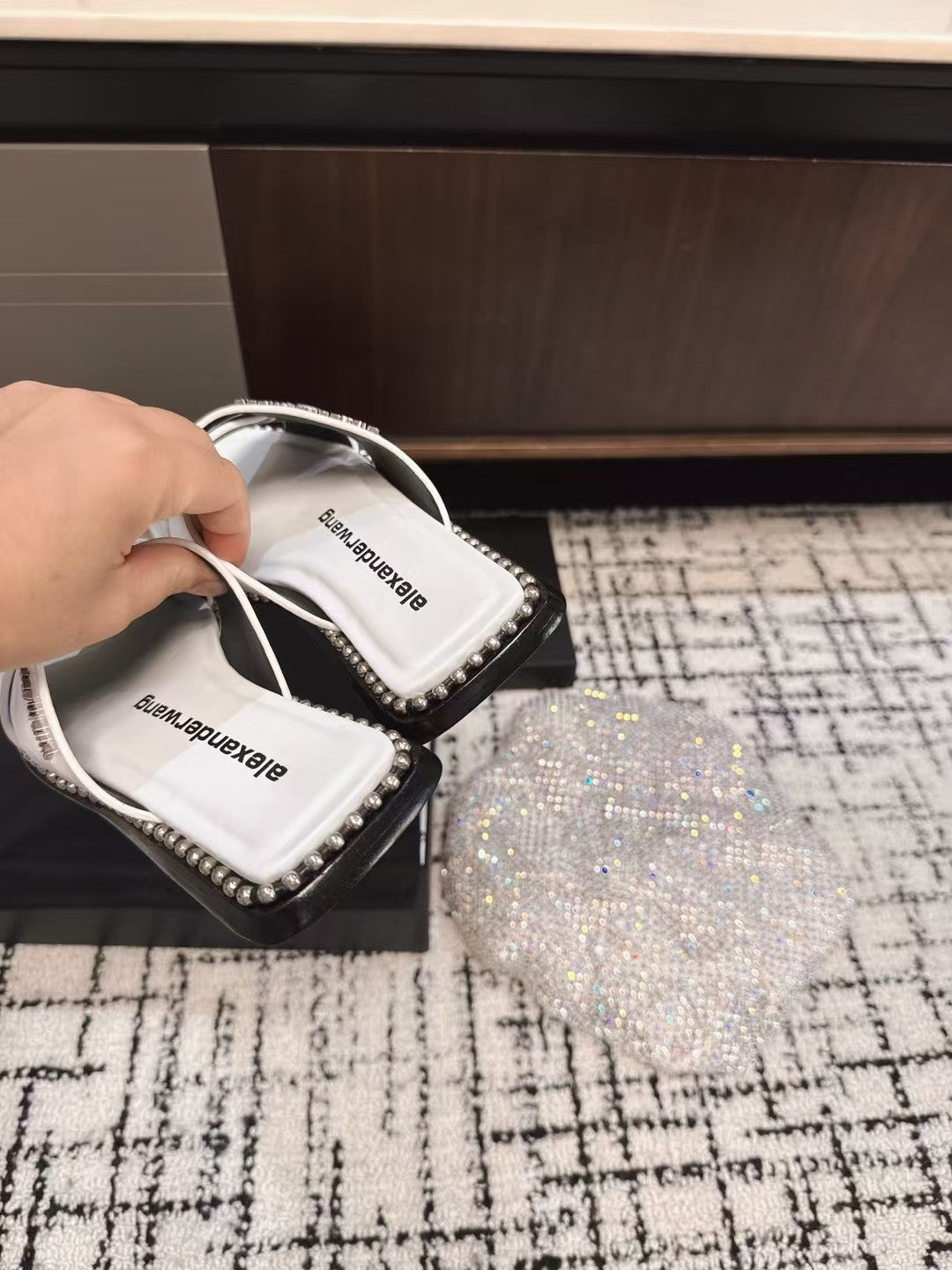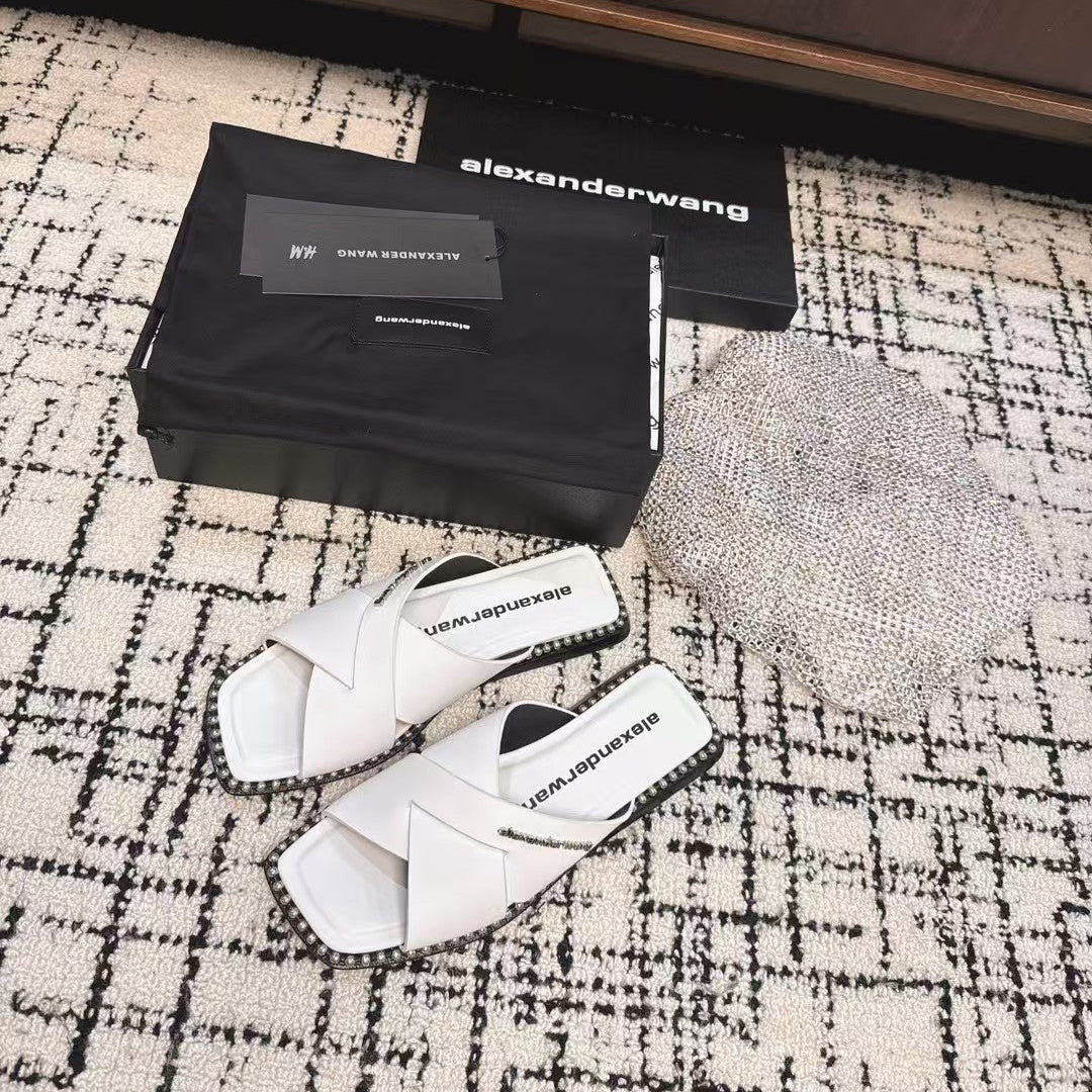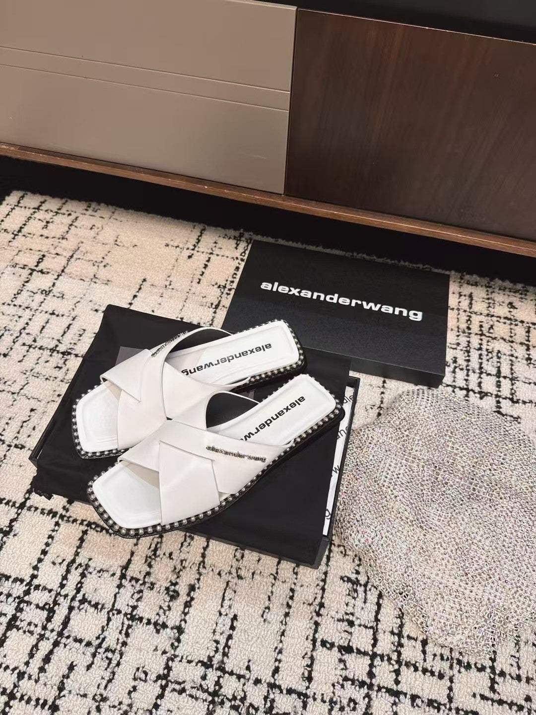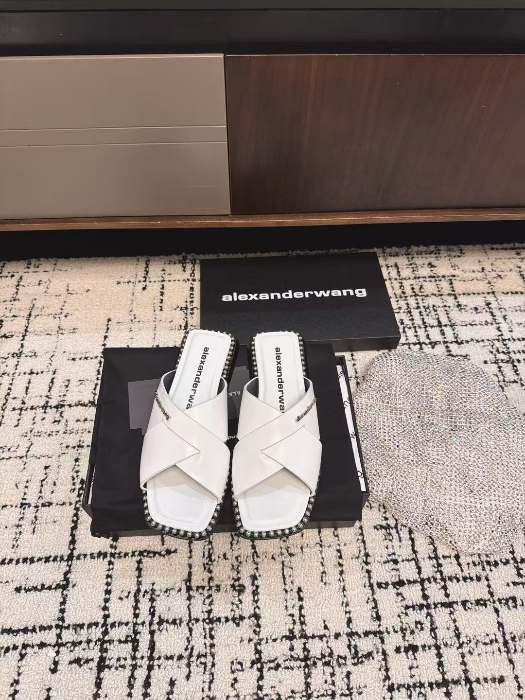 RHODES STUDDED SLIDE SANDAL IN WHITE CALFSKIN