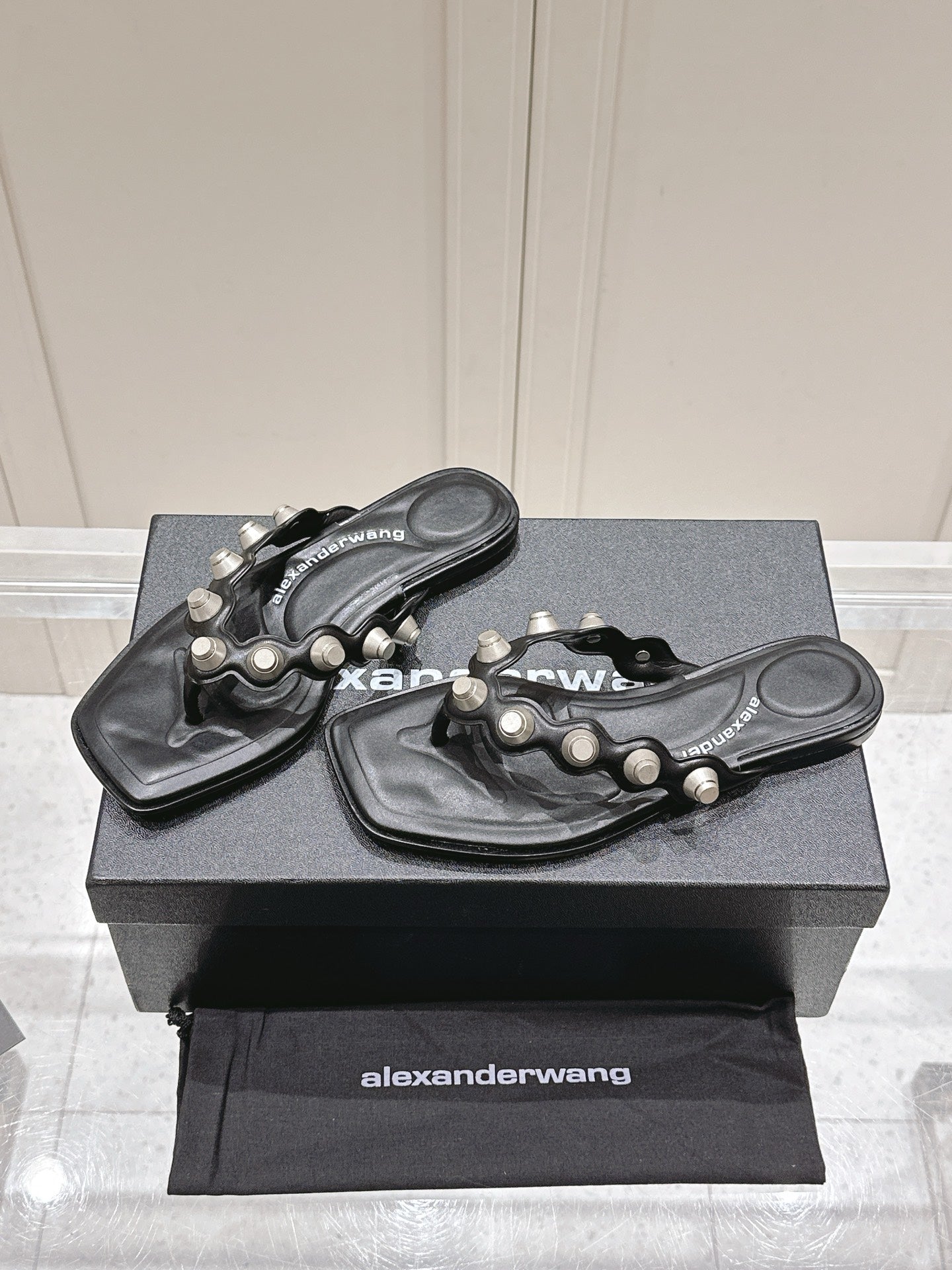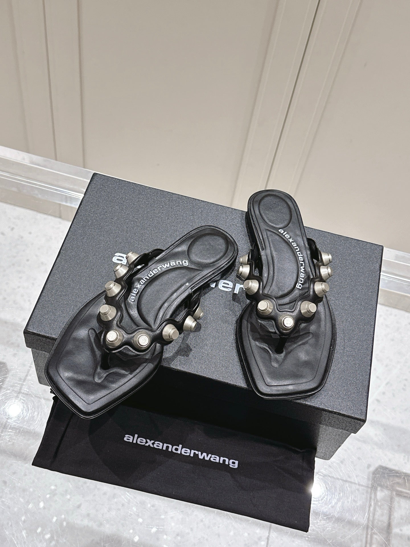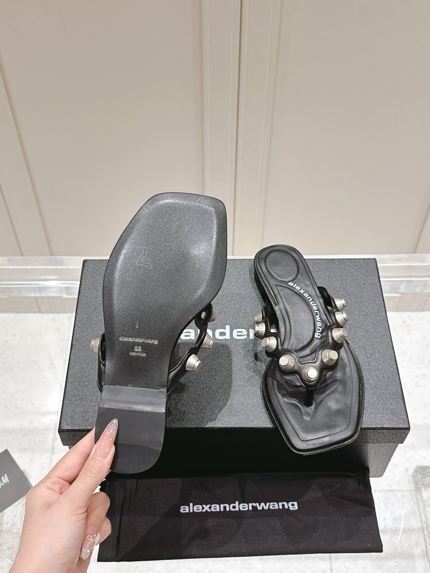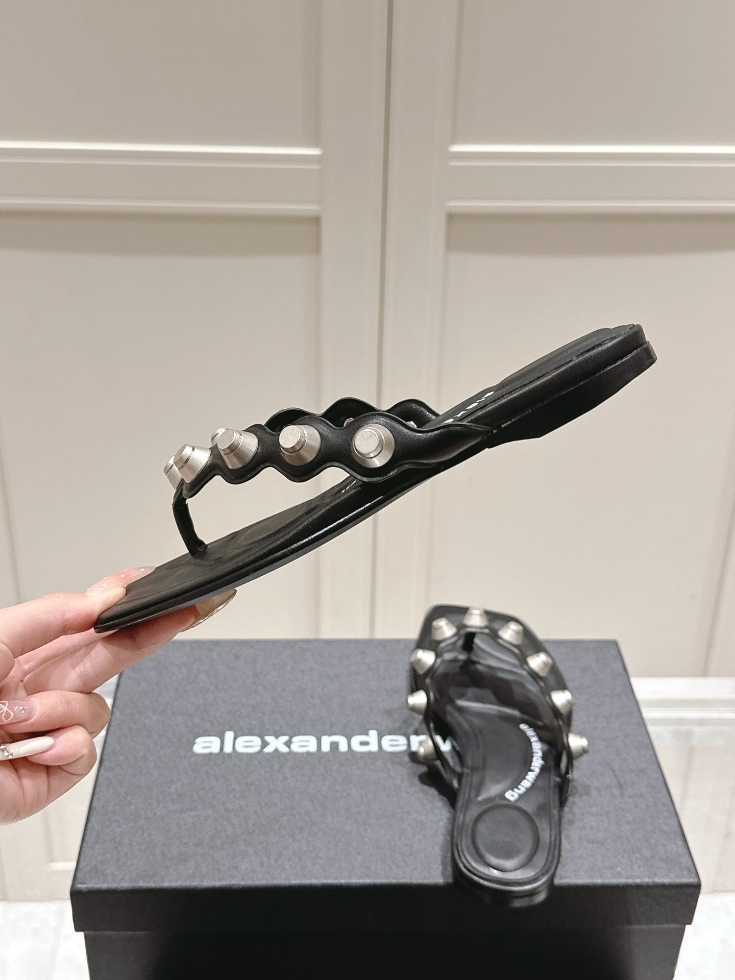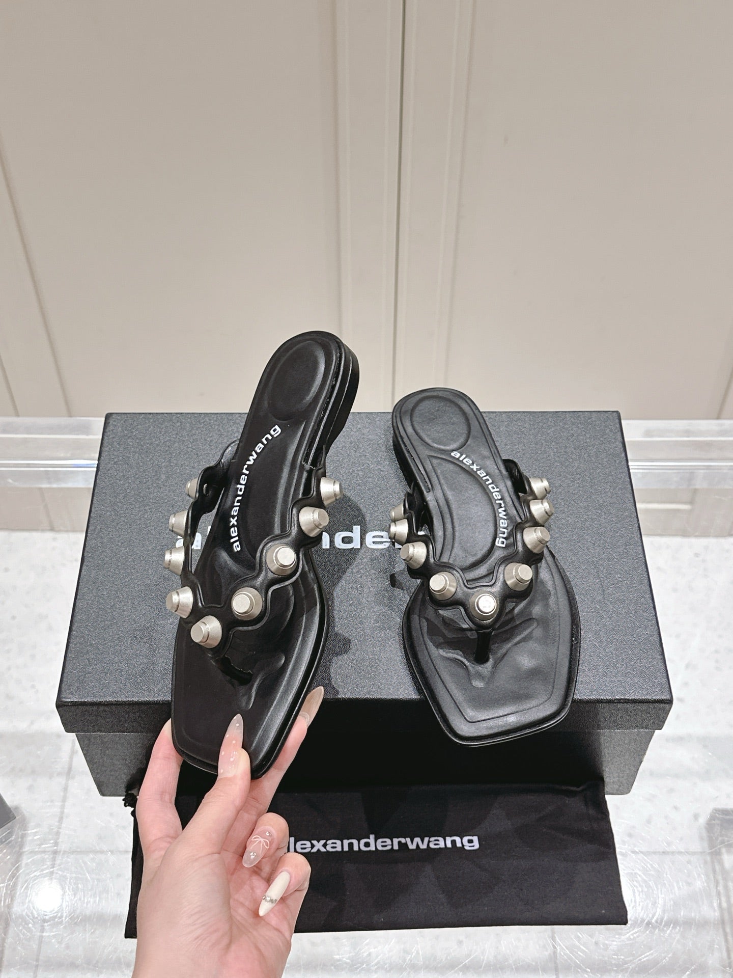 RHODES STUDDED THONG SANDALS IN BLACK CALFSKIN