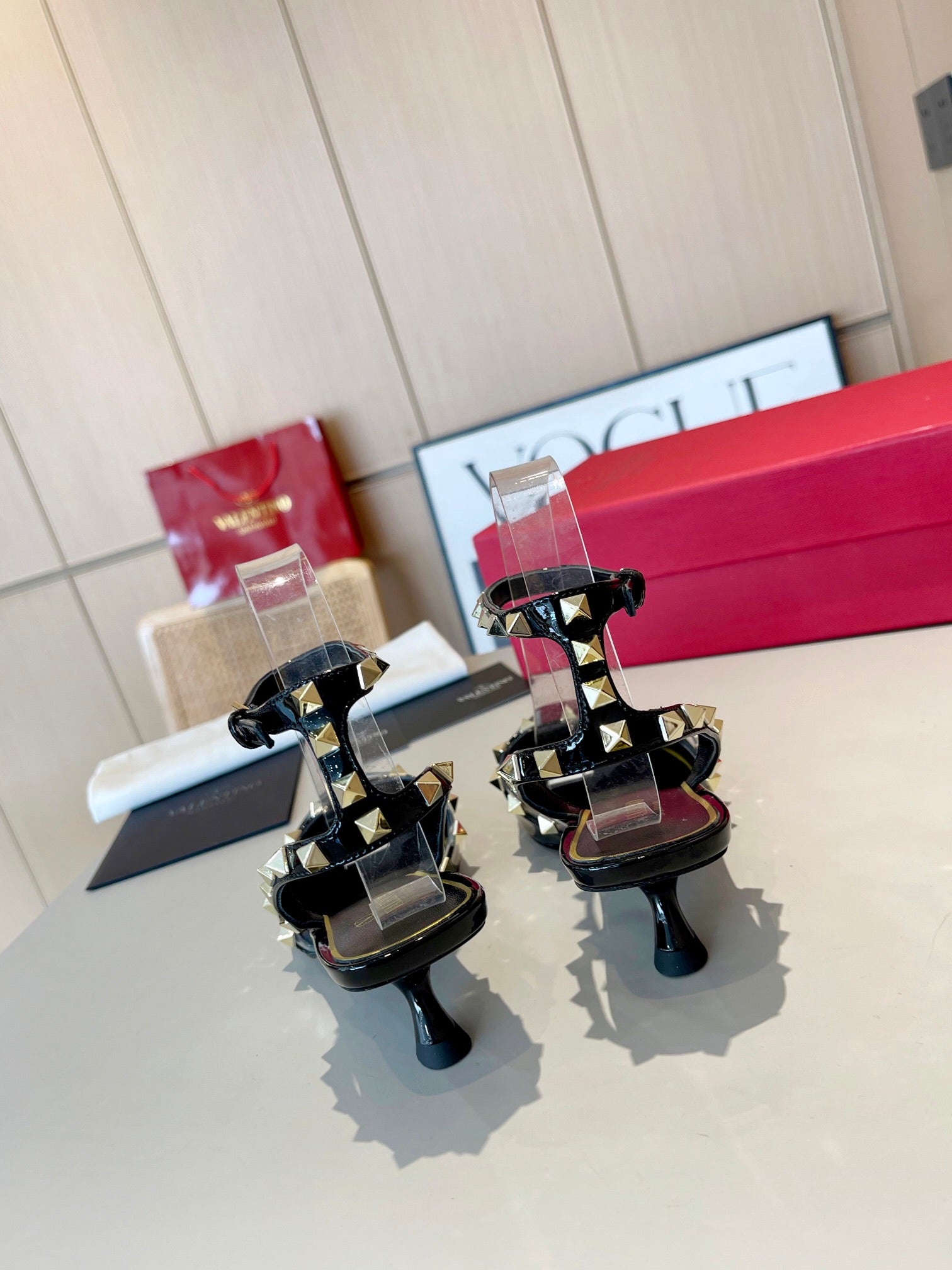 ROCKSTUD CAGED SLINGBACKS 5 CM IN BLACK CALFSKIN