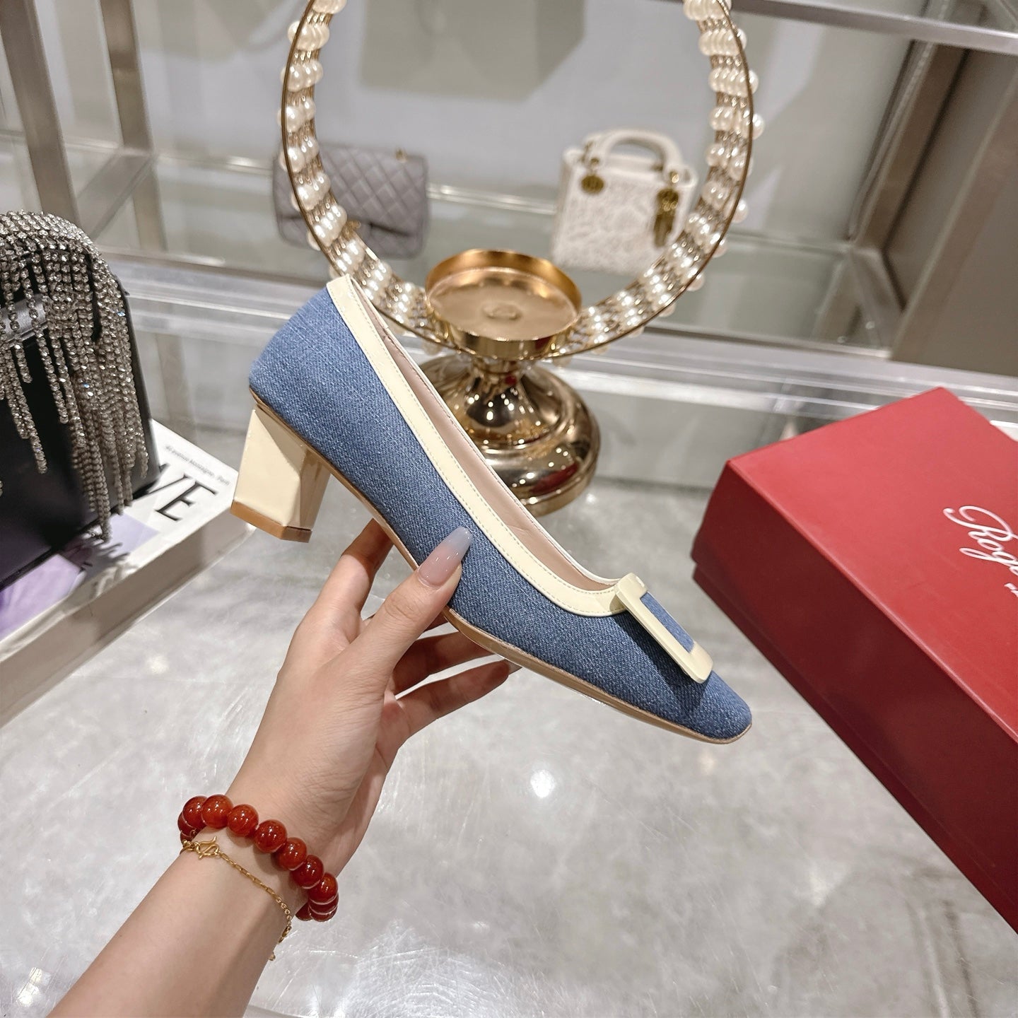 ROGER VIVIER 25S TROMPETTE BALLERINAS 45MM IN BLUE DENIM