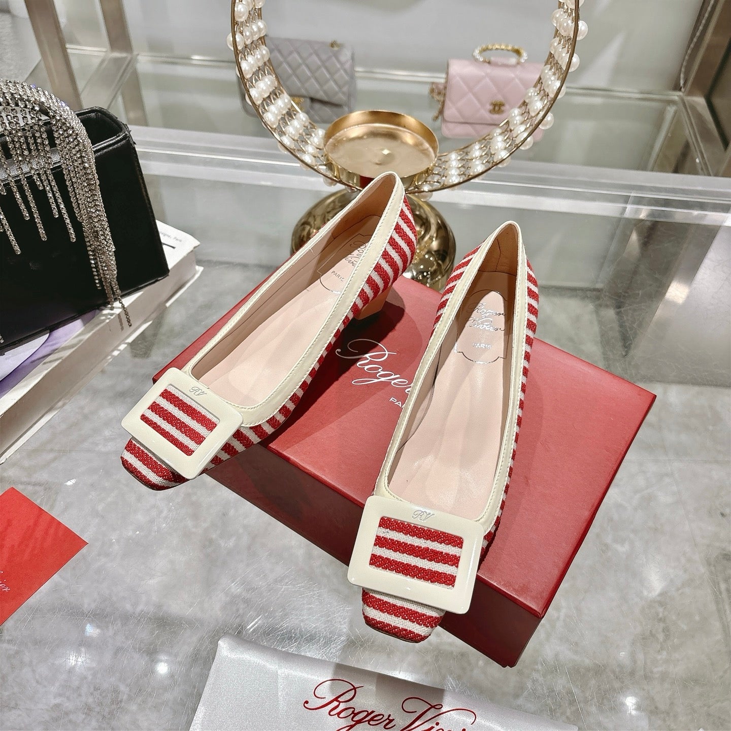 ROGER VIVIER 25S TROMPETTE BALLERINAS 45MM IN RED PLAID PATTERN CANVAS