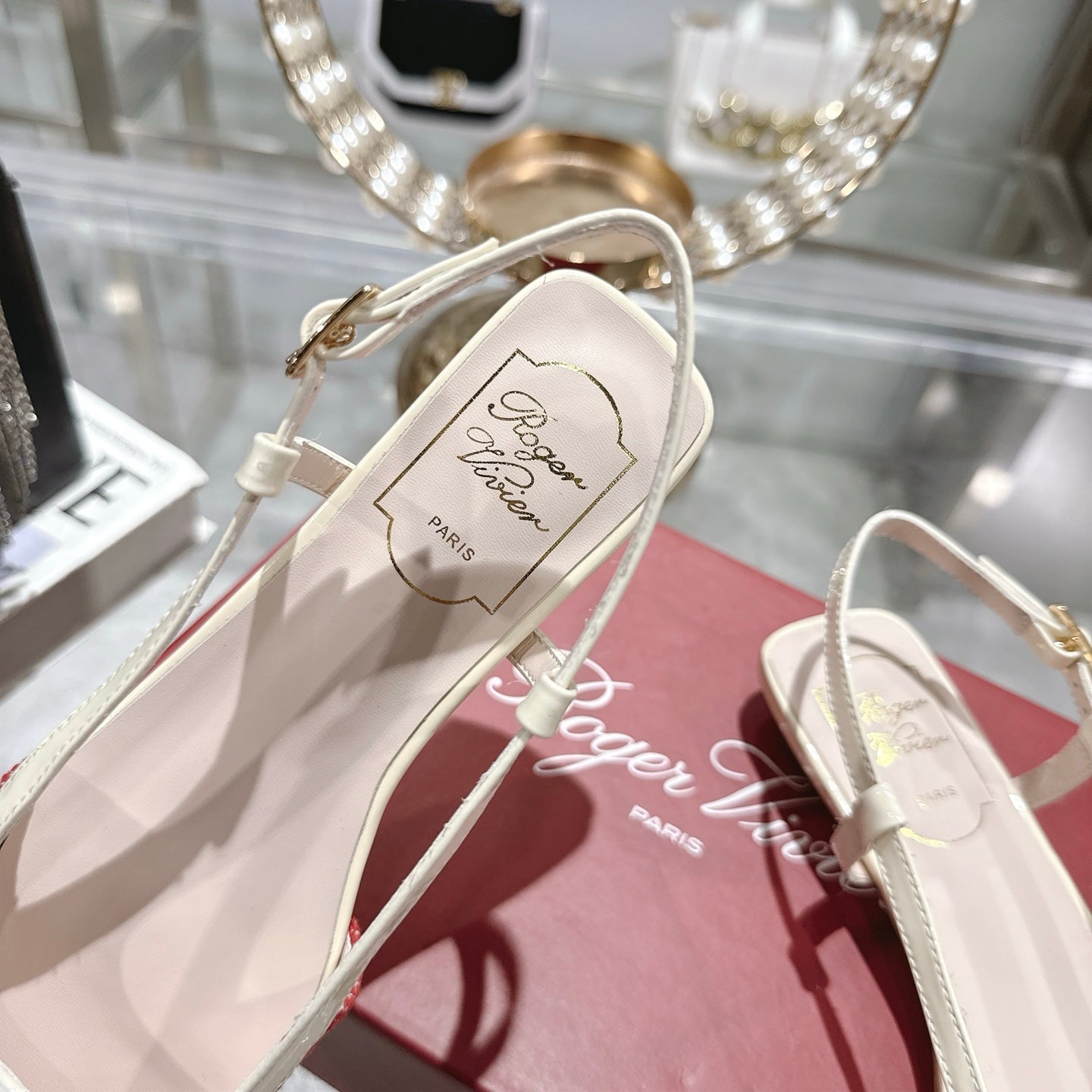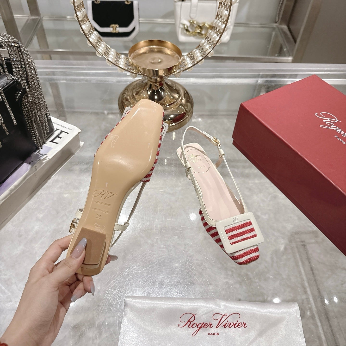 ROGER VIVIER 25S VIVIER SLINGBACK 25MM IN RED PLAID PATTERN CANVAS