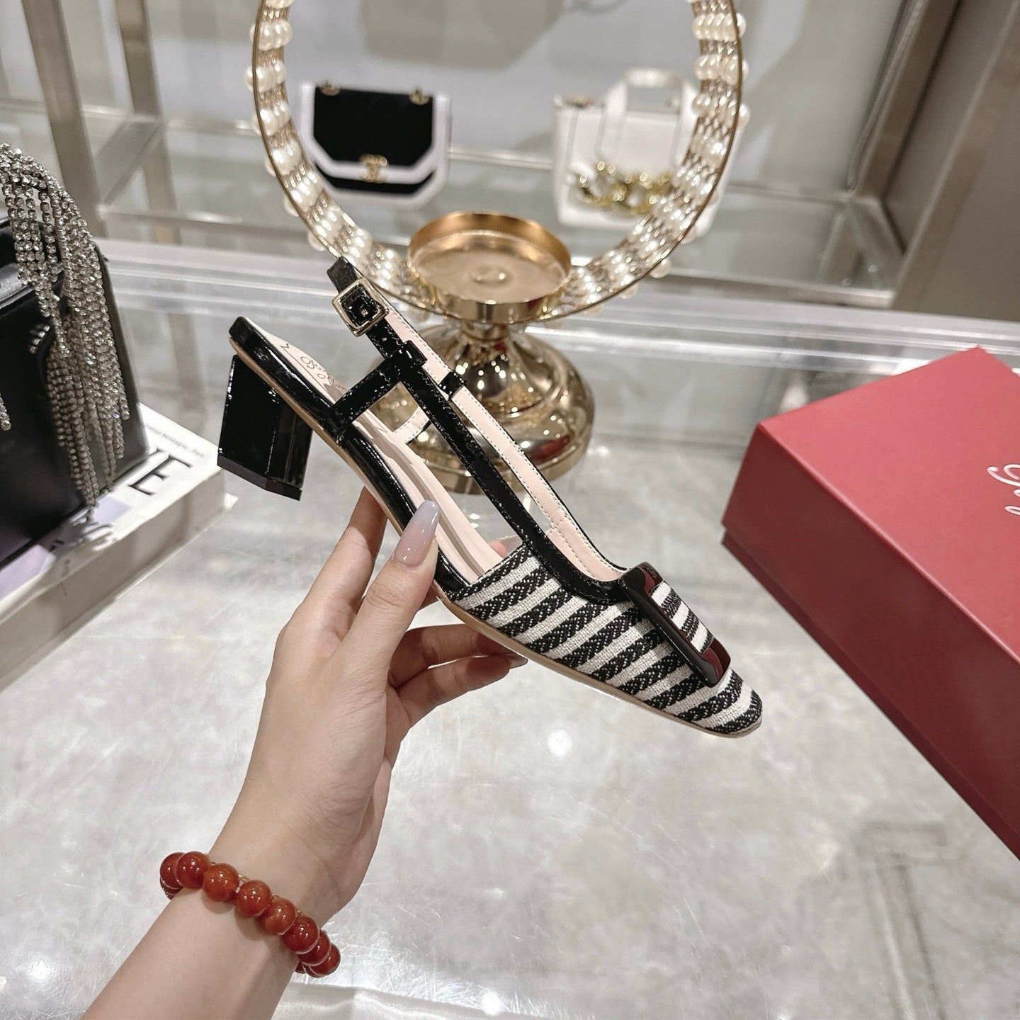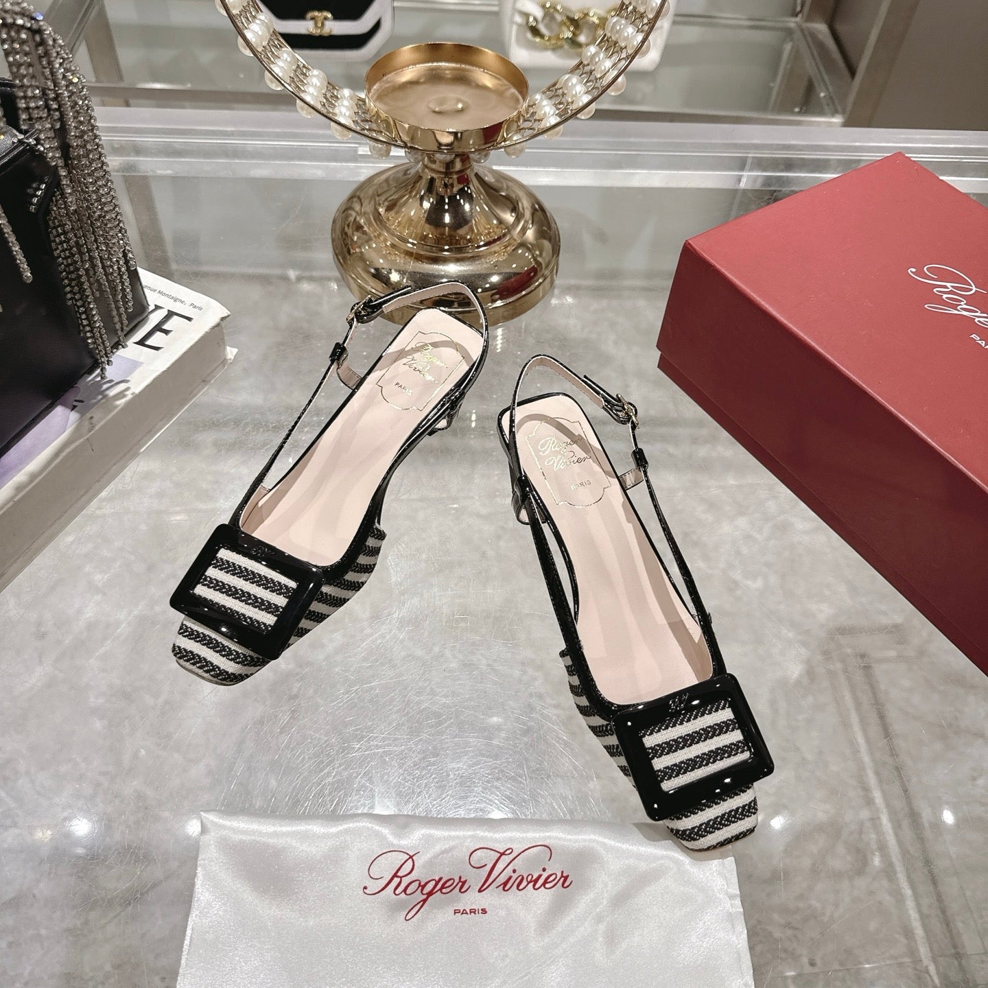 ROGER VIVIER 25S VIVIER SLINGBACK 45MM IN BLACK PLAID PATTERN CANVAS