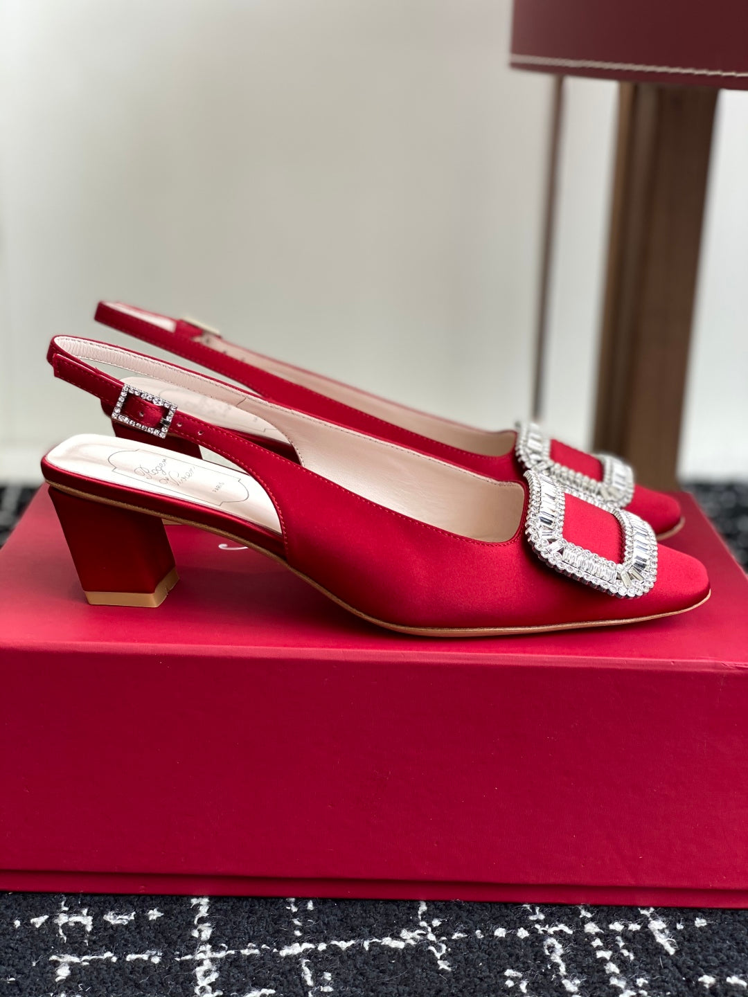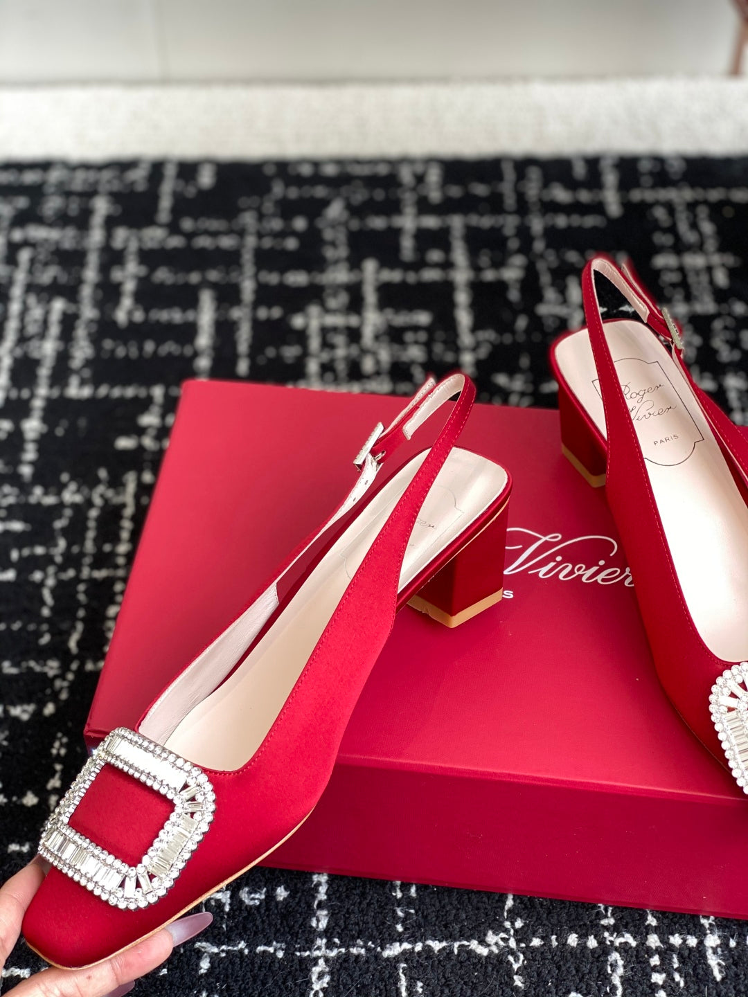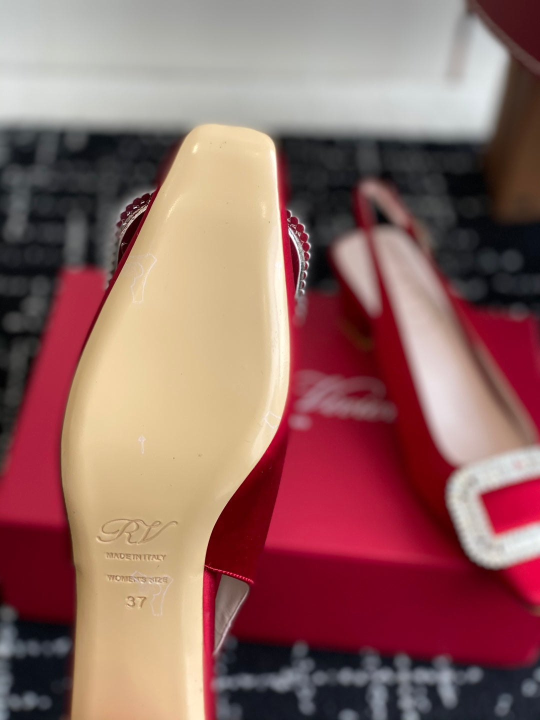 ROGER VIVIER 25S VIVIER SLINGBACK 45MM IN BRIGHT RED SILK EMBELLISHED CRYSTALS
