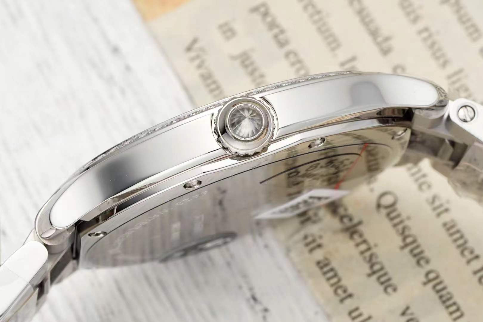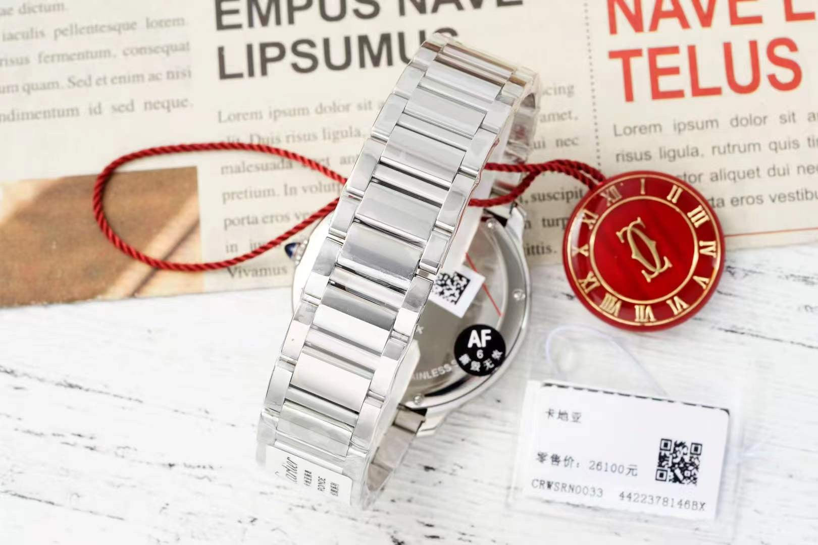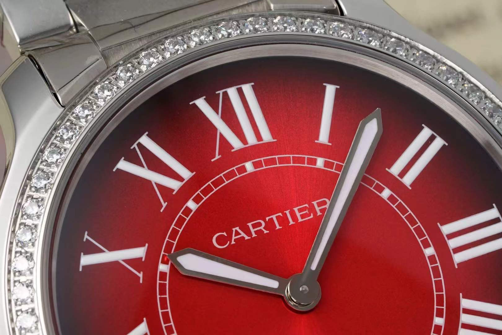 RONDE MUST DE CARTIER WATCH SILVER CASE AND CHERRY RED DIAL WITH CRYSTALS