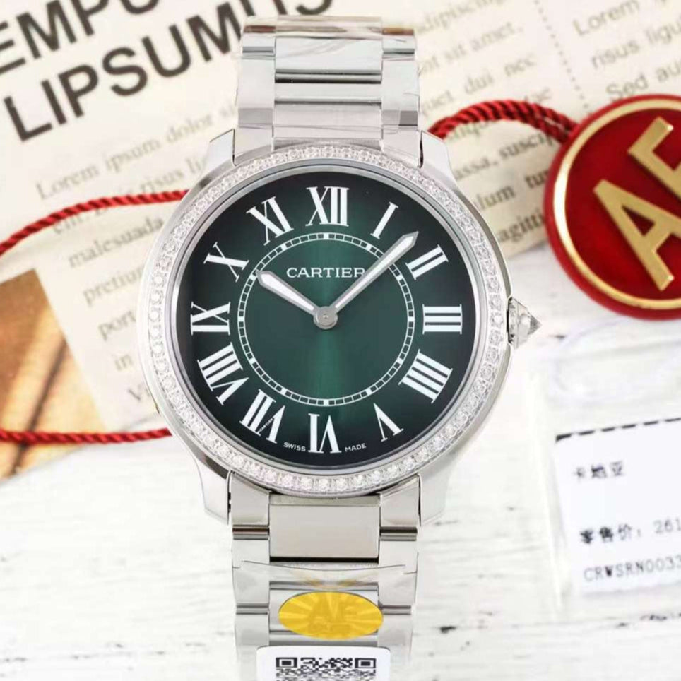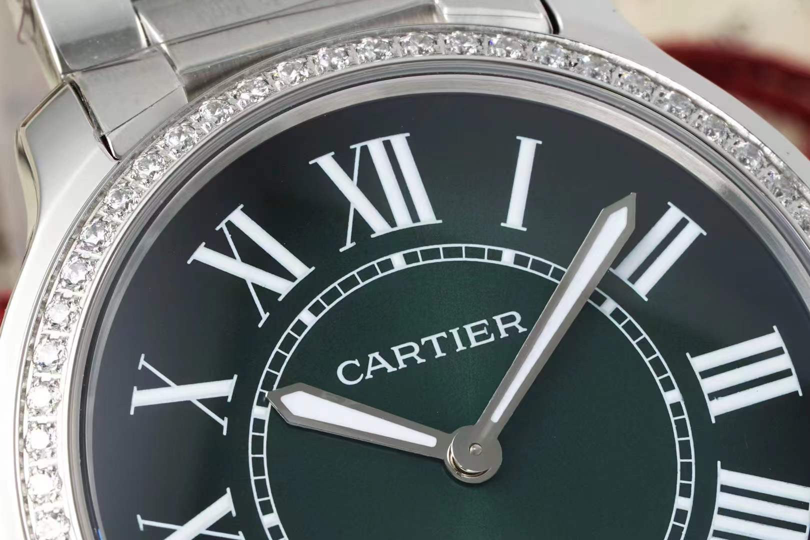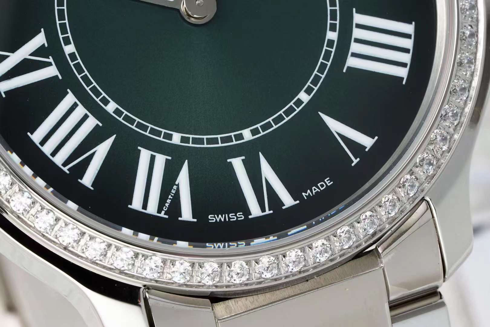 RONDE MUST DE CARTIER WATCH SILVER CASE AND GREEN DIAL WITH CRYSTALS
