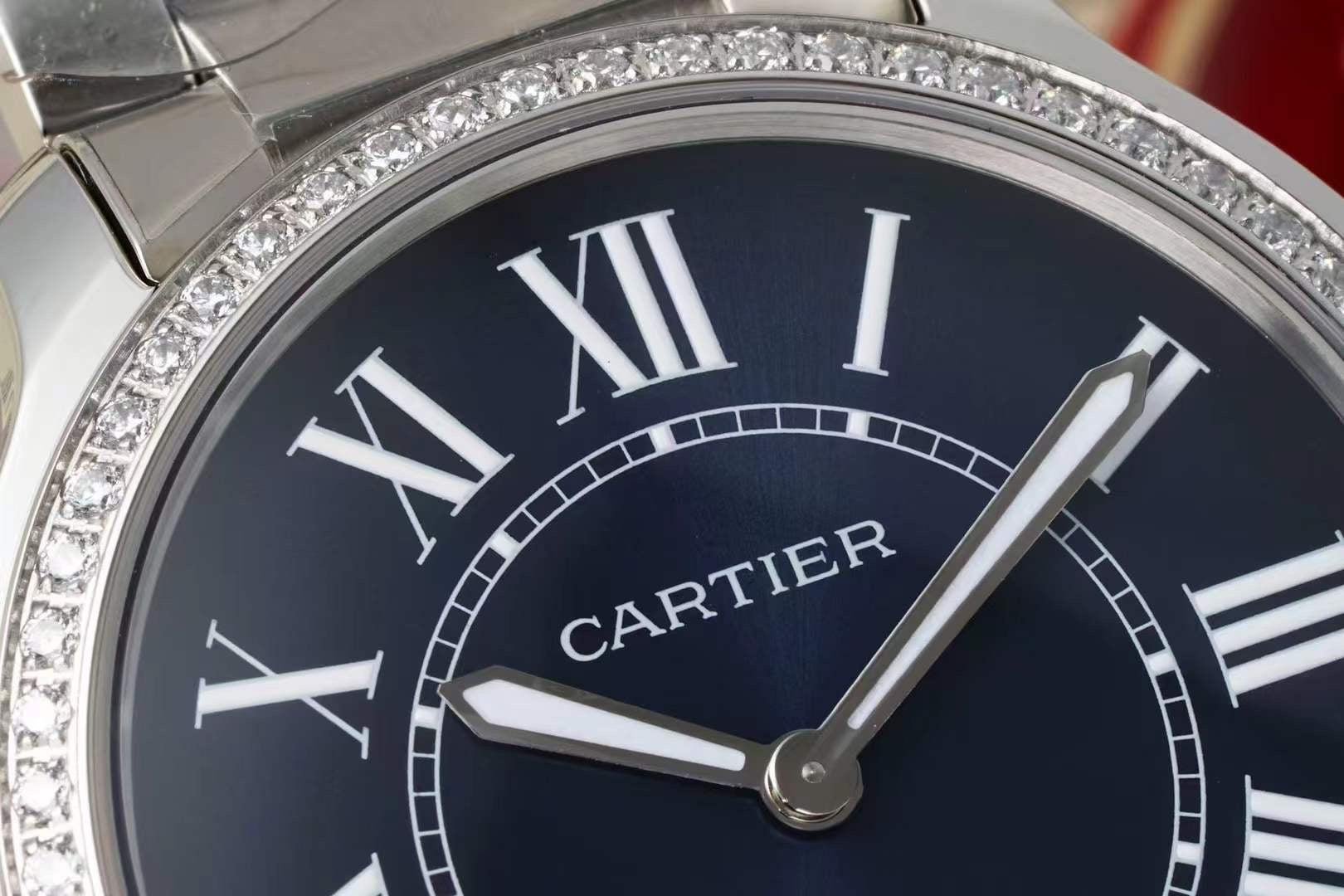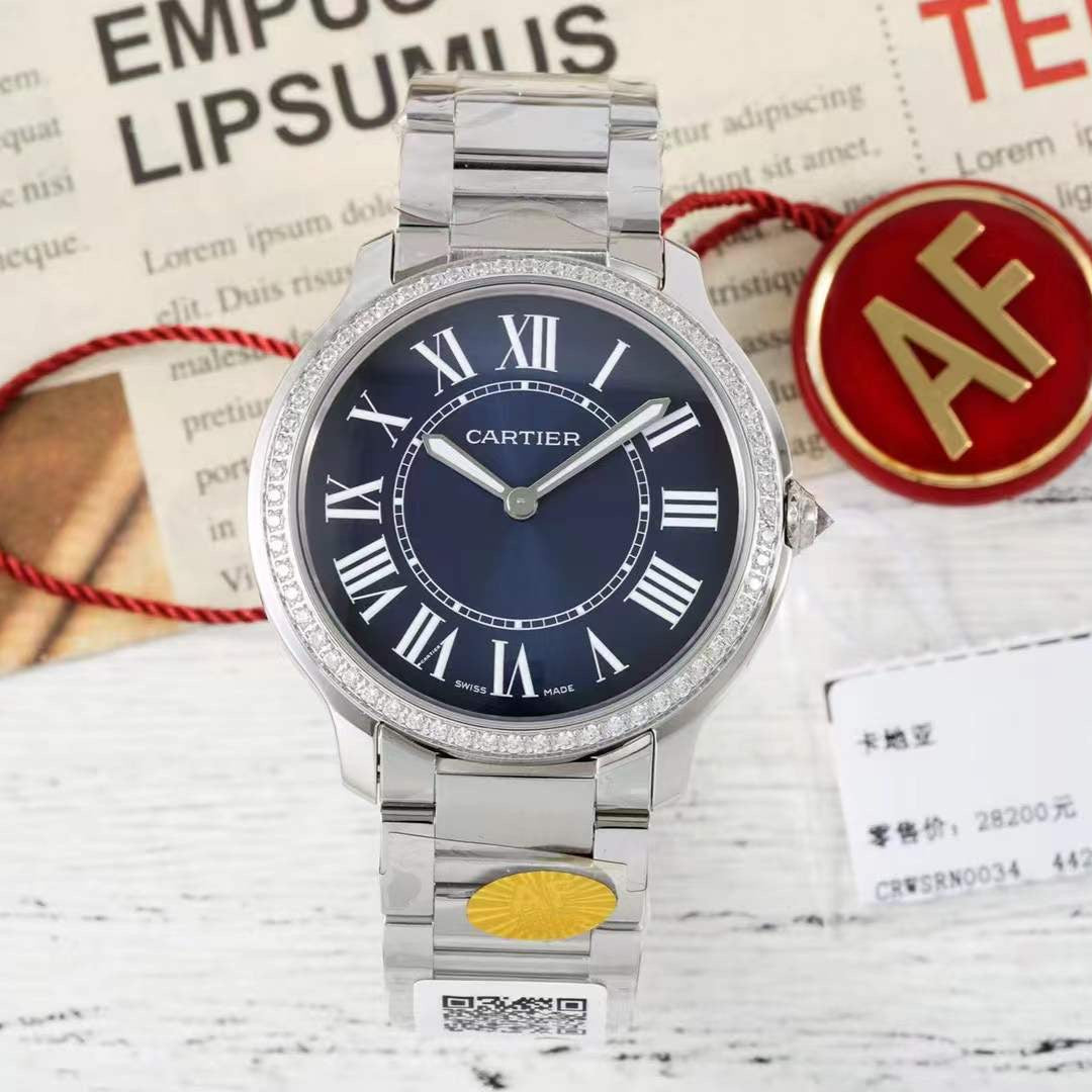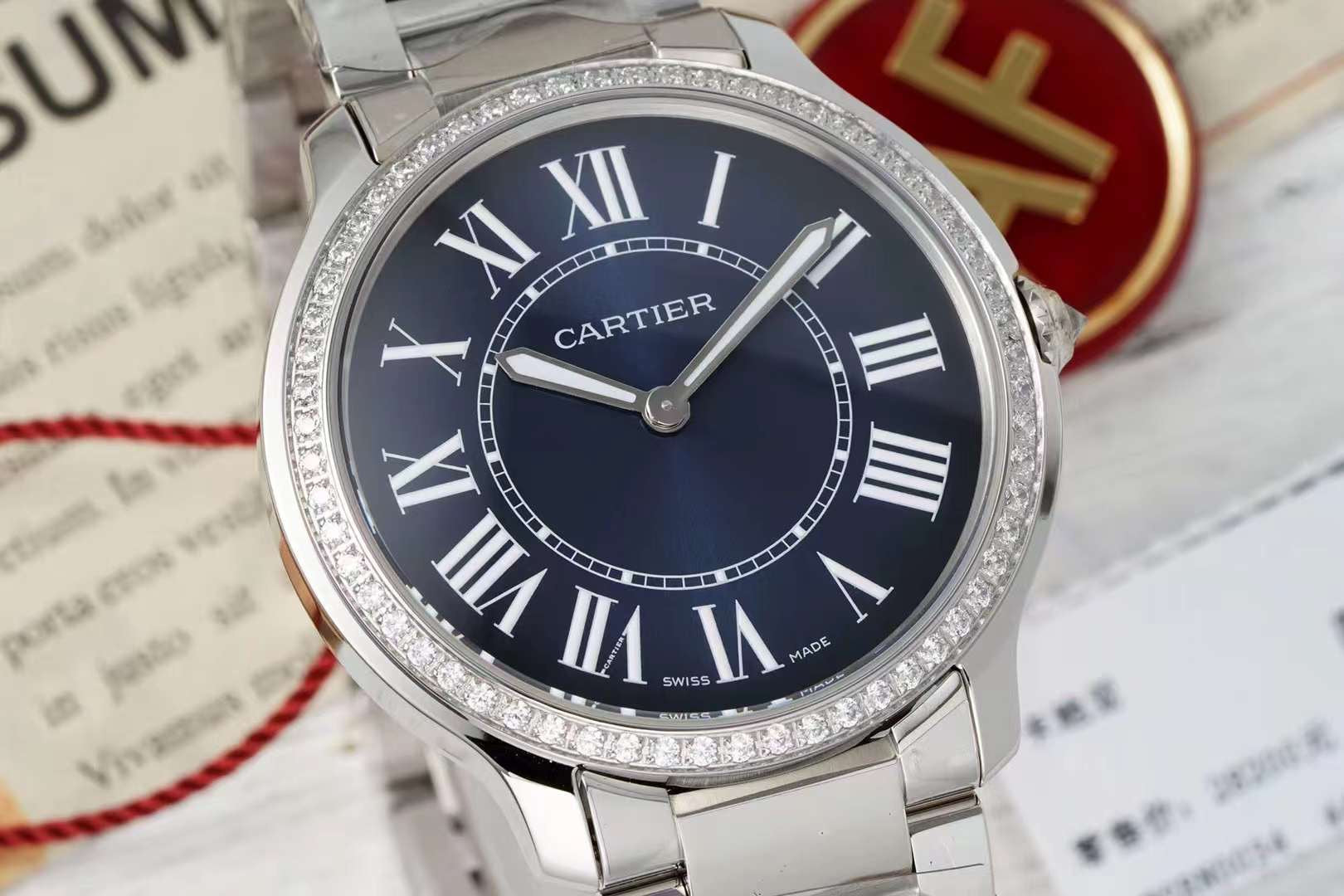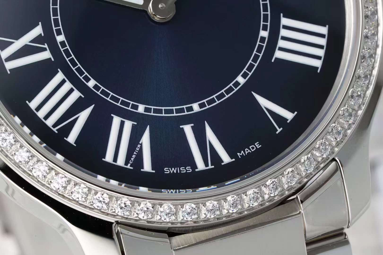 RONDE MUST DE CARTIER WATCH SILVER CASE AND NAVY BLUE DIAL WITH CRYSTALS