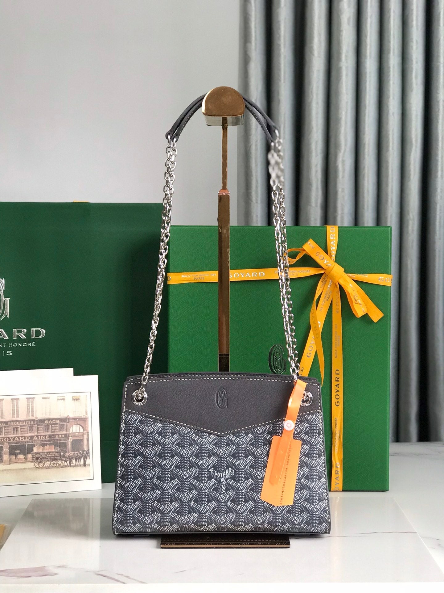 ROUETTE STRUCTURÉ MINI BAG 21 IN GREY BLACK GOYARDINE CANVAS AND CALFSKIN