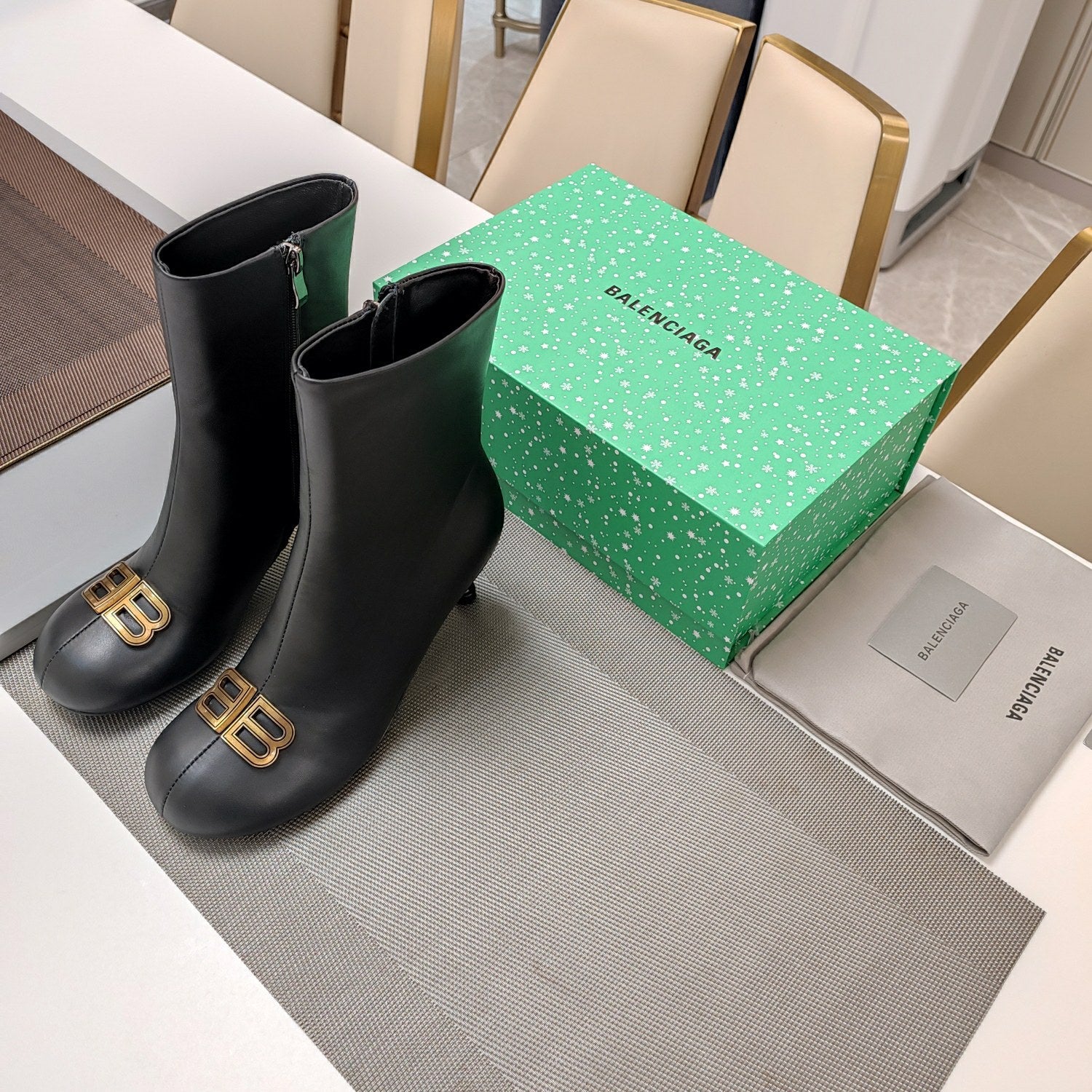 ROUND-TOE HIGH HEEL BOOTS IN BLACK SMOOTH LAMBSKIN