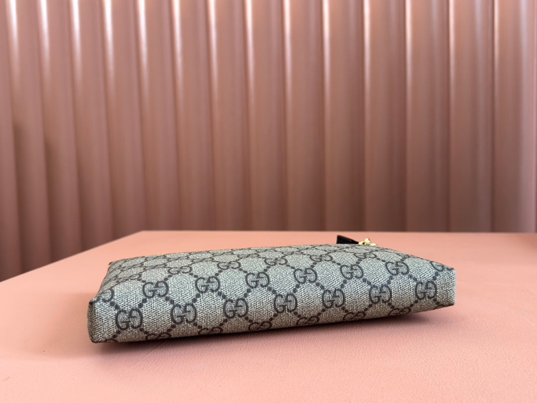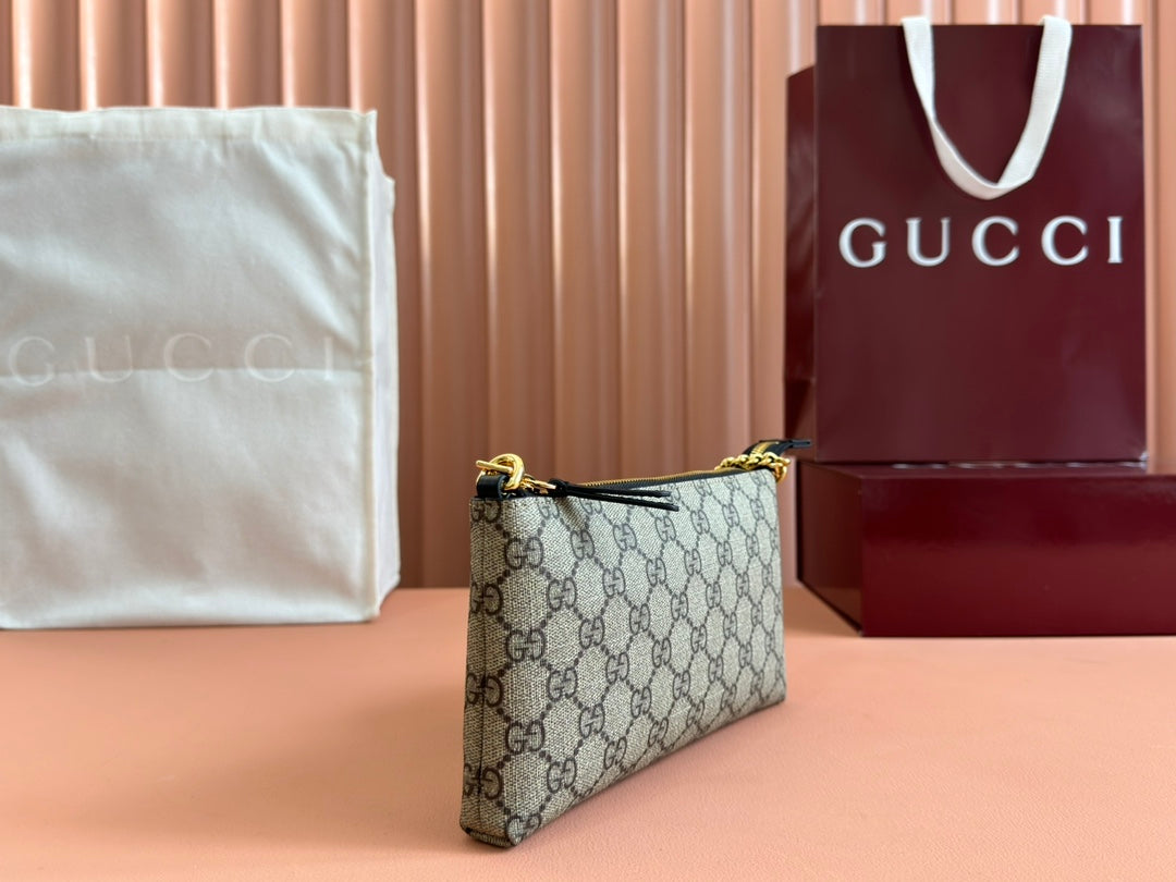 RUBBER EFFECT SMALL WALLET ON CHAIN 22.5 IN BEIGE AND DARK BROWN GG CALFSKIN