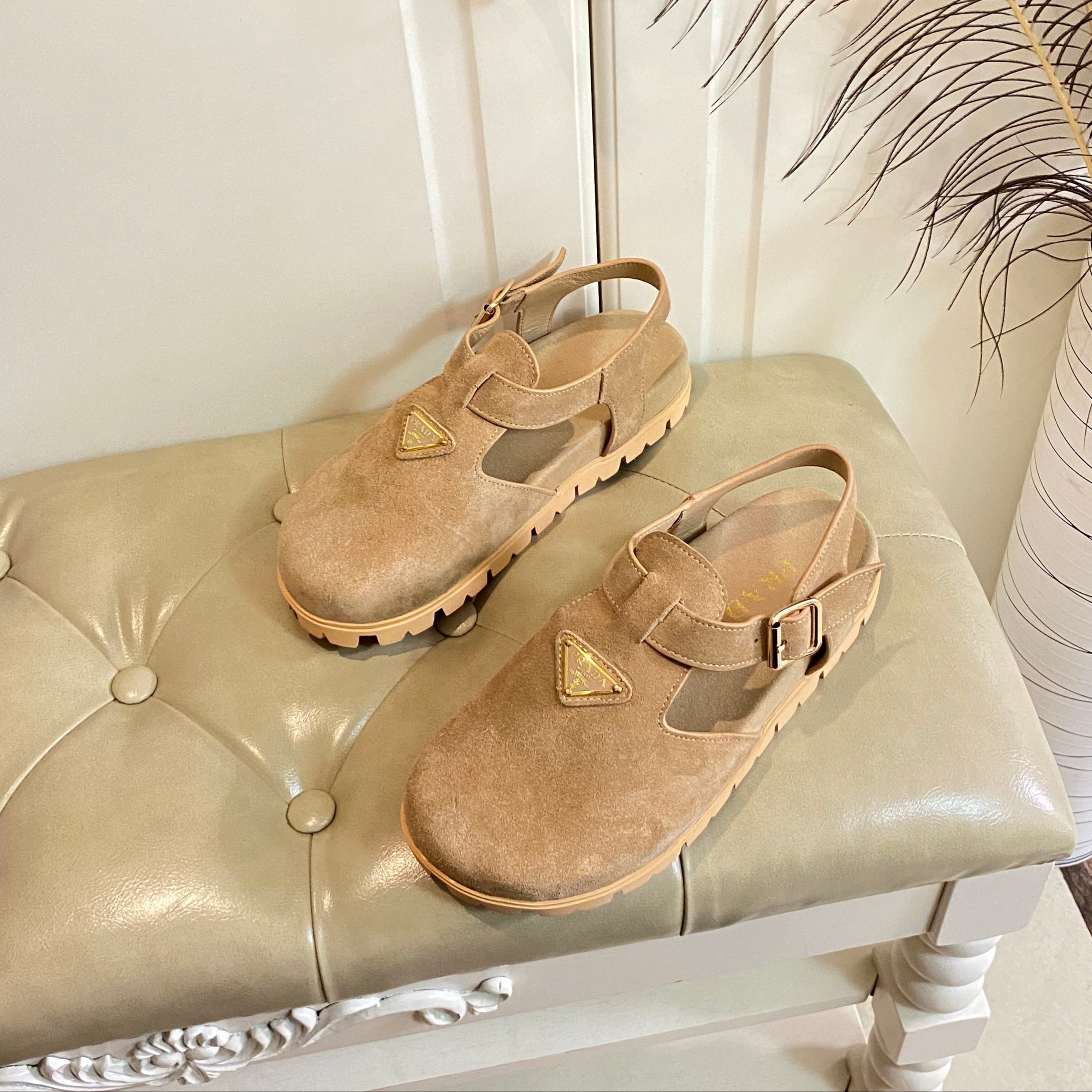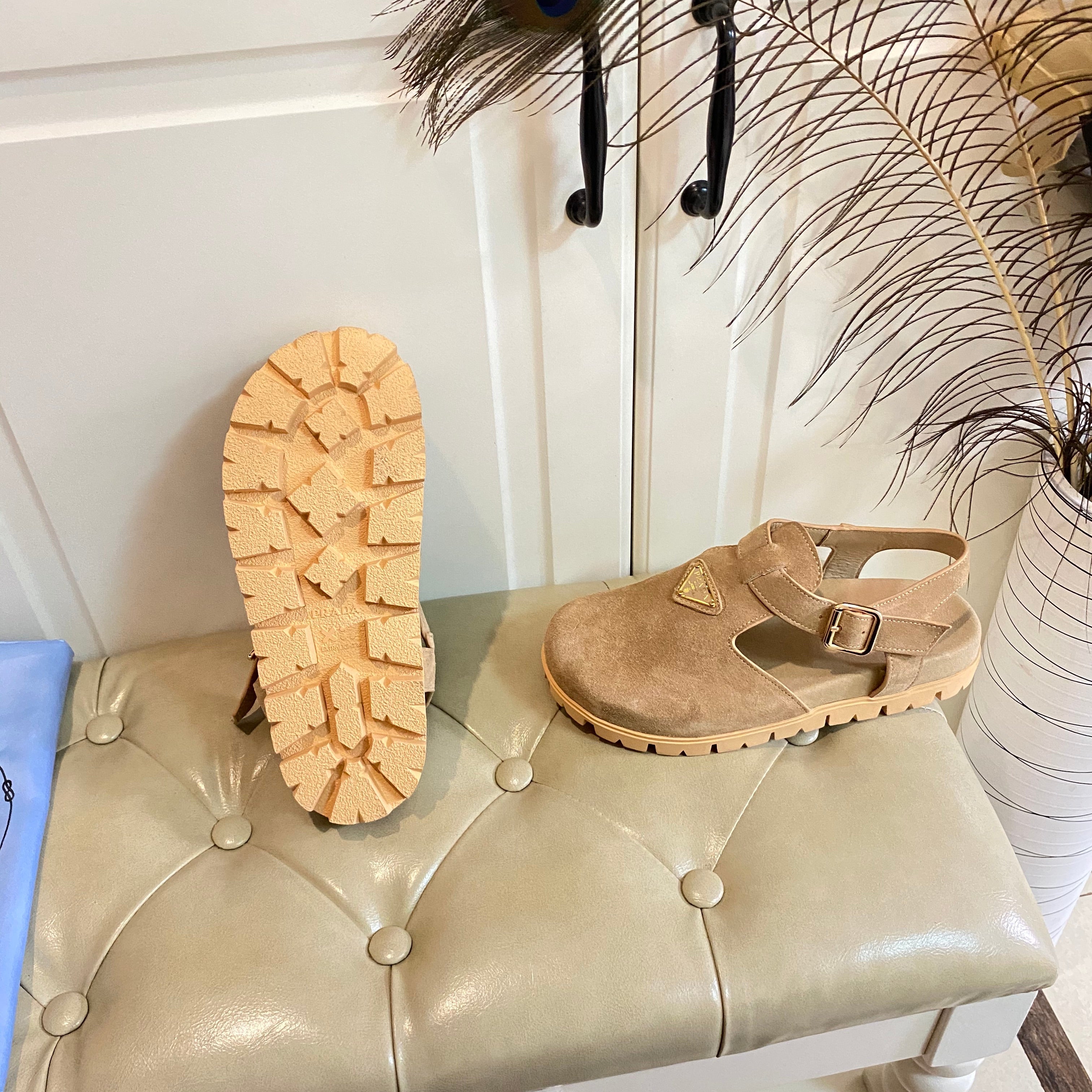 RUBBER SOLE SANDALS IN DARK BEIGE SUEDE