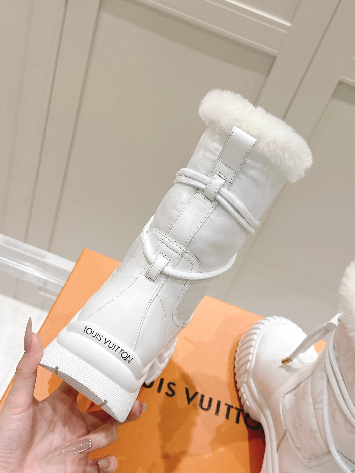 RUBY FLAT ANKLE BOOT IN WHITE CALFSKIN AND MONOGRAM NYLON