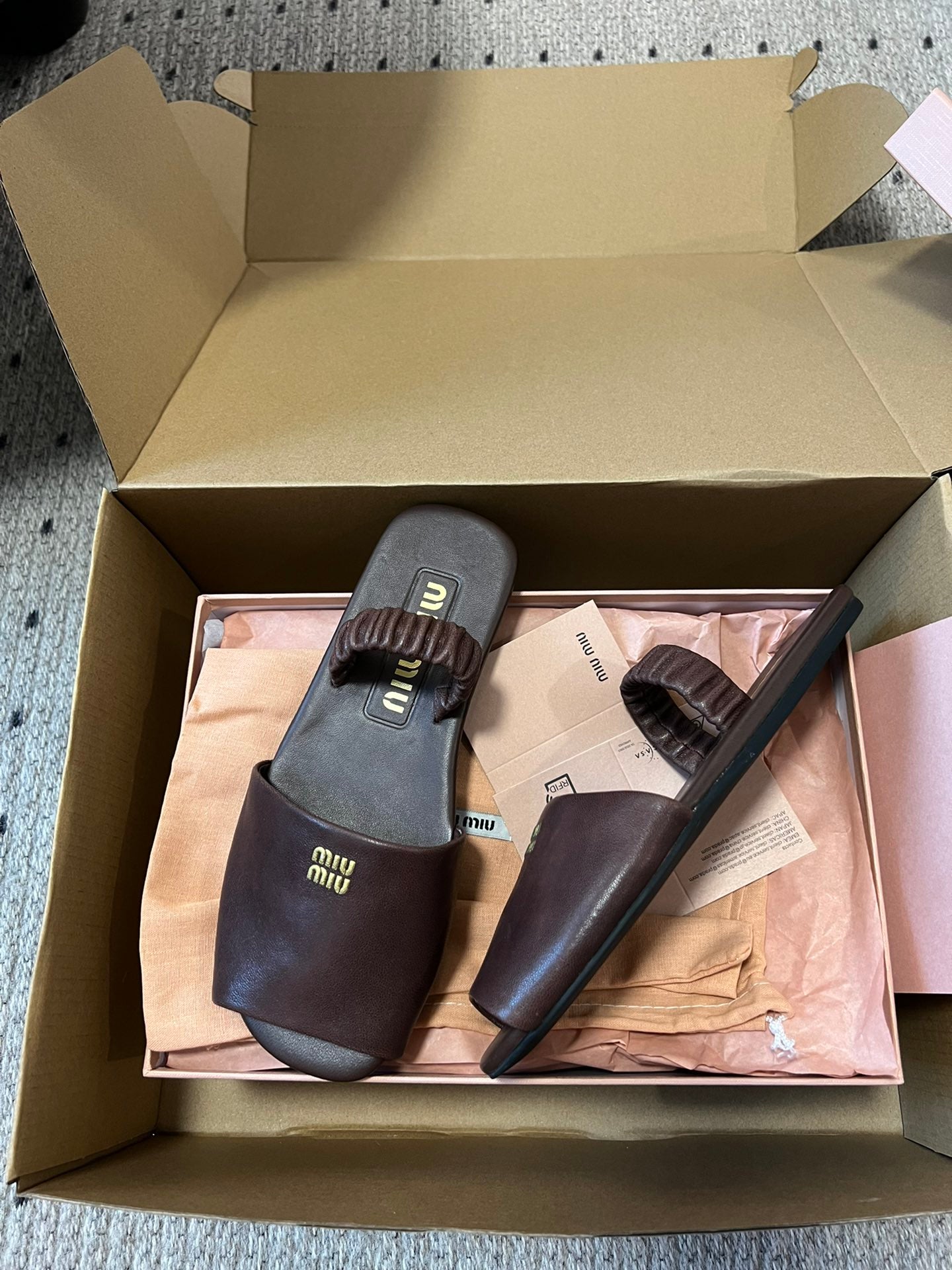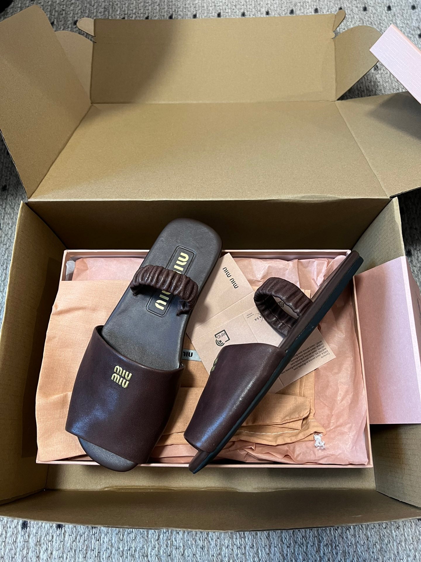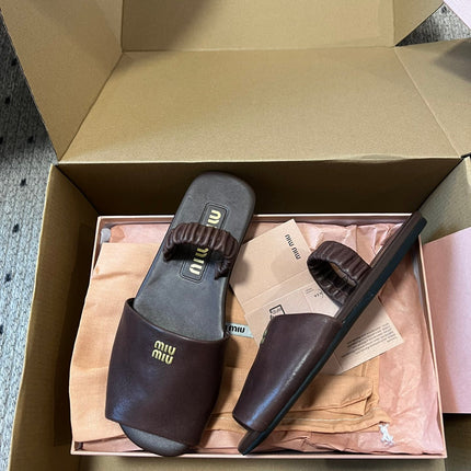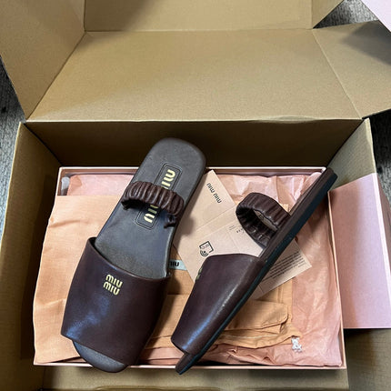 RUCHES SANDALS IN DARK BROWN LAMBSKIN