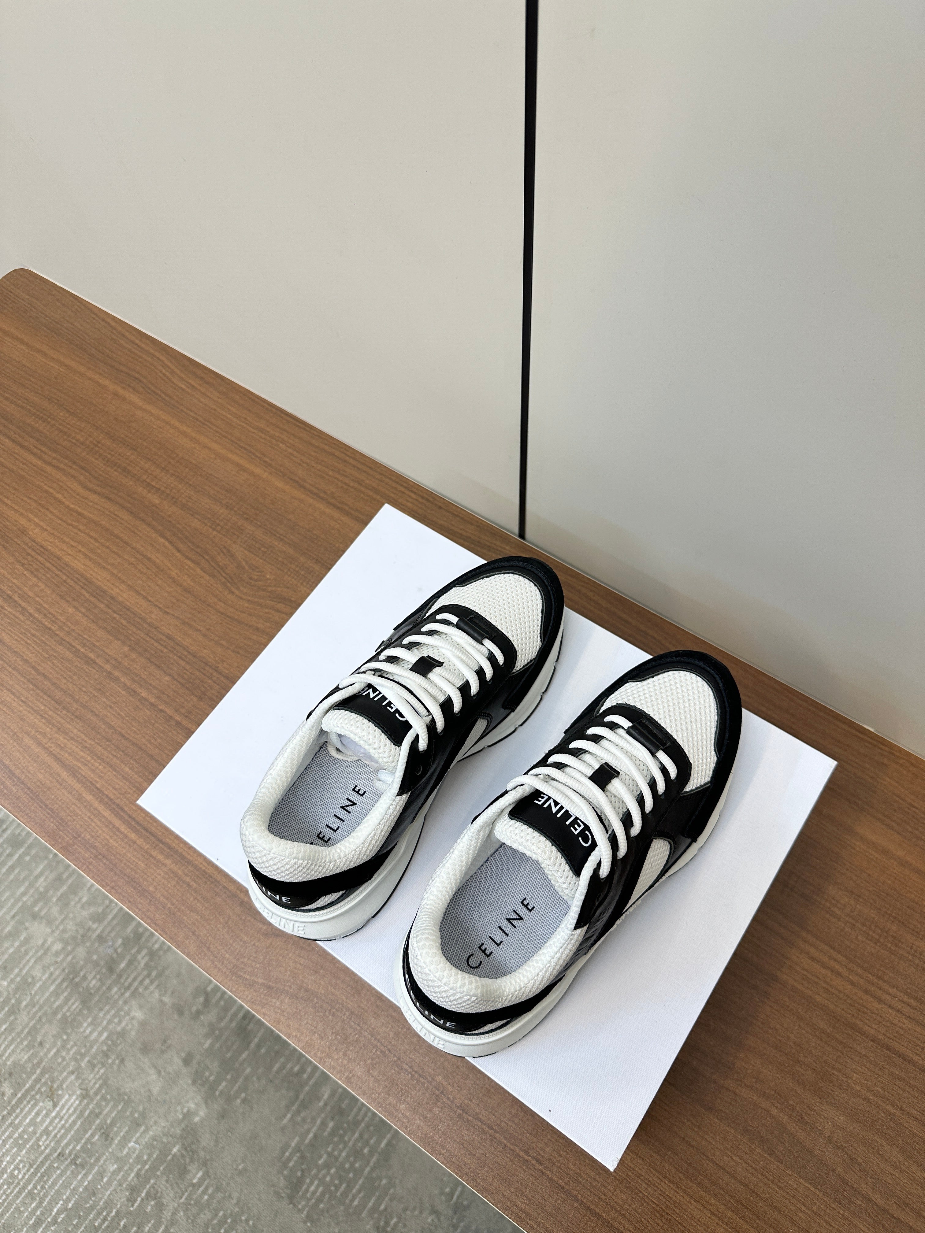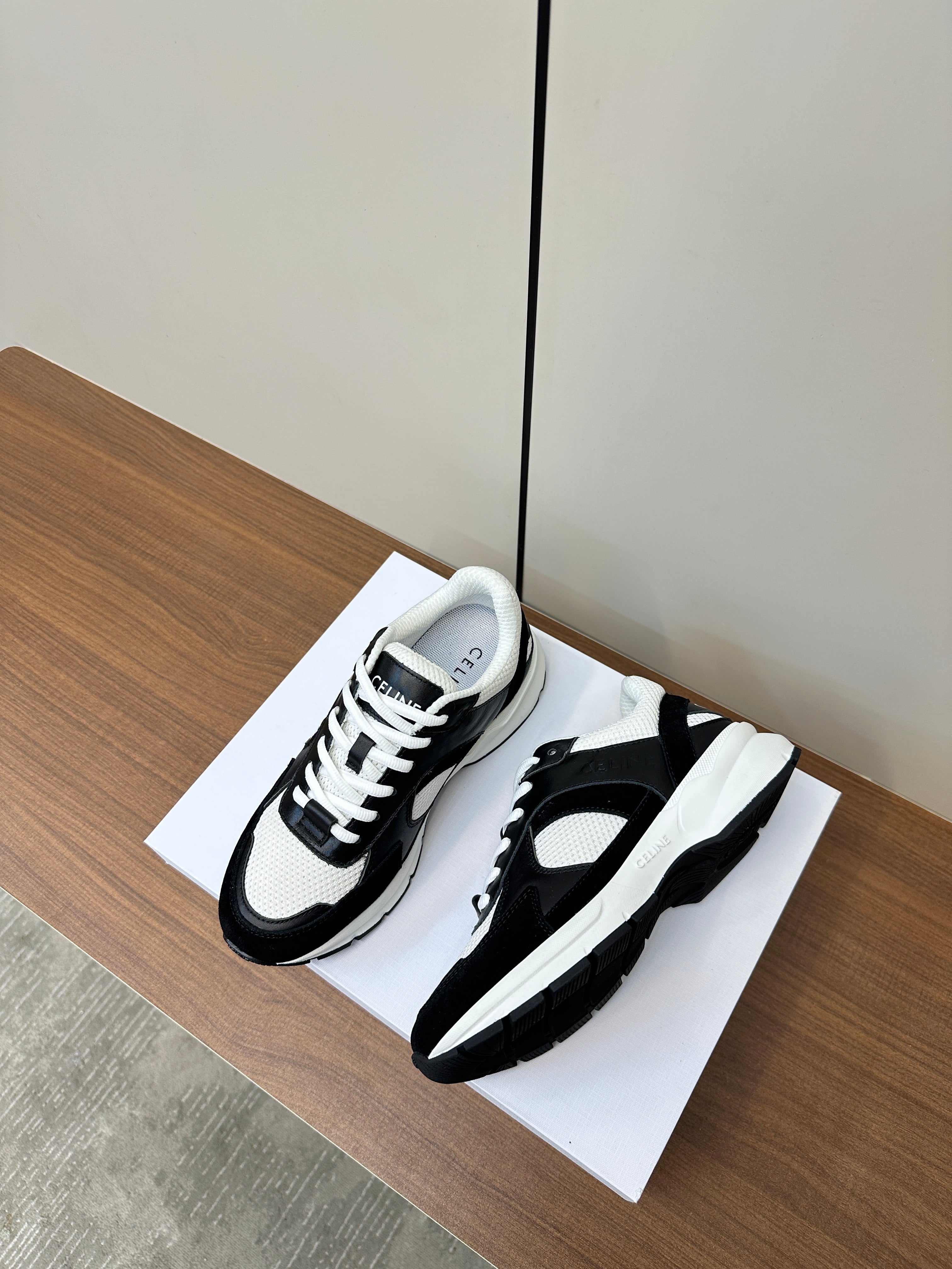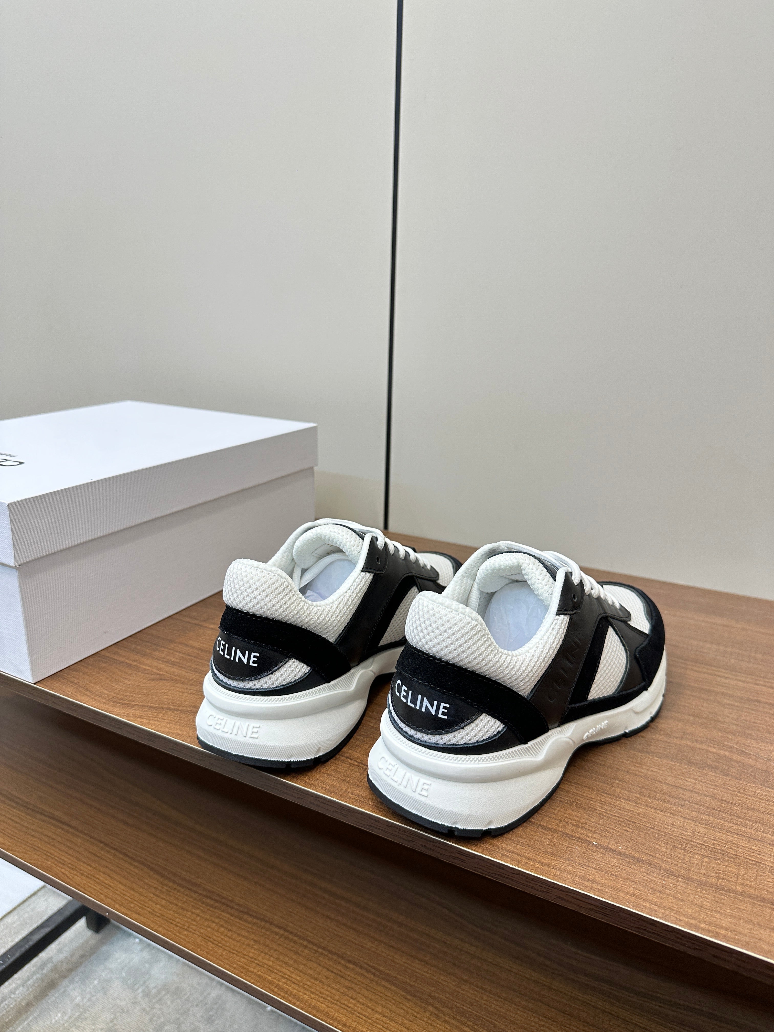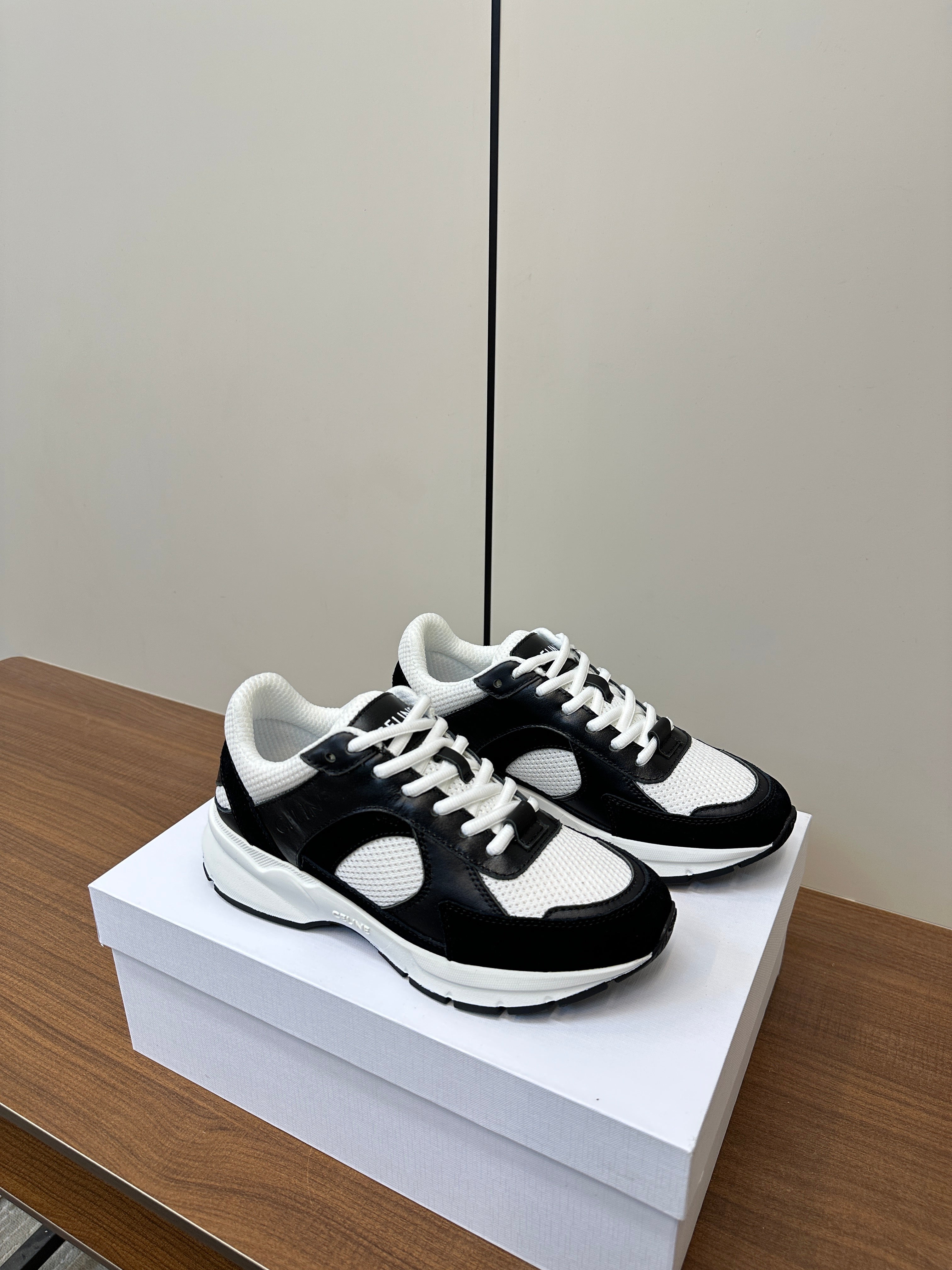 RUNNER CR-03 LOW LACE-UP IN WHITE MESH AND BLACK CALFSKIN