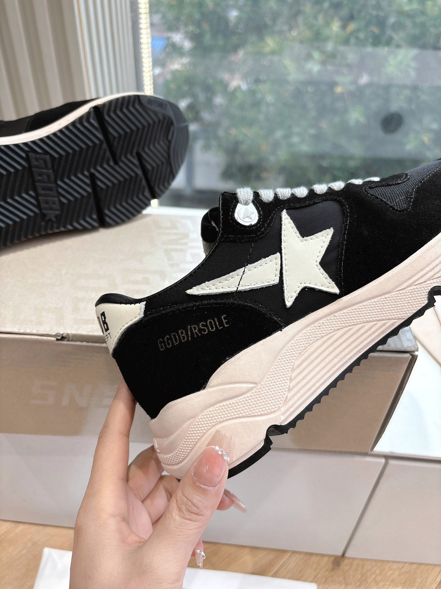RUNNING SOLE SNEAKERS IN BLACK MESH AND SUEDE WHITE CALFSKIN STAR