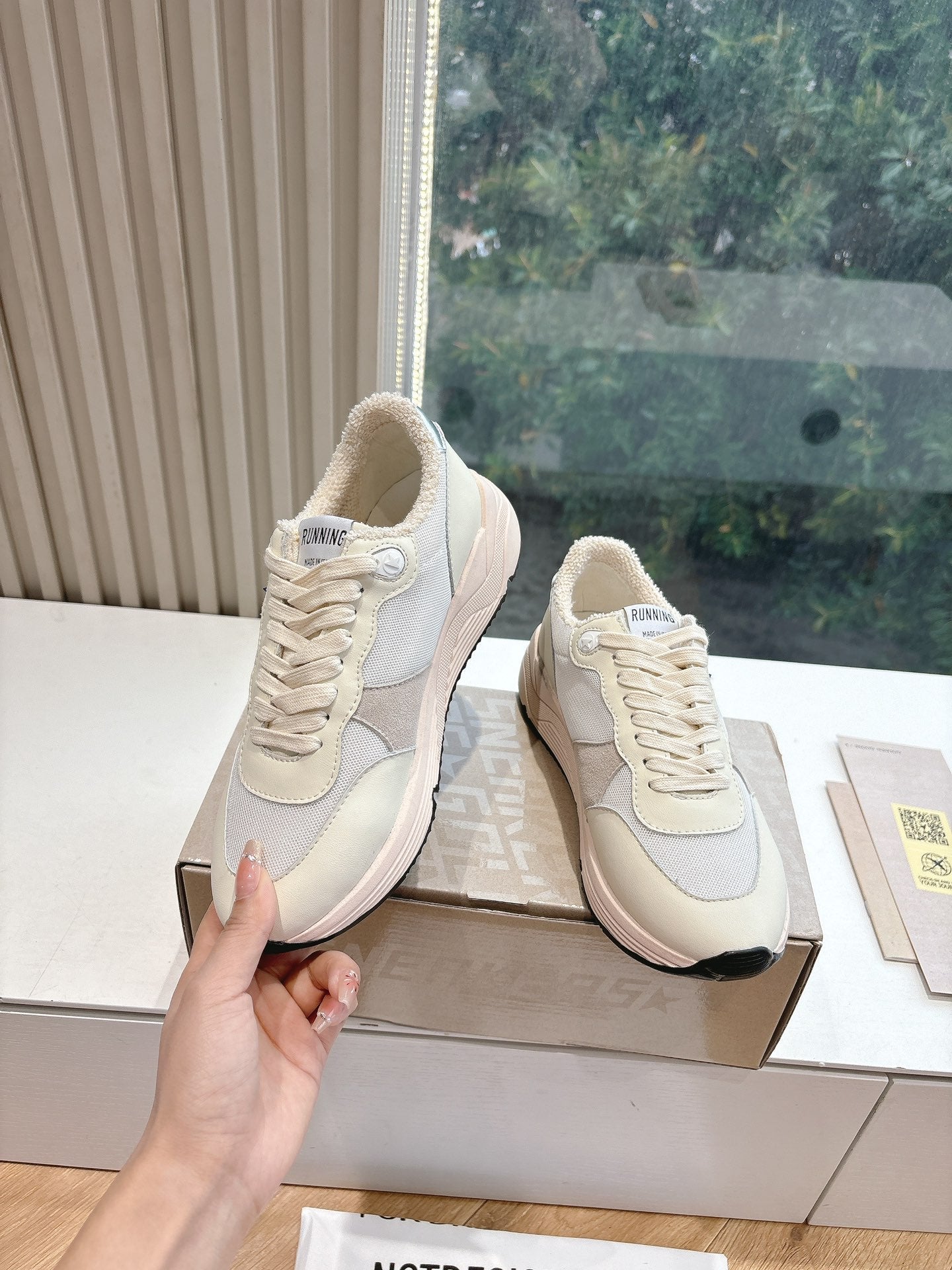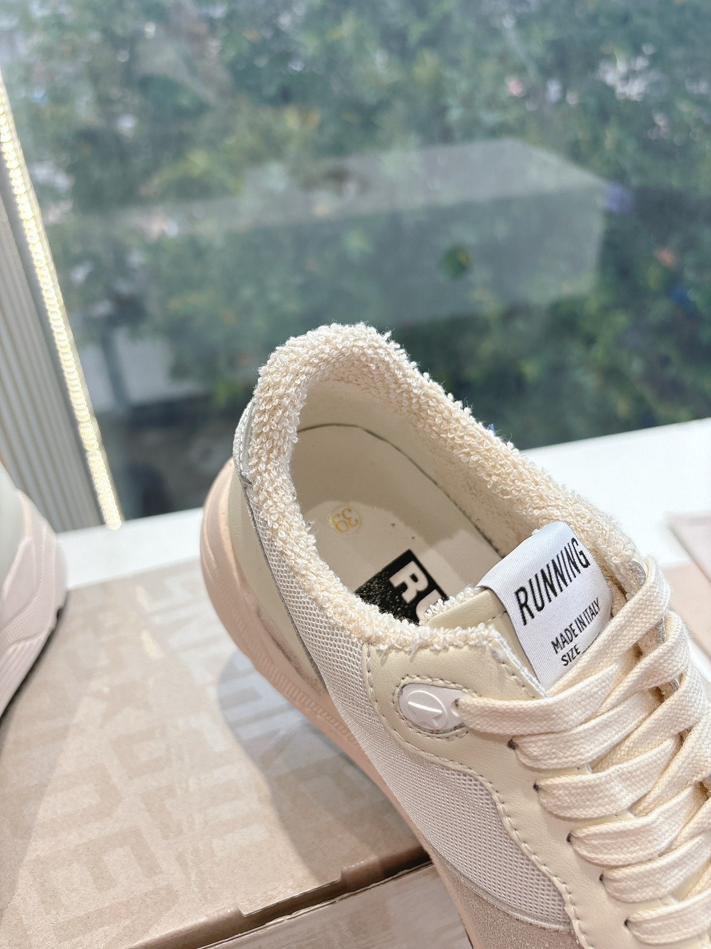RUNNING SOLE SNEAKERS IN WHITE MESH, BEIGE SUEDE AND CALFSKIN WITH BLUE STAR