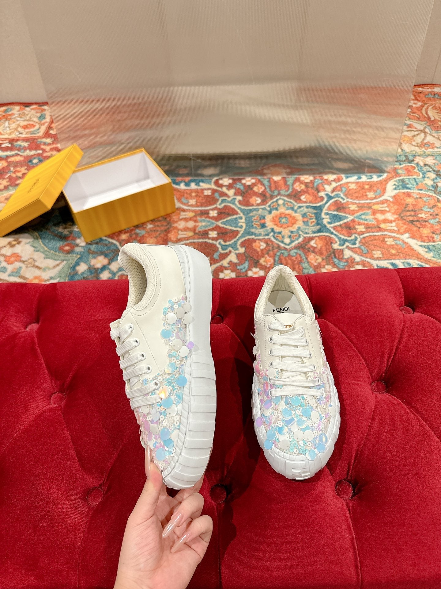 RUNWAY SEQUIN CASUAL SHOES IN WHITE CALFSKIN