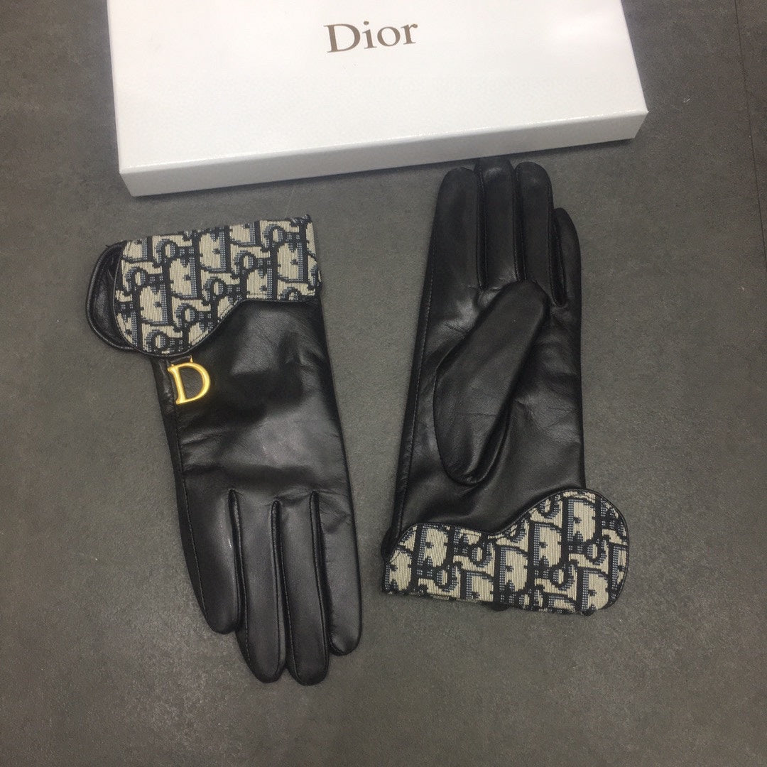 SADDLE GLOVES IN BLACK LAMBSKIN MIX MONO JACQUARD FABRIC 149747