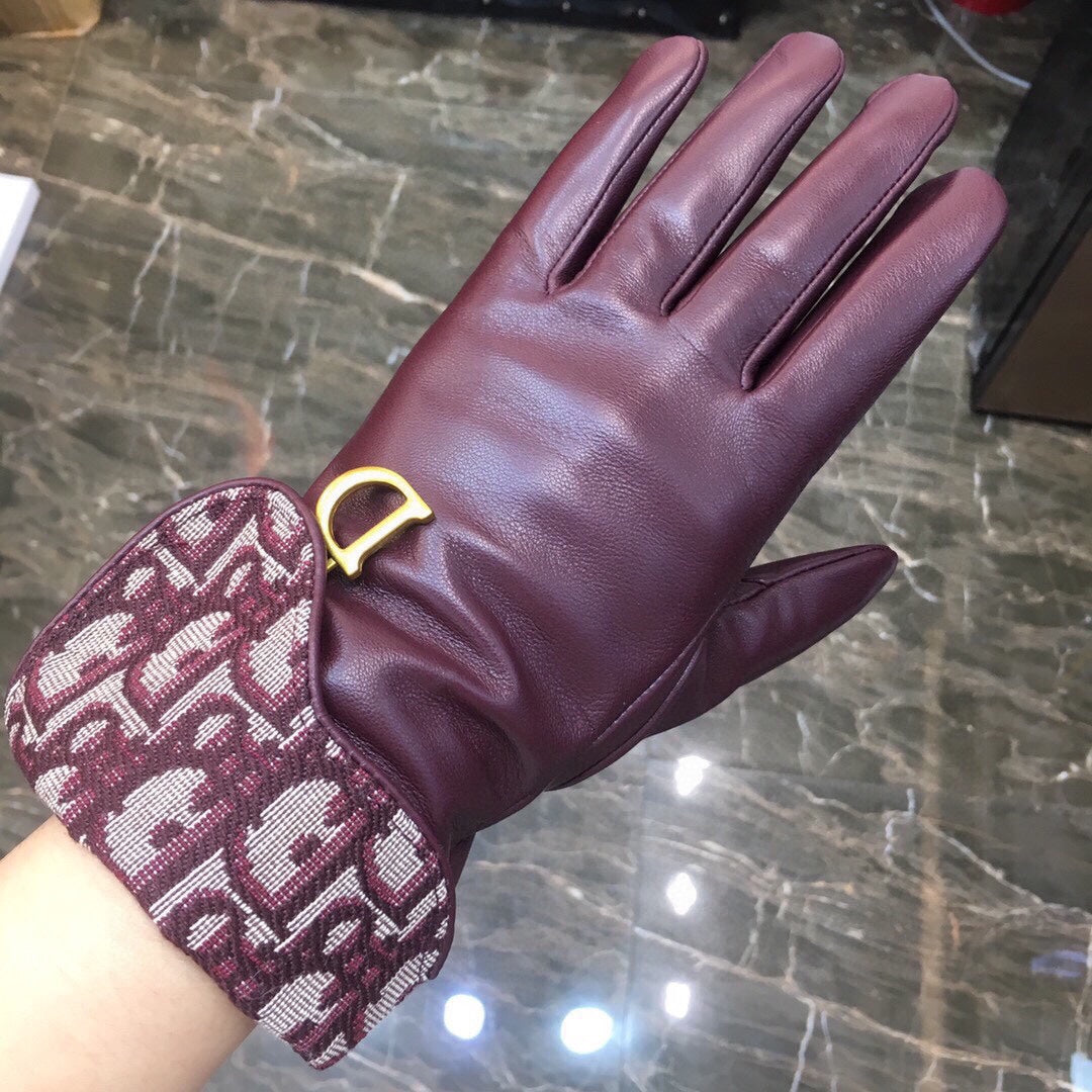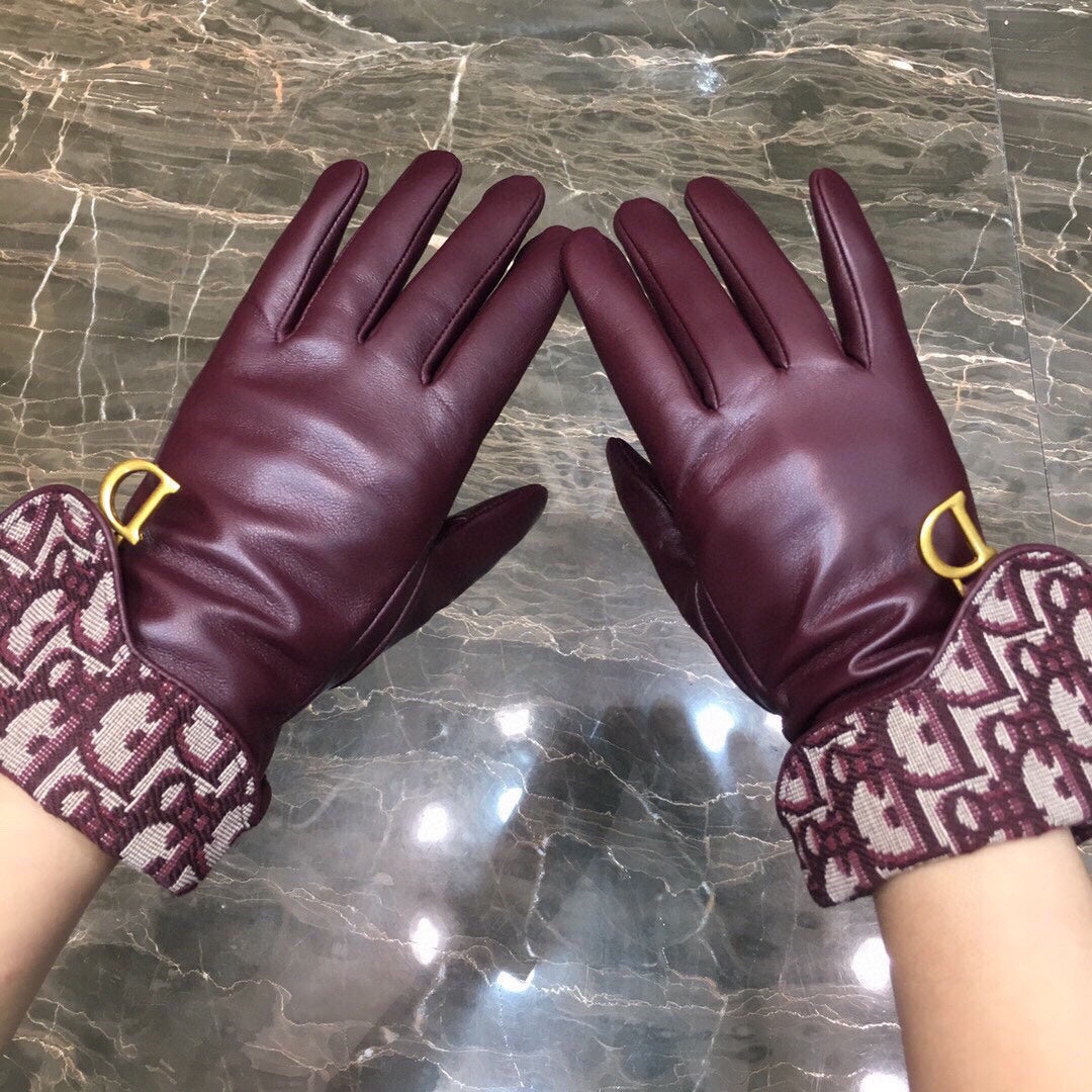 SADDLE GLOVES IN BURGUNDY RED LAMBSKIN MIX MONO JACQUARD FABRIC 427423