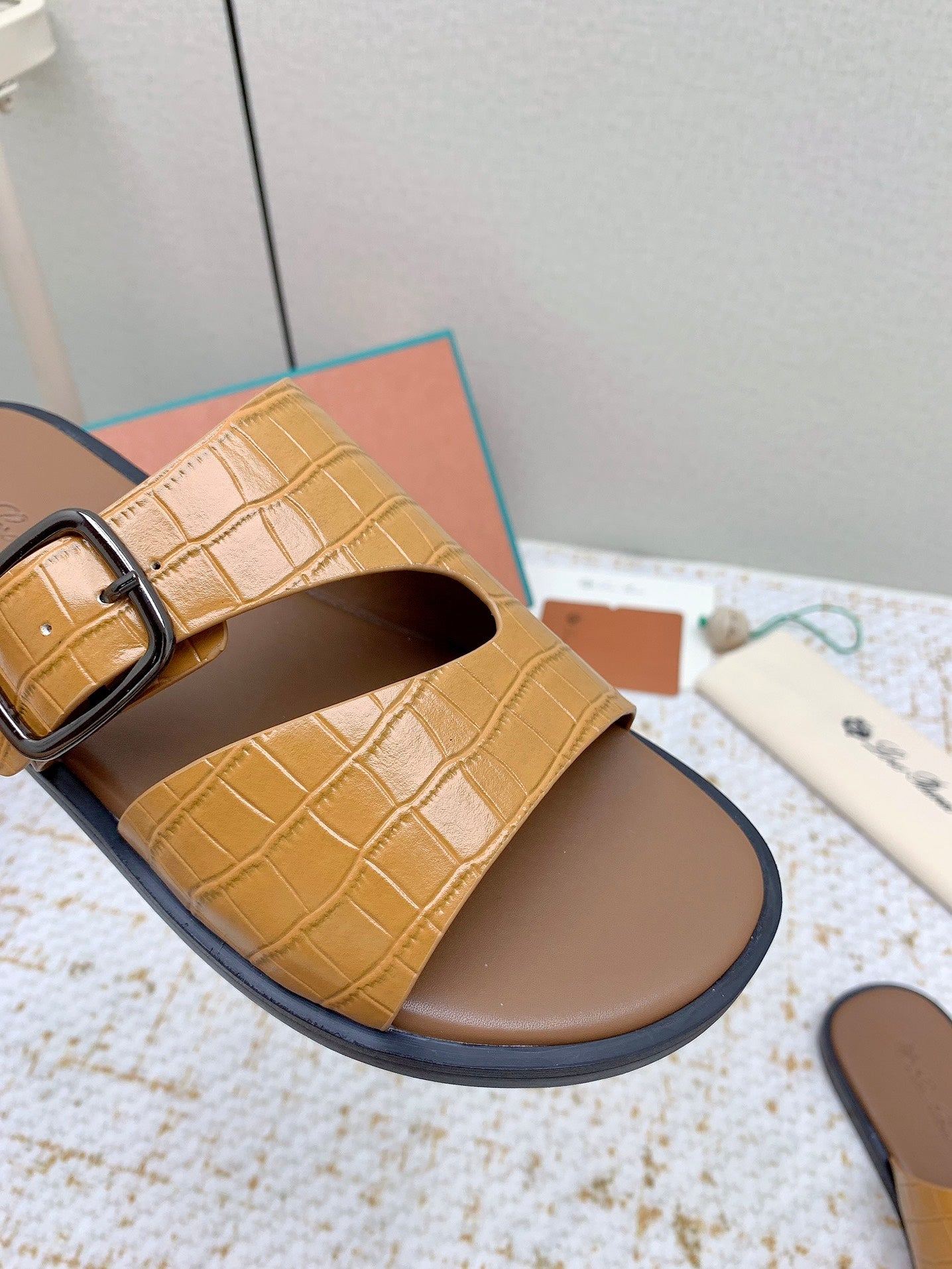 SANDALS IN LIGHT BROWN SNAKE EMBOSSED CALFSKIN