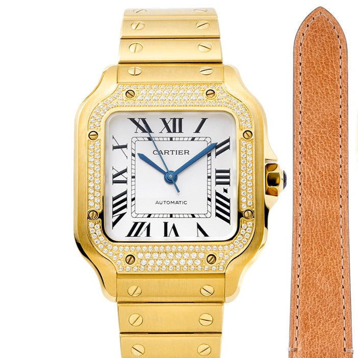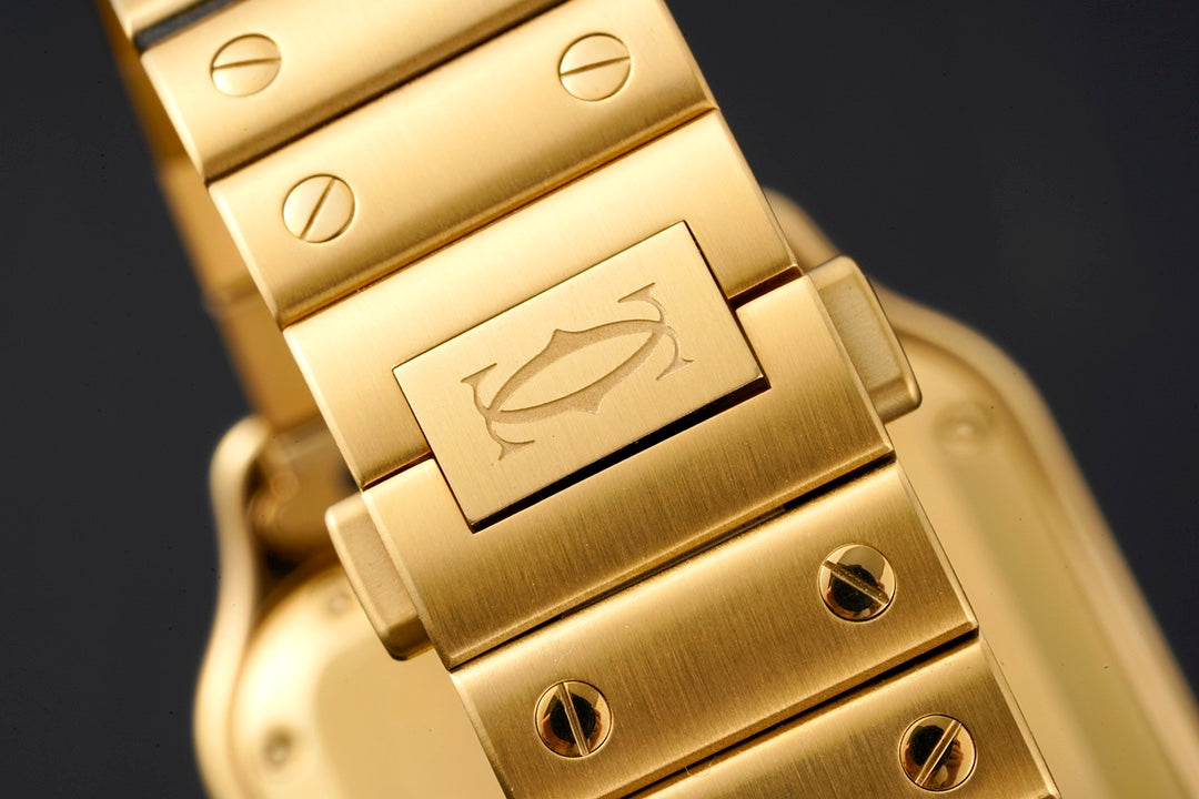 SANTOS MEDIUM MODEL DE CARTIER WATCH GOLD CASE WITH CRYSTALS
