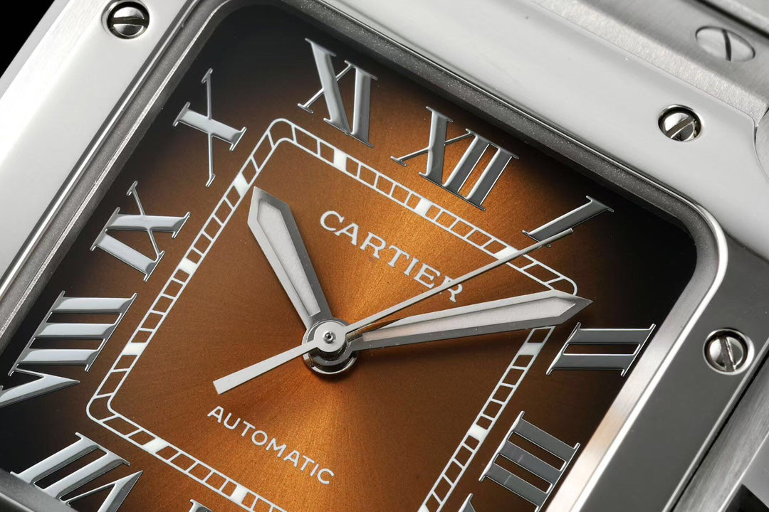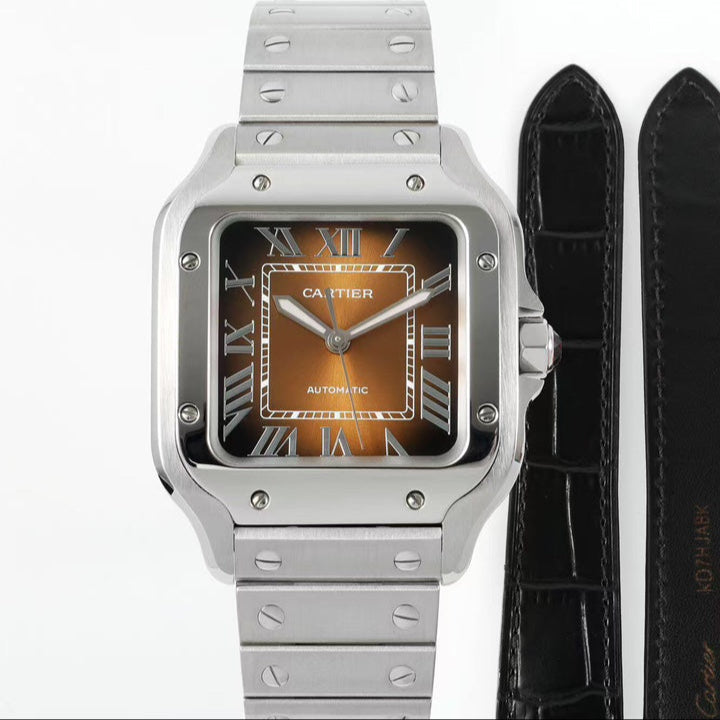 SANTOS MEDIUM MODEL DE CARTIER WATCH SILVER CASE WITH PEANUT BROWN DIAL