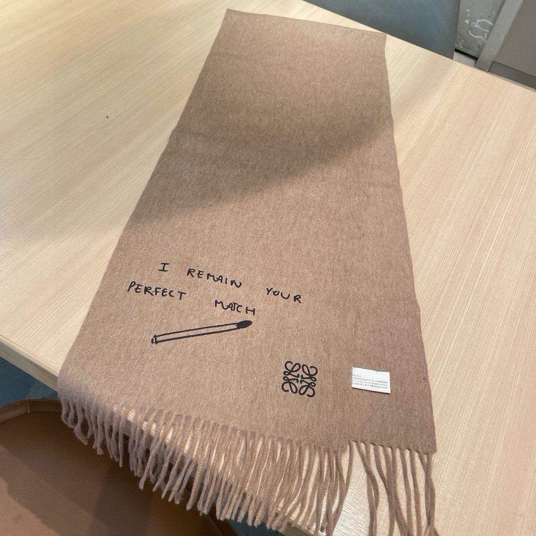 SCARF 180 CM IN CAMEL BEIGE LAMBSWOOL WITH BLACK LETTER 394446