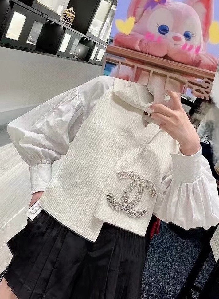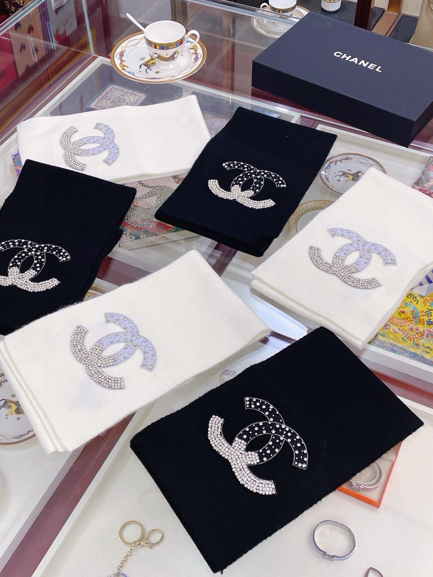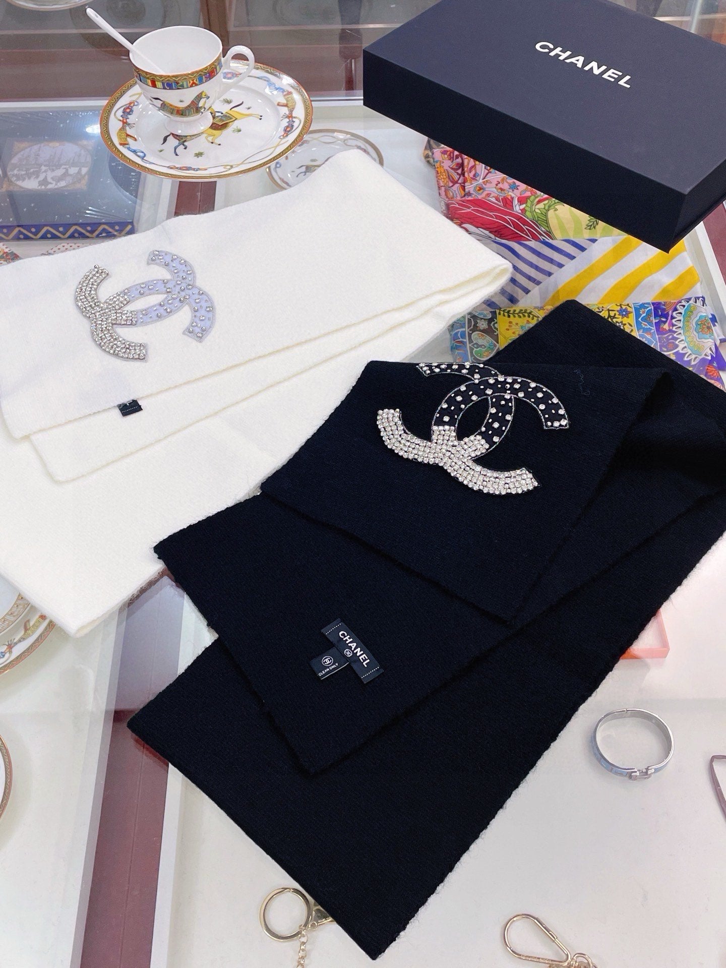 SCARF 180 CM IN WHITE CASHMERE WITH RHINSTONES 393227