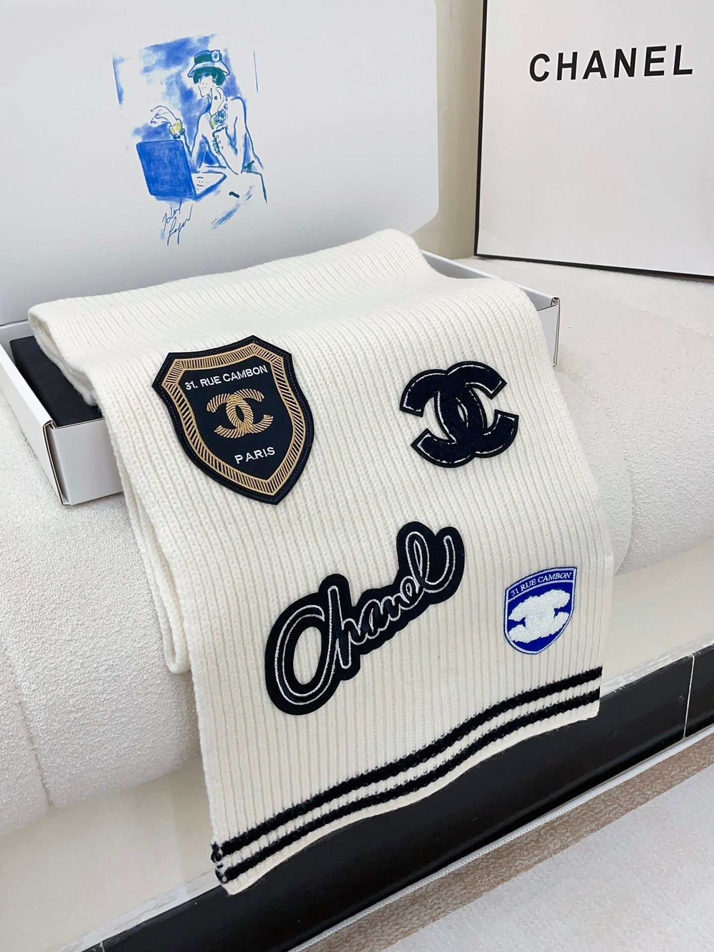 SCARF 180 CM IN WHITE PURE CASHMERE WITH STICKER 389997