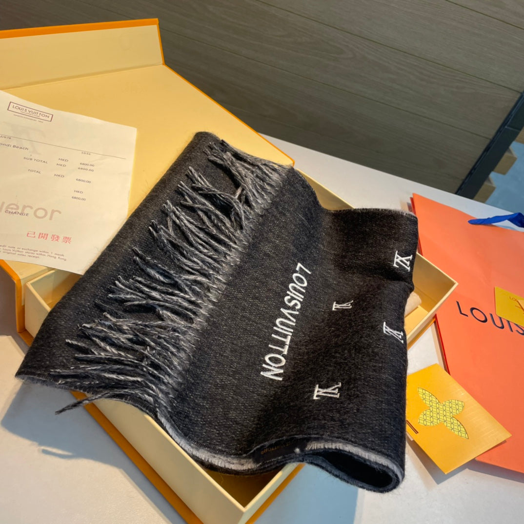 SCARF 190 CM IN BLACK CASHMERE WITH WHITE LOGO 396326