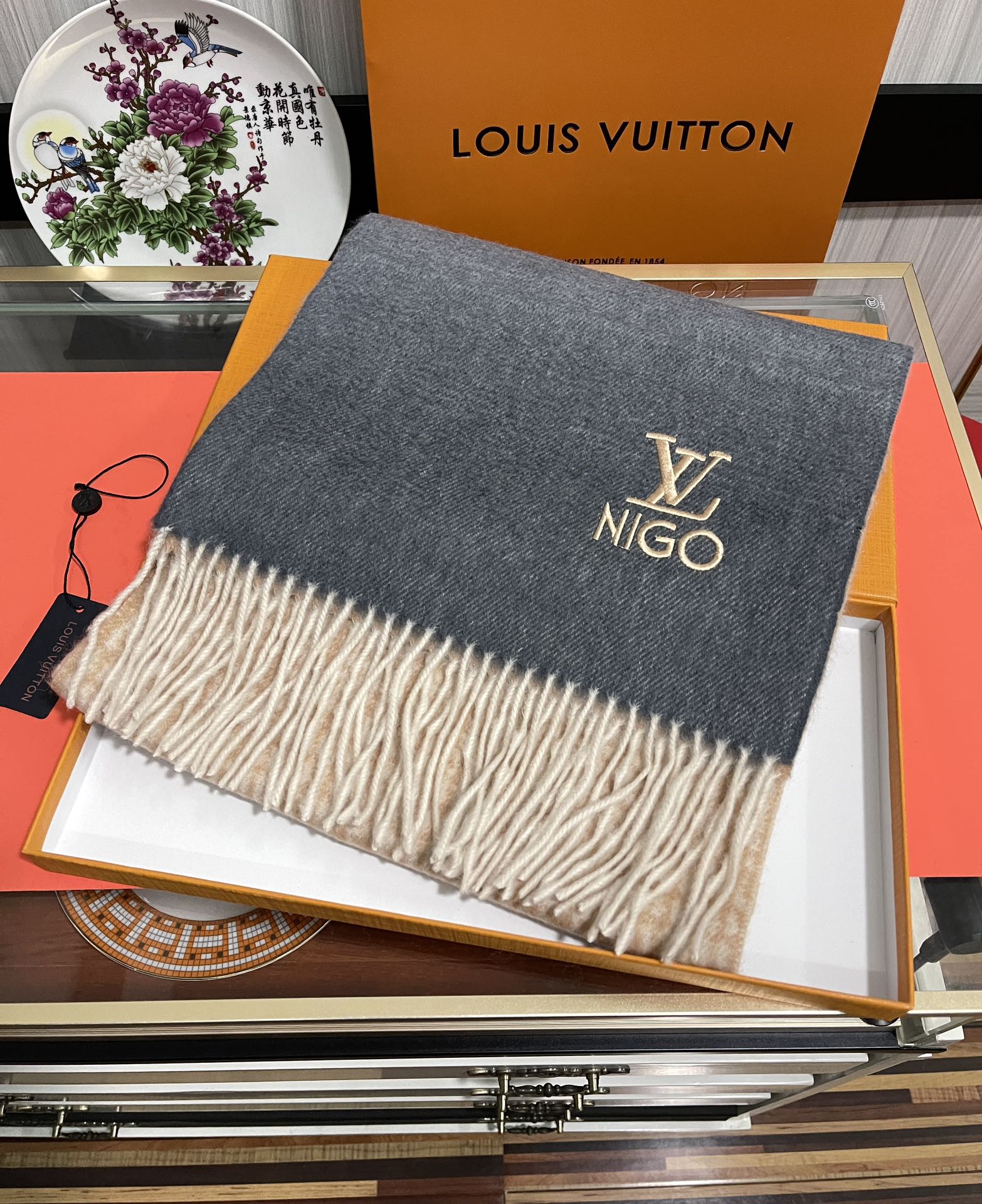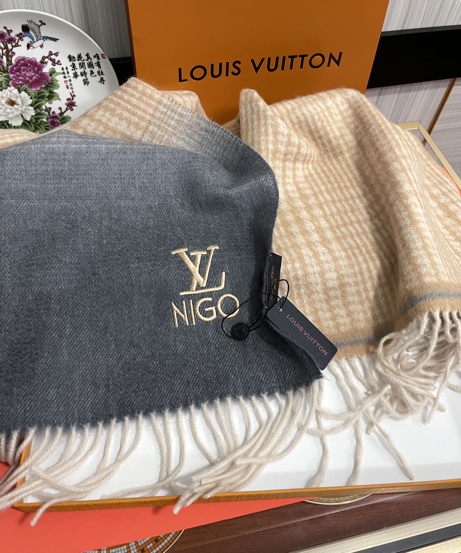 SCARF 200 CM IN BROWN MIX GREY CASHMERE 400012