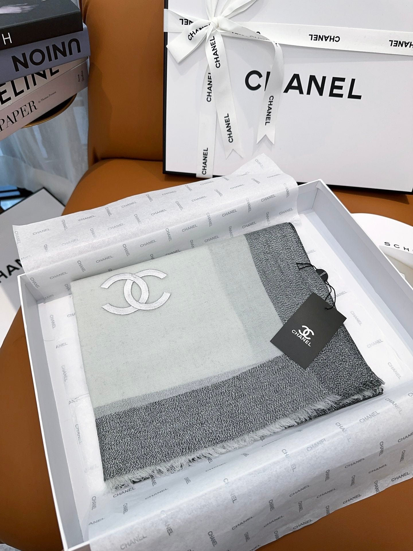 SCARF 200 CM IN MOUSE GRAY MIX WHITE CASHMERE 402261