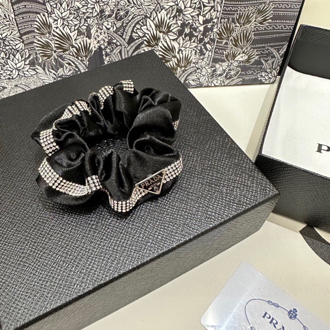 SCRUNCHIE IN BLACK VELVET WITH CRYSTAL CHAIN 369301