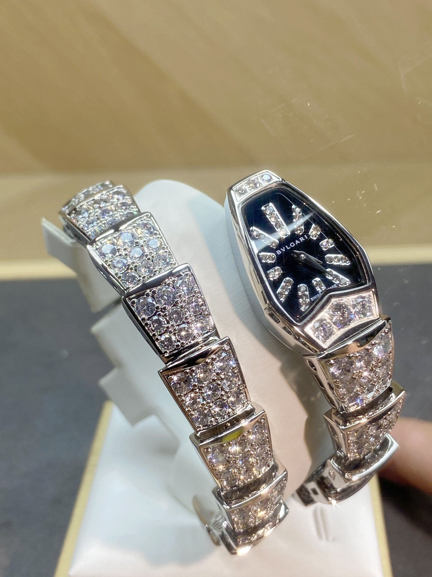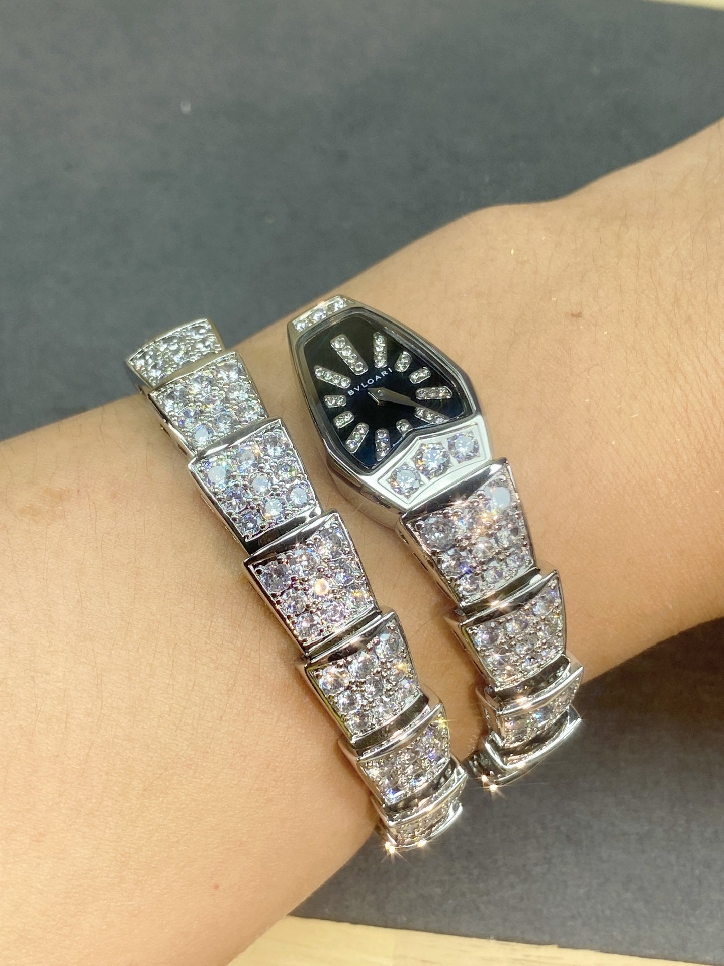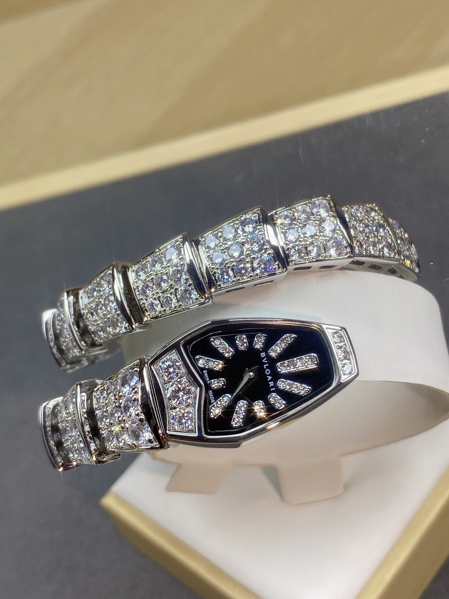 SERPENTI JEWELRY ALL WHITE GOLD WITH DIAMOND BLACK DIAL