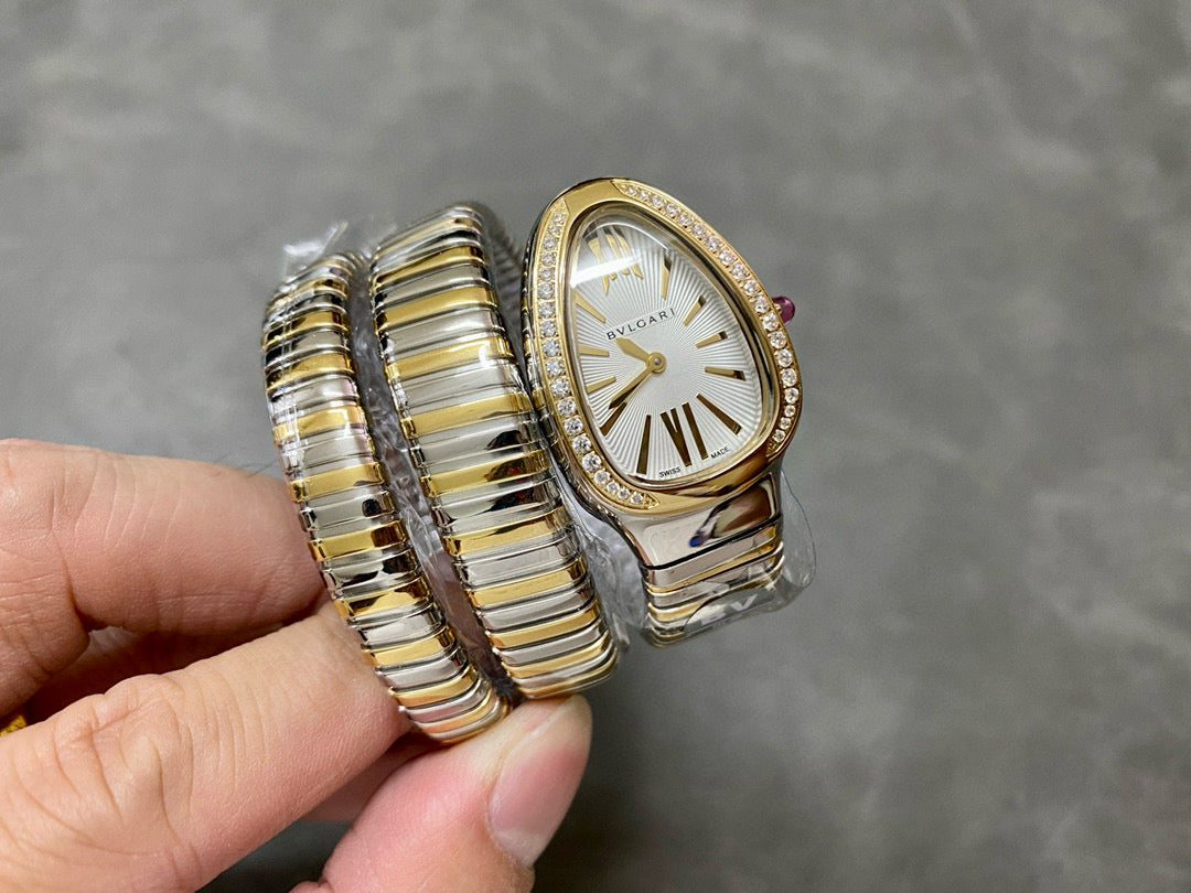 SERPENTI TUBOGAS QUARTZ GOLD STEEL WHITE DIAL
