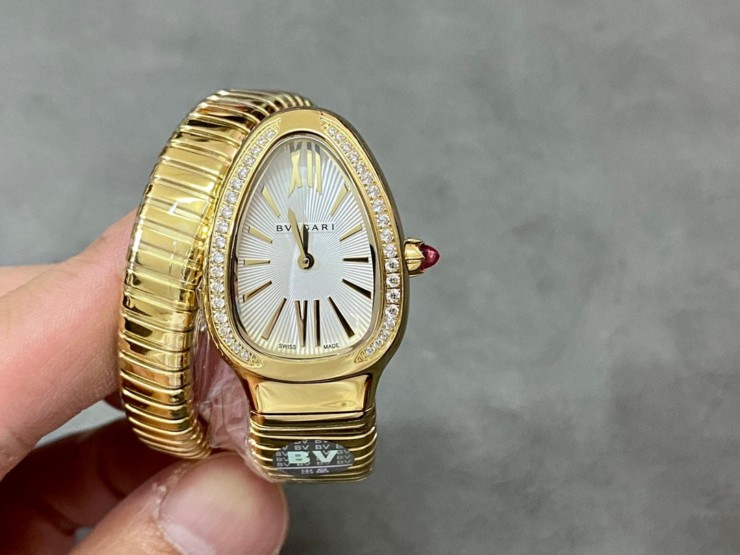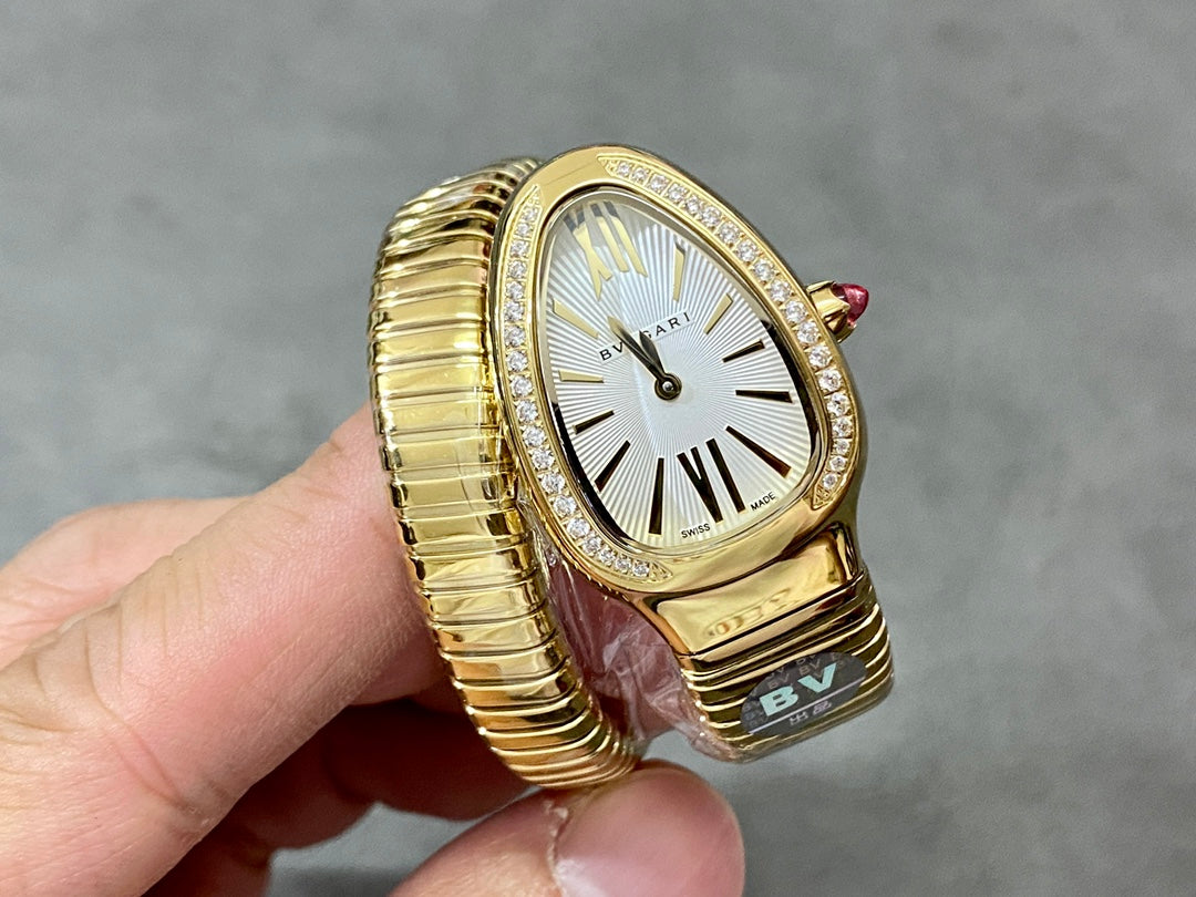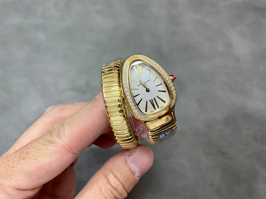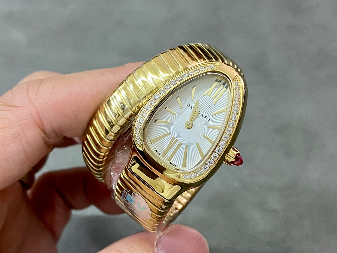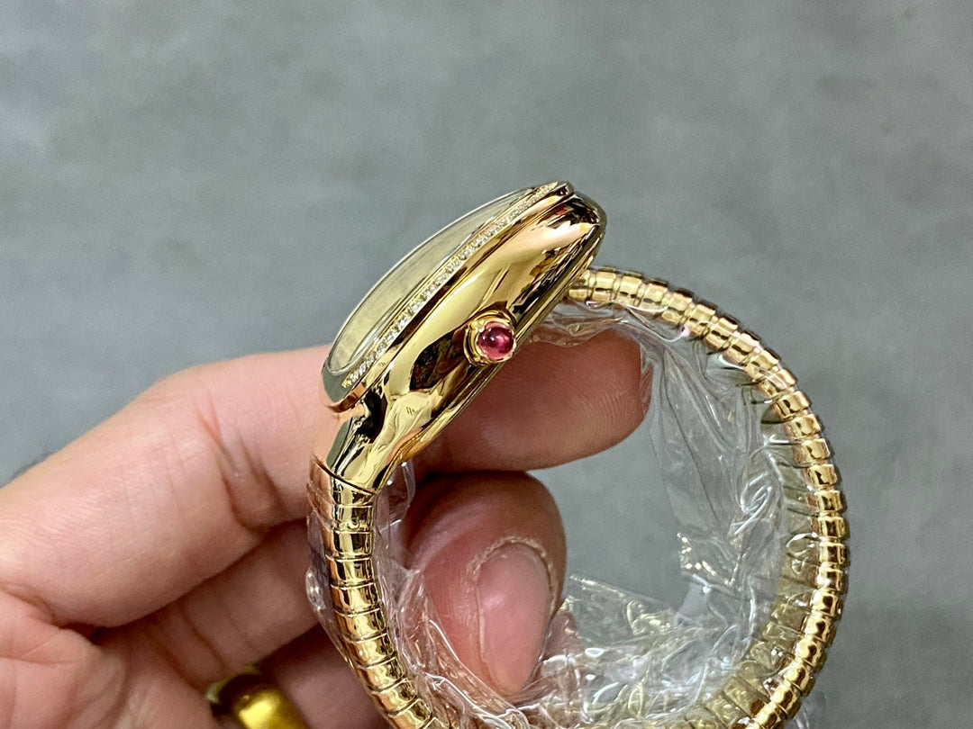 SERPENTI TUBOGAS QUARTZ YELLOW GOLD ATTACHED DIAMOND BEZEL SILVER OPALINE DIAL