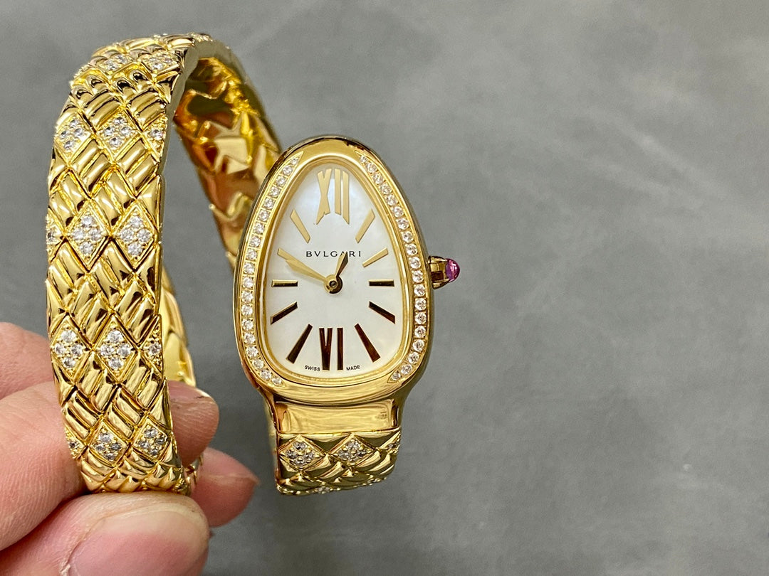 SERPENTI TUBOGAS QUARTZ YELLOW GOLD WHITE DIAL