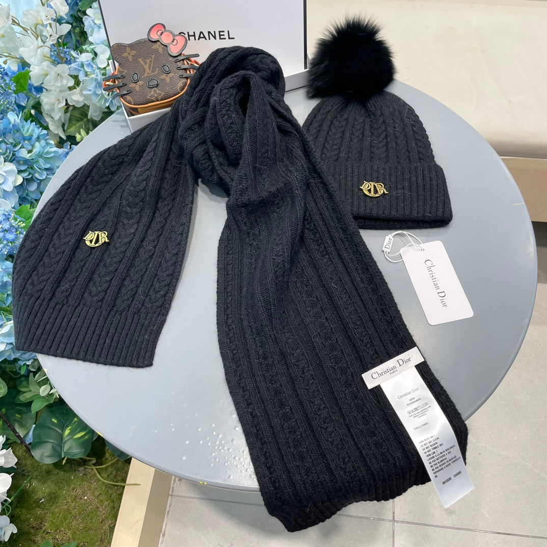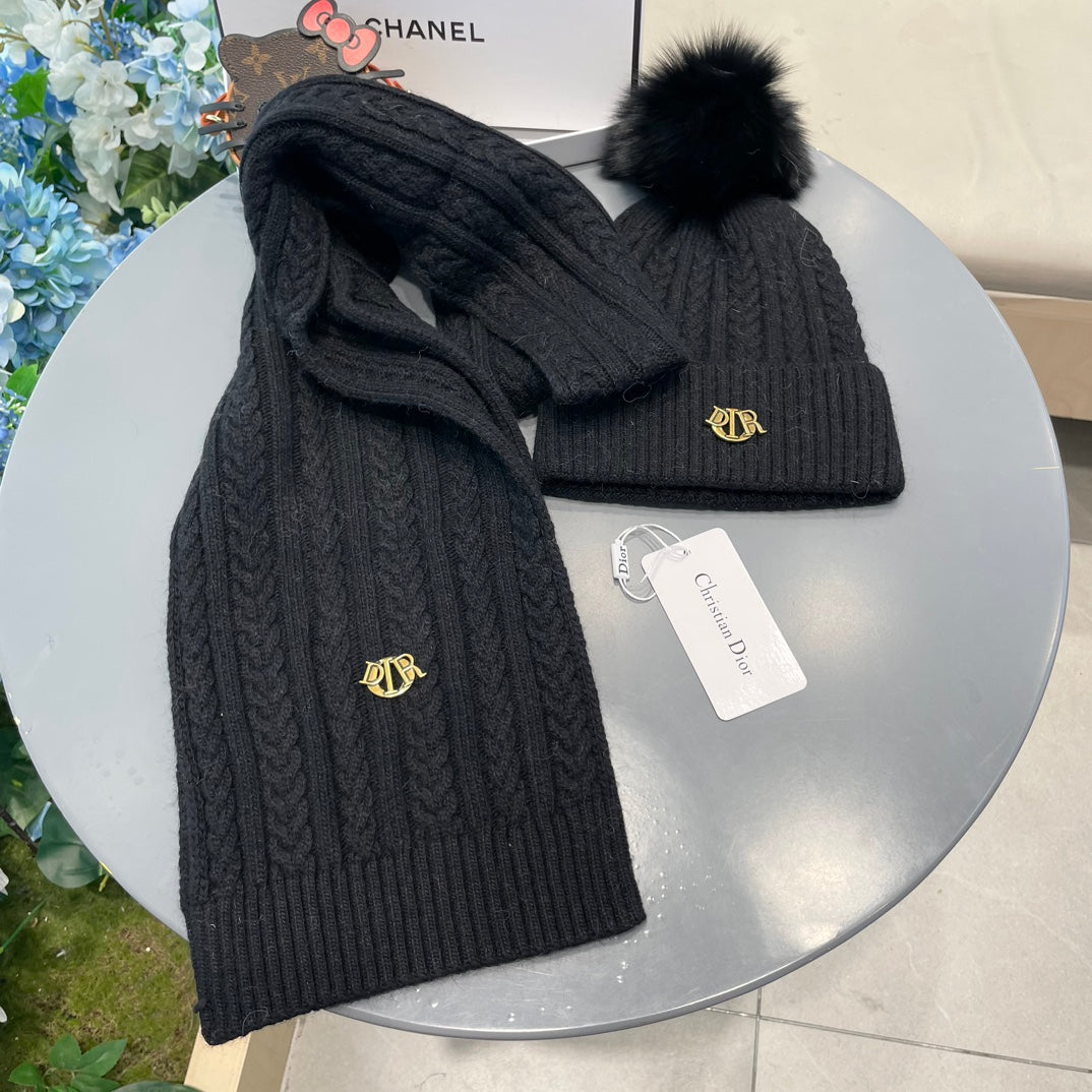 SET CLASSIC SCARF AND HAT IN BLACK CASHMERE AND RABBIT WOOL 433232