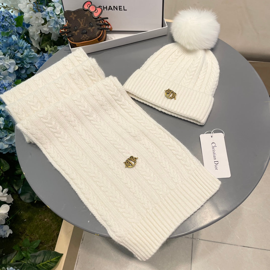 SET CLASSIC SCARF AND HAT IN RICE WHITE CASHMERE AND RABBIT WOOL 433235